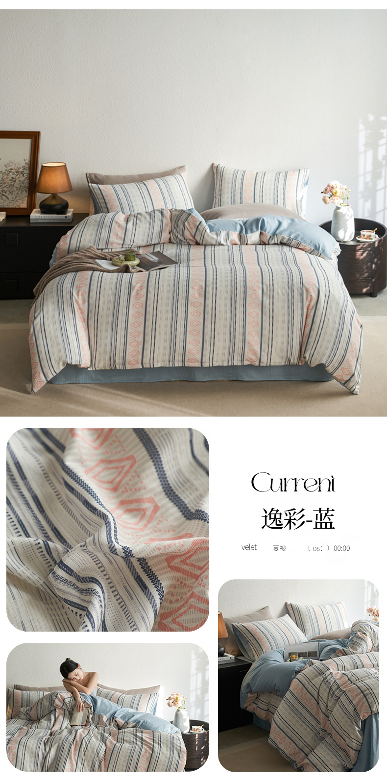 (总)时年2022新款全棉40支13372ins条纹款四件套,复古钴蓝,复古奶绿