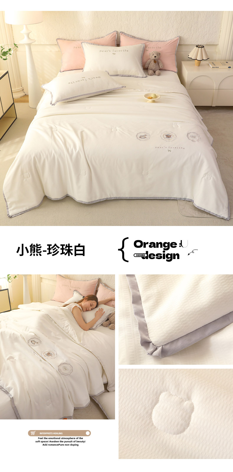 当前位置: 91家纺网 > 商品网购 > 床品套件 > 四件套 > 夏被四件套 > 丝印良品 2025新款针织棉刺绣加花边小熊系列夏被四件套 小熊-珍珠白