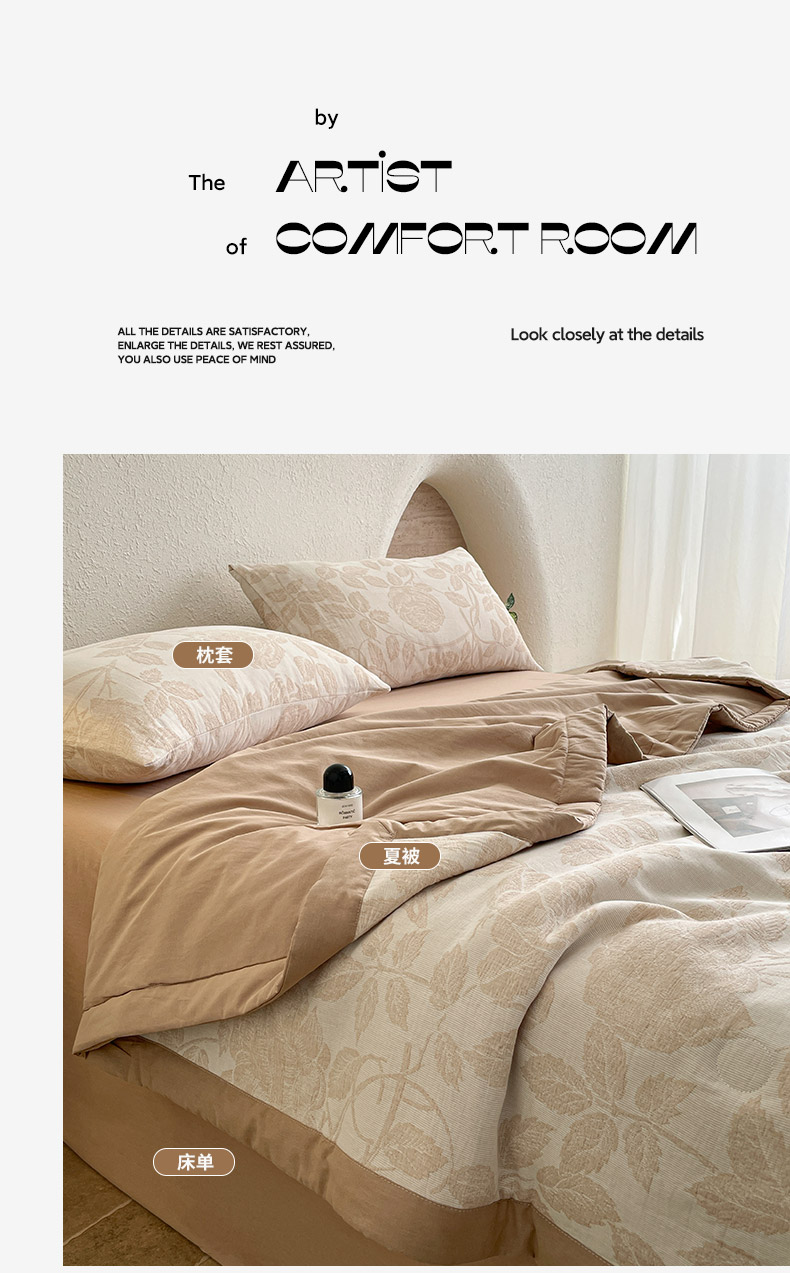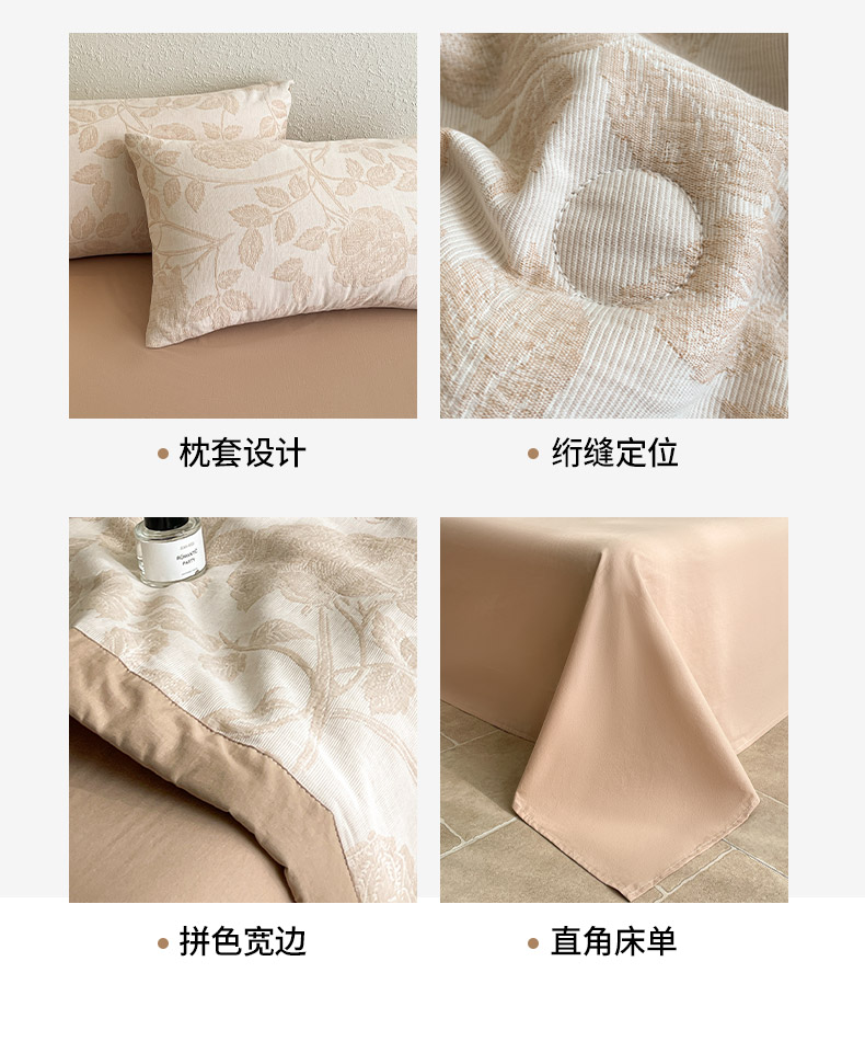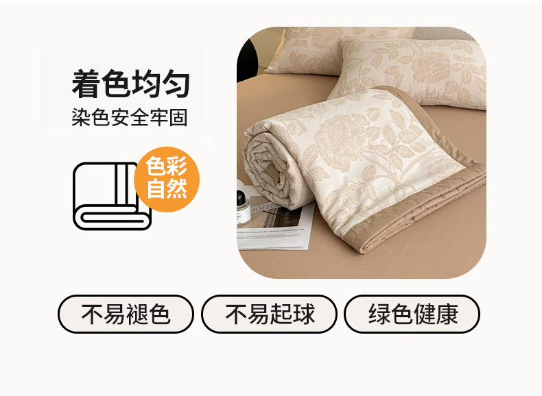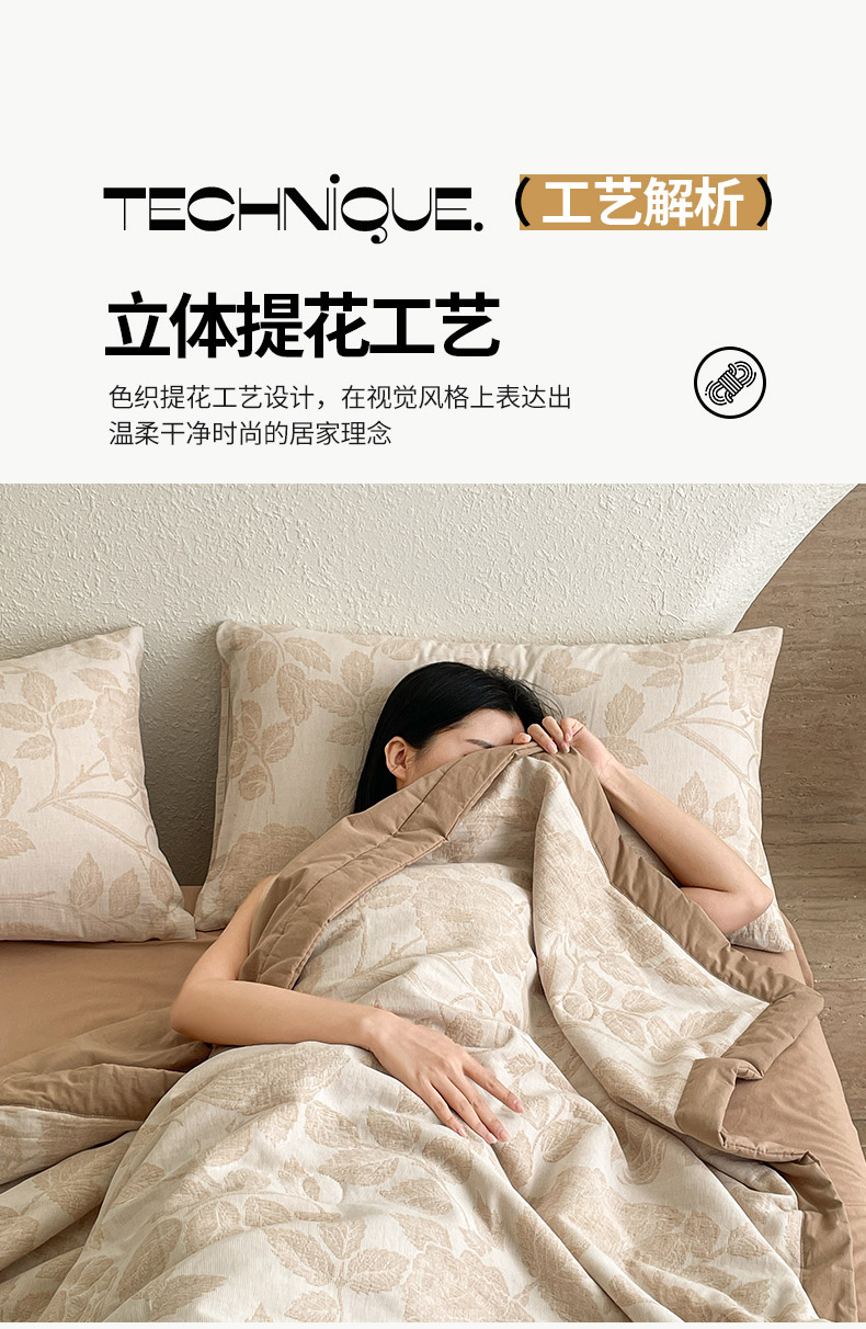 商品名称:吾诺 2025 全棉色织提花三层纱夏被四件套全棉夏被大豆夏被夏凉被空调被子被芯 藤叶-咖