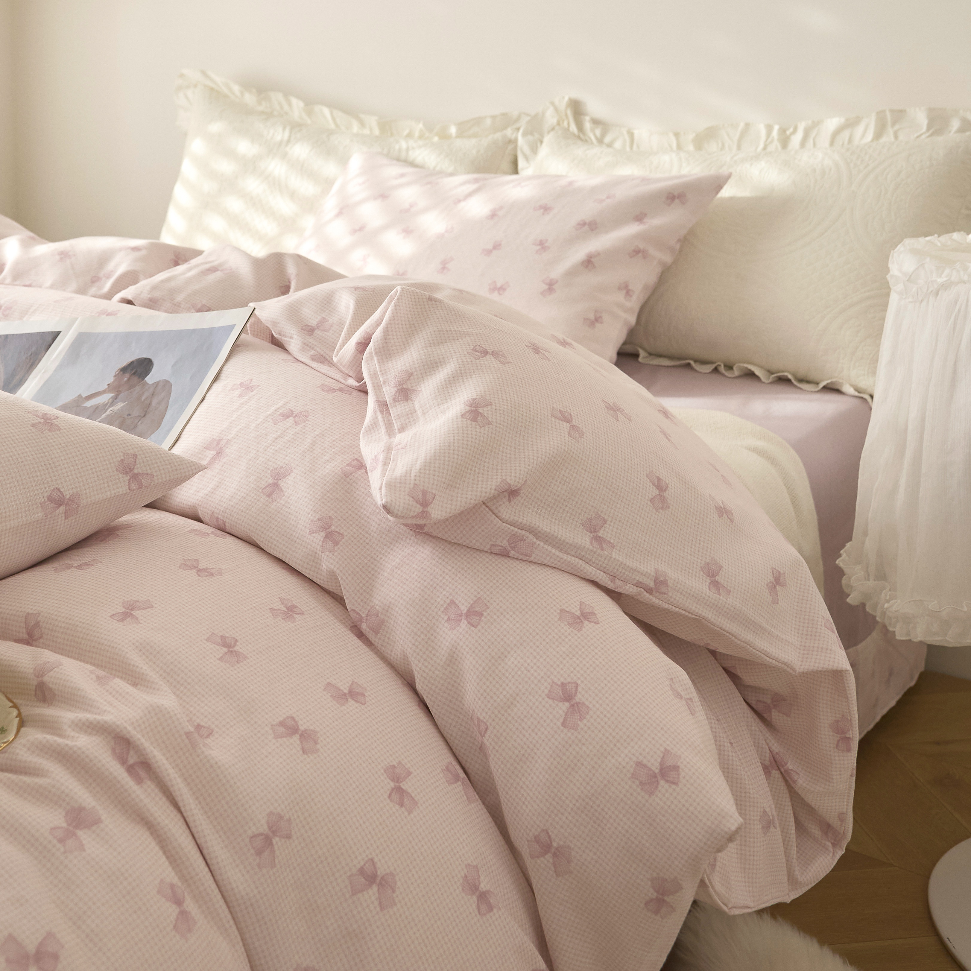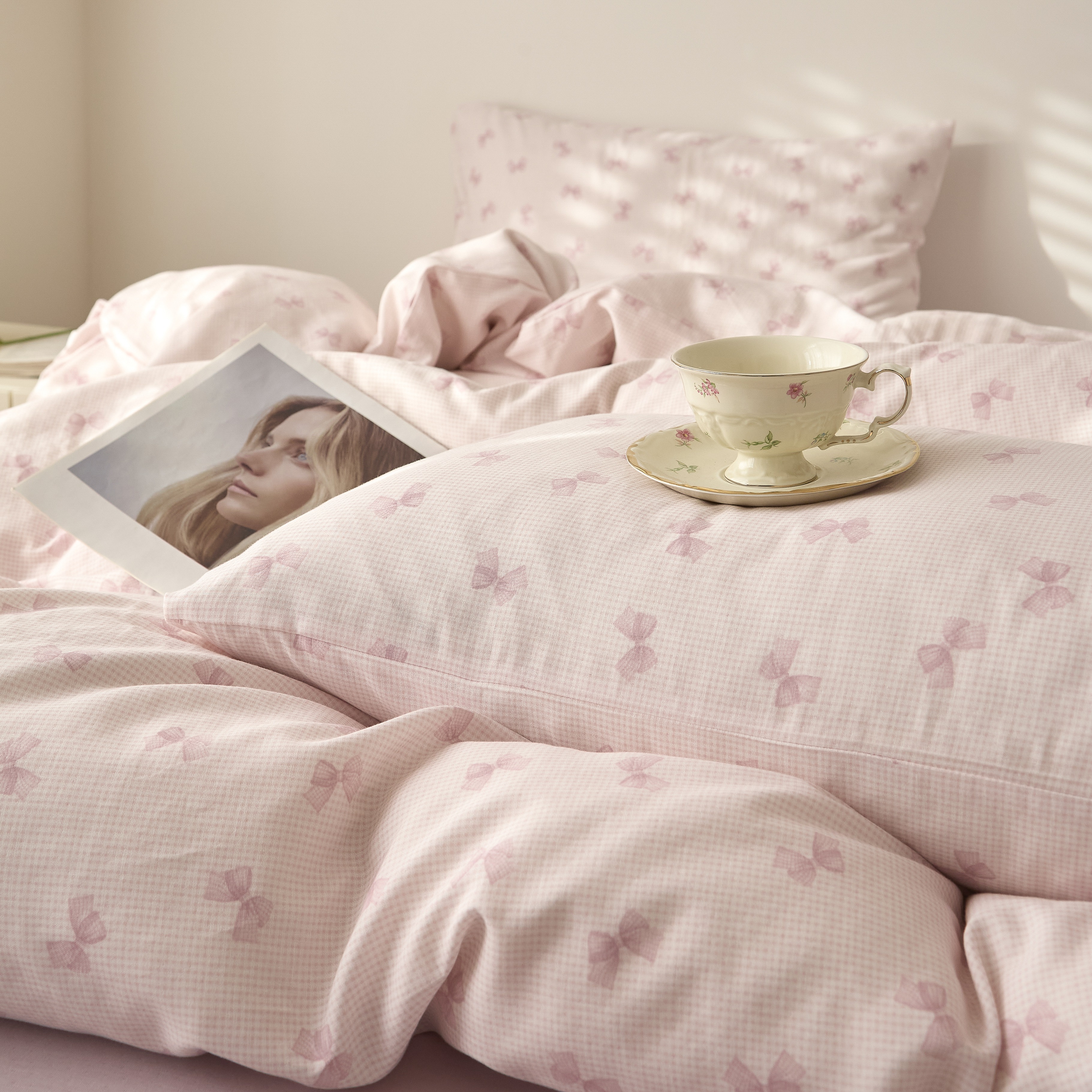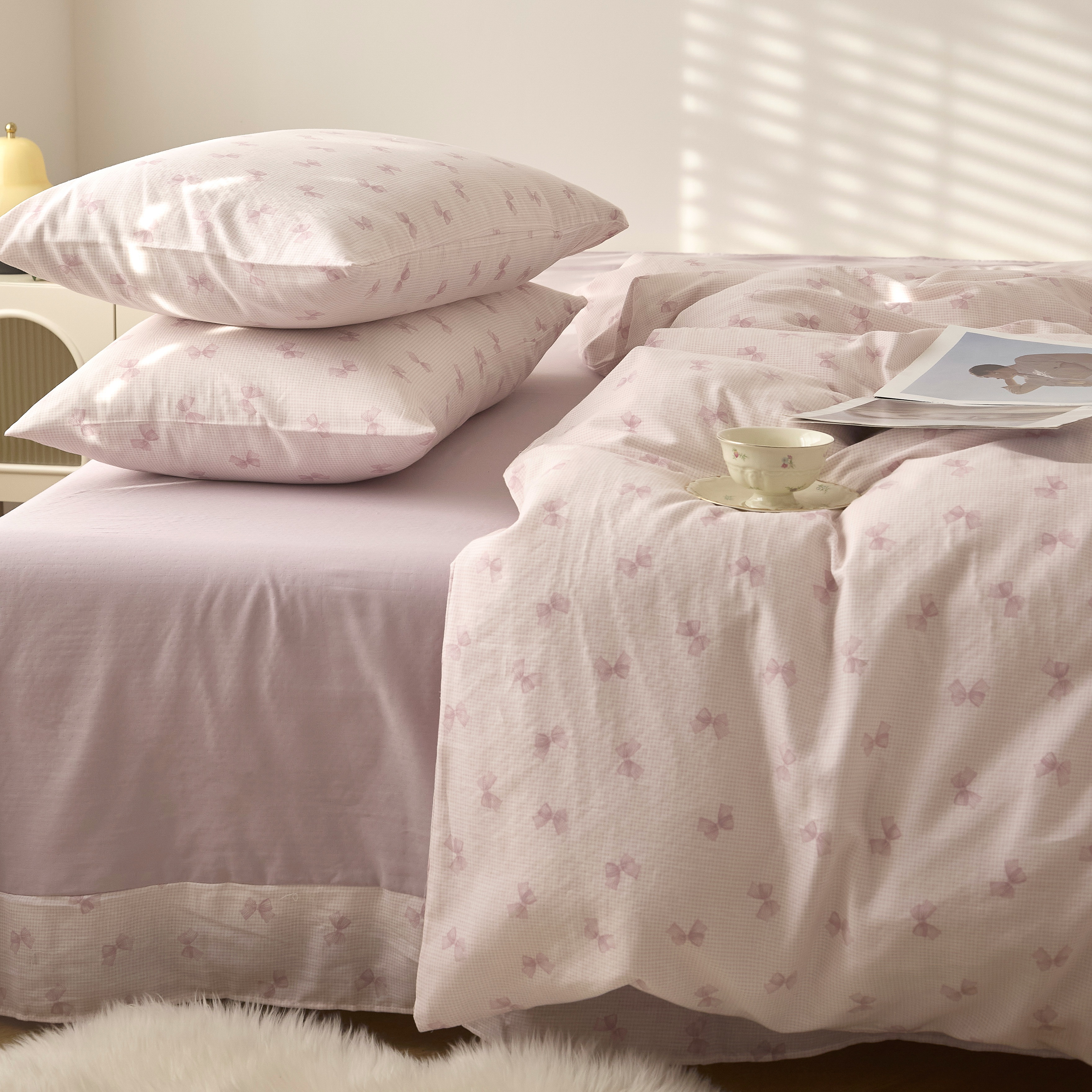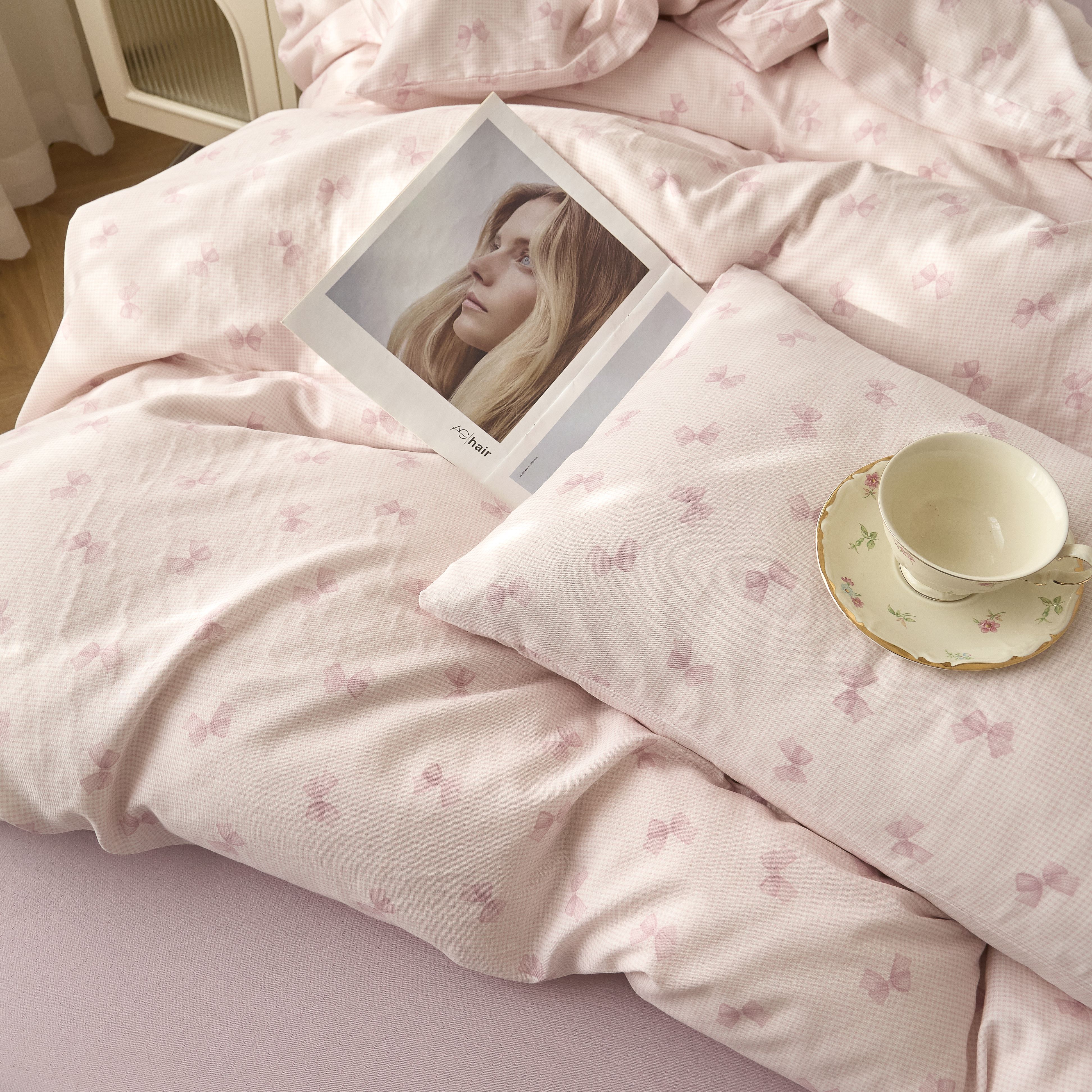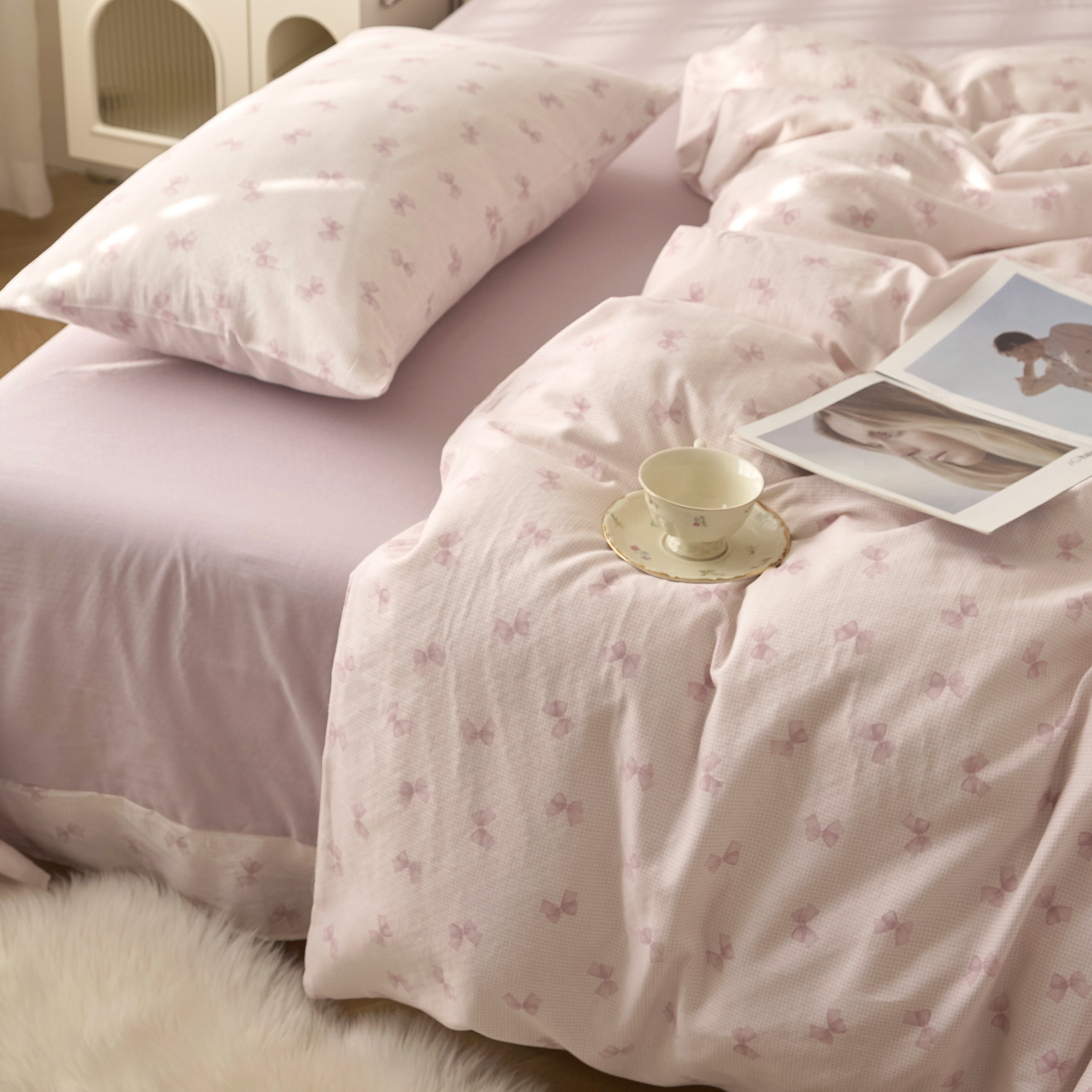 商品名称:嘉汀兰家居 2025新款圆角花边款全棉纯棉A类母婴级有氧全棉双层纱亲肤全棉小清新印花四件套 恋曲粉