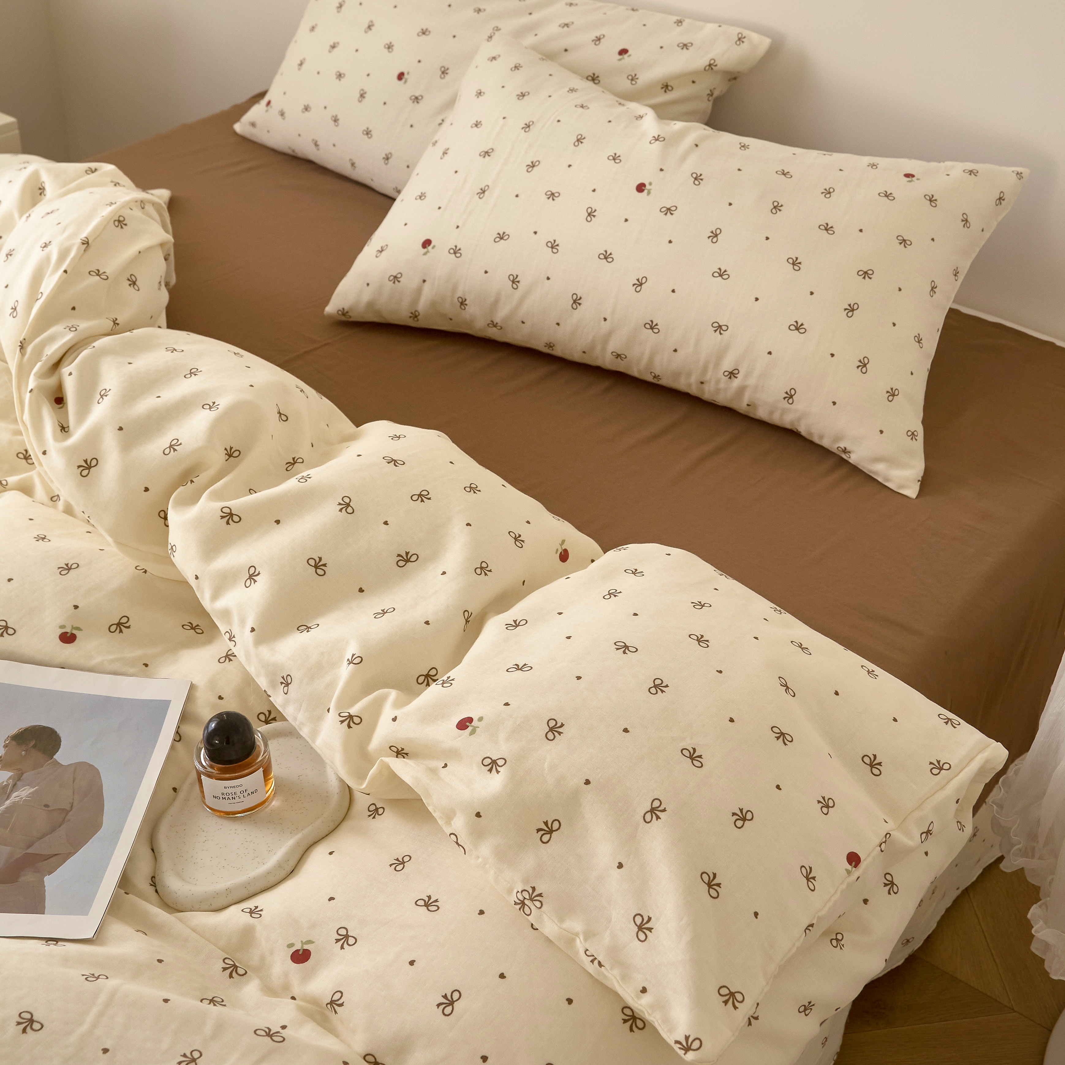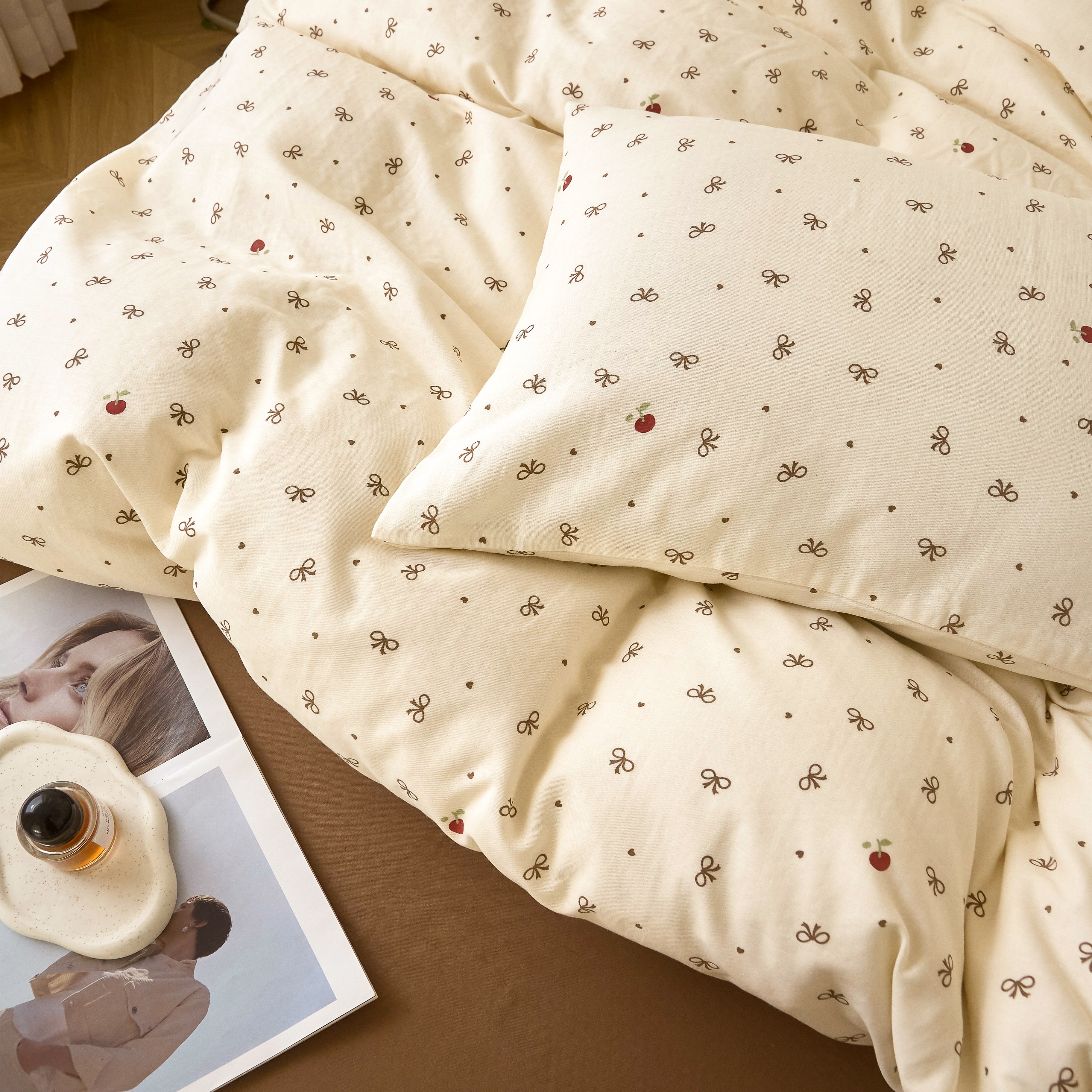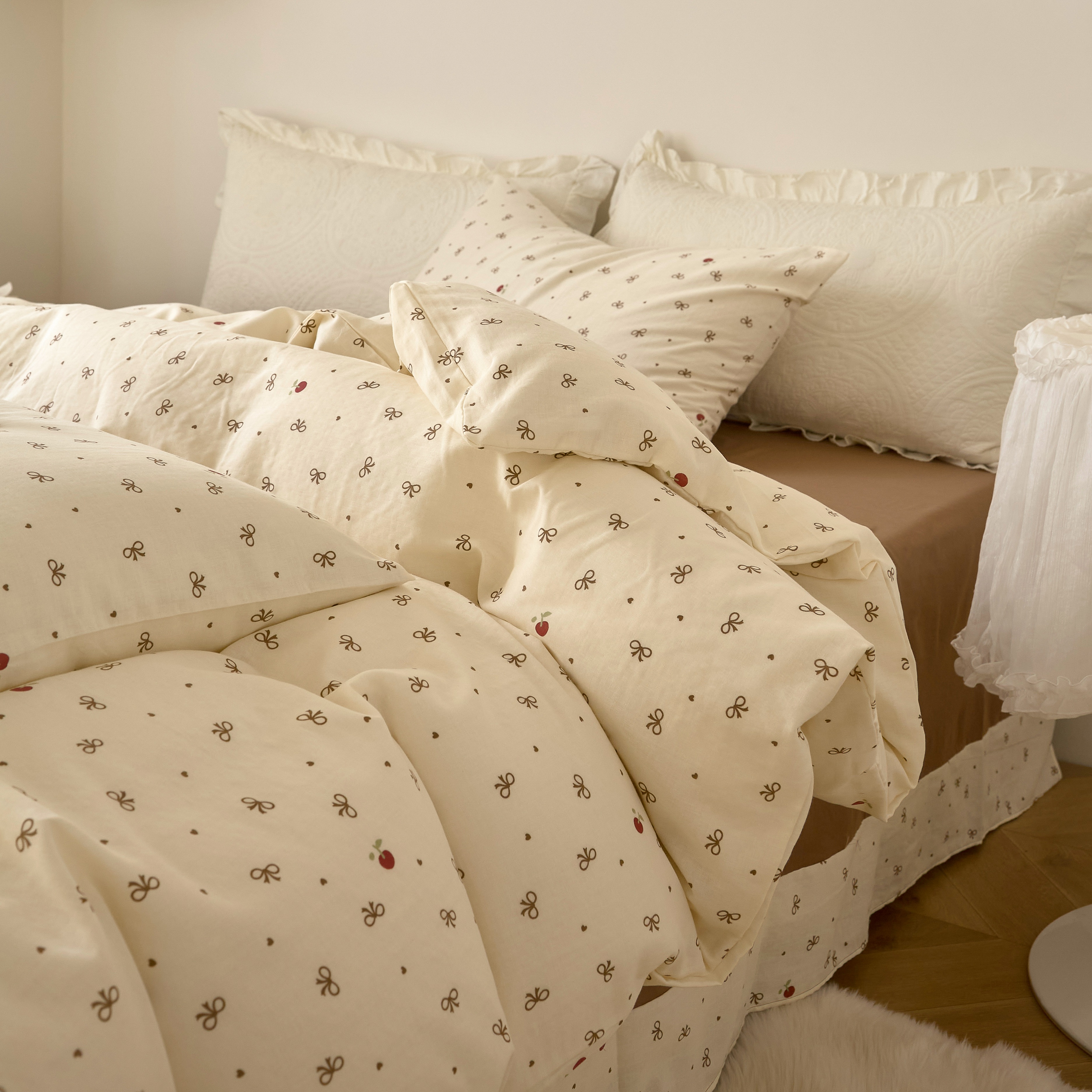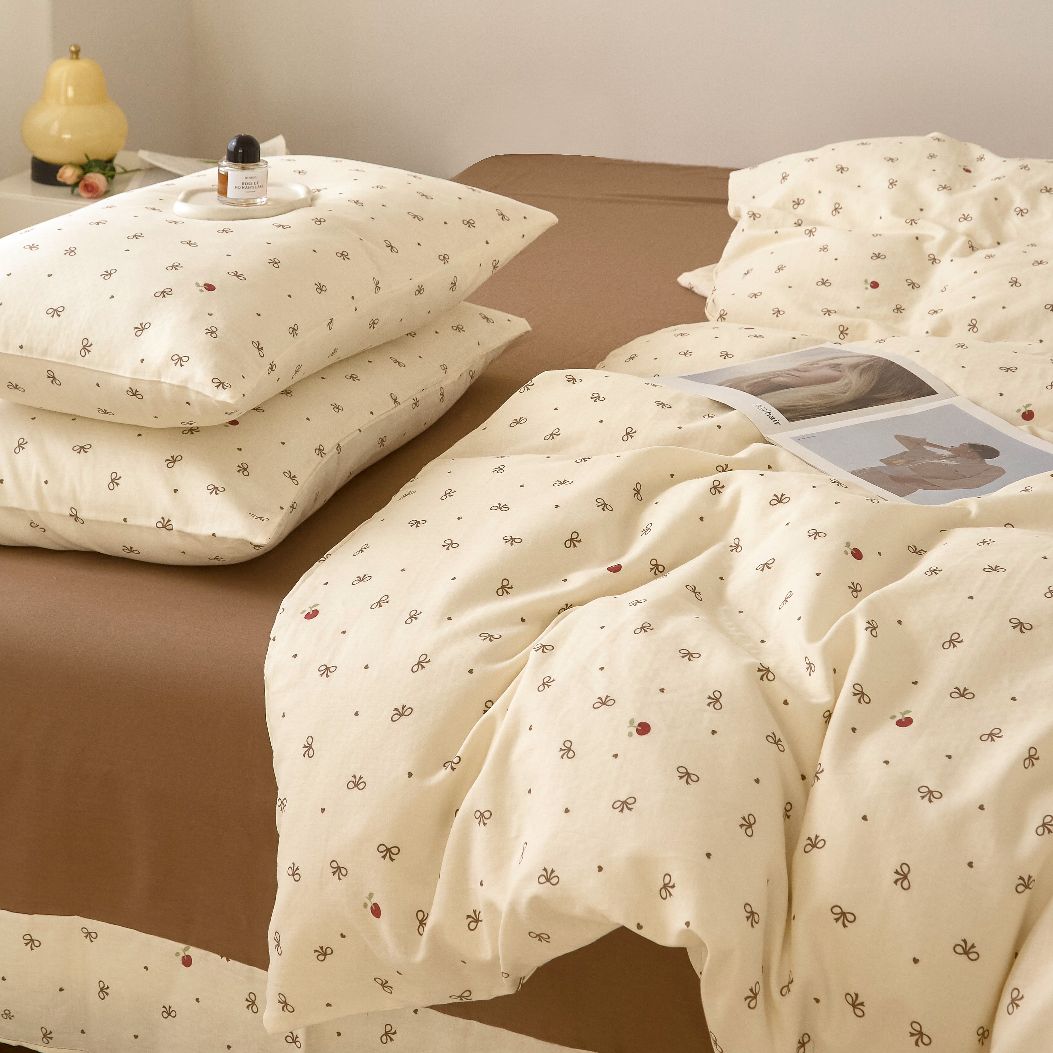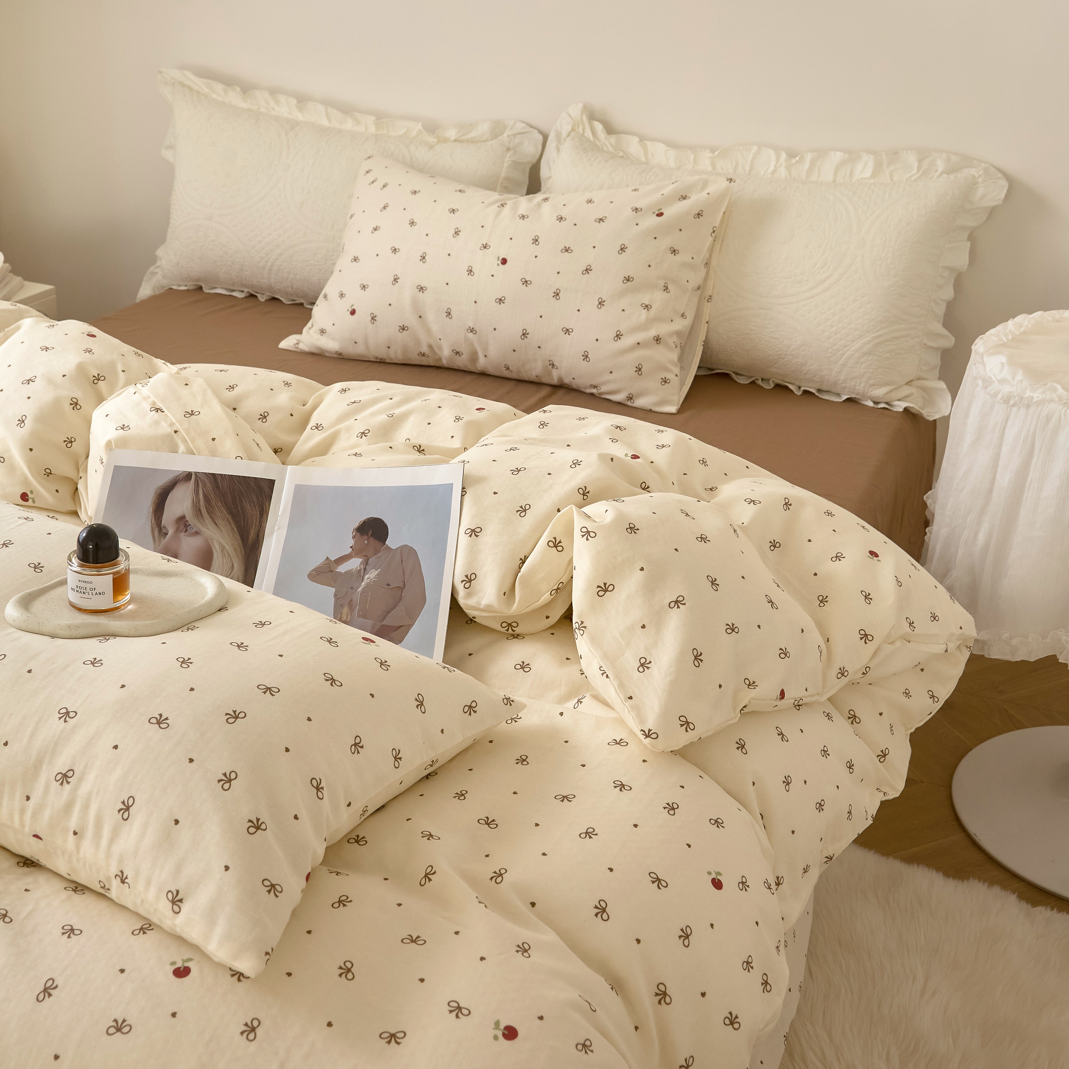 商品名称:嘉汀兰家居 2025新款圆角花边款全棉纯棉A类母婴级有氧全棉双层纱亲肤全棉小清新印花四件套 甜蜜