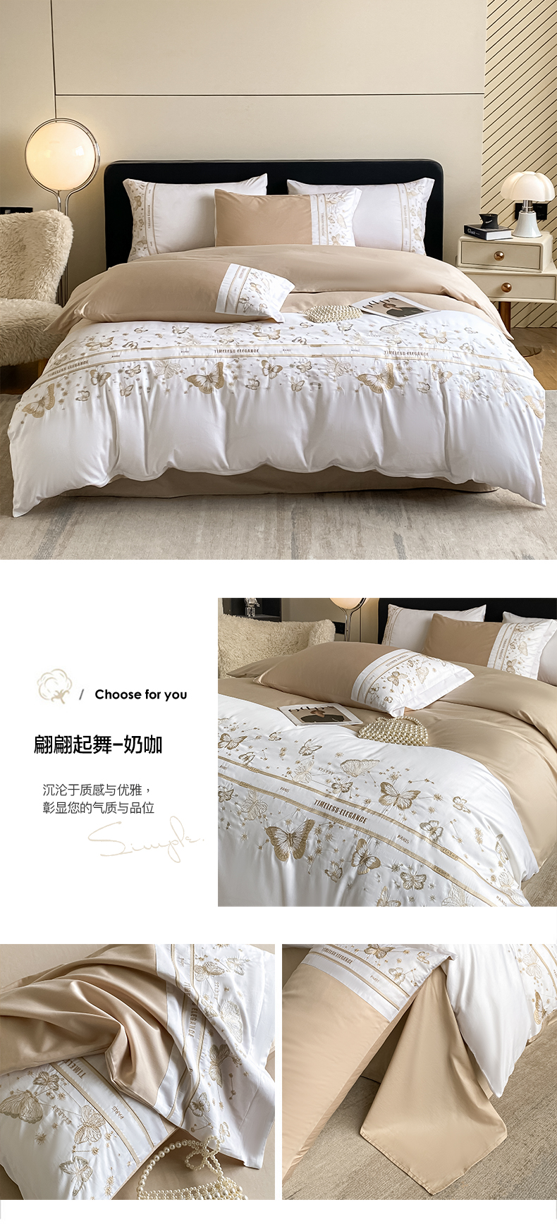 当前位置: 91家纺网 > 商品网购 > 床品套件 > 四件套 > 全棉普通四件套 > 卡巴伦2025新款全棉刺绣拼接款四件套翩翩起舞 翩翩起舞-奶咖