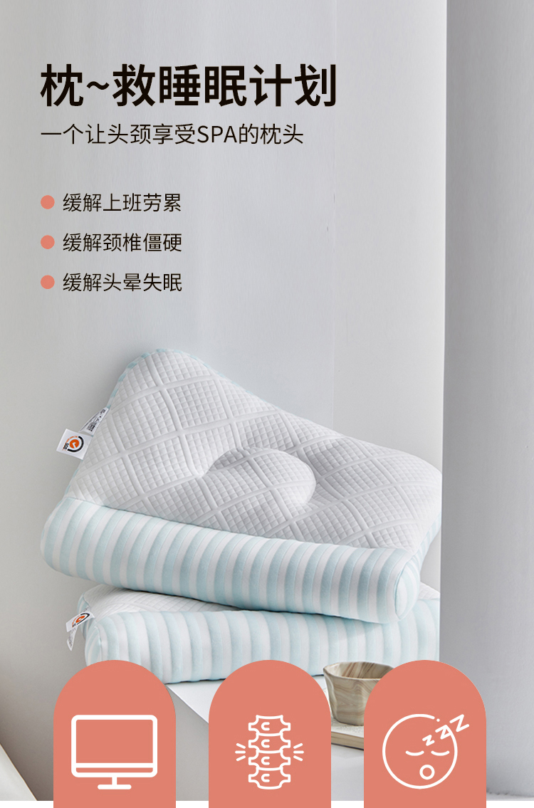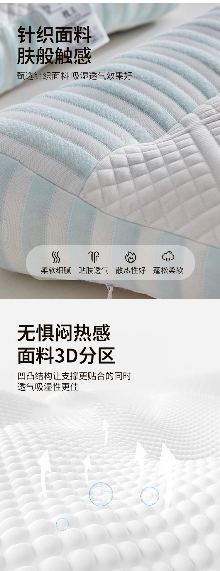 (总)梵希良品家纺 2025新款针织棉7A护颈枕头枕芯,反c深睡牵引分区枕-绿色,反c深睡牵引分区枕- 粉色