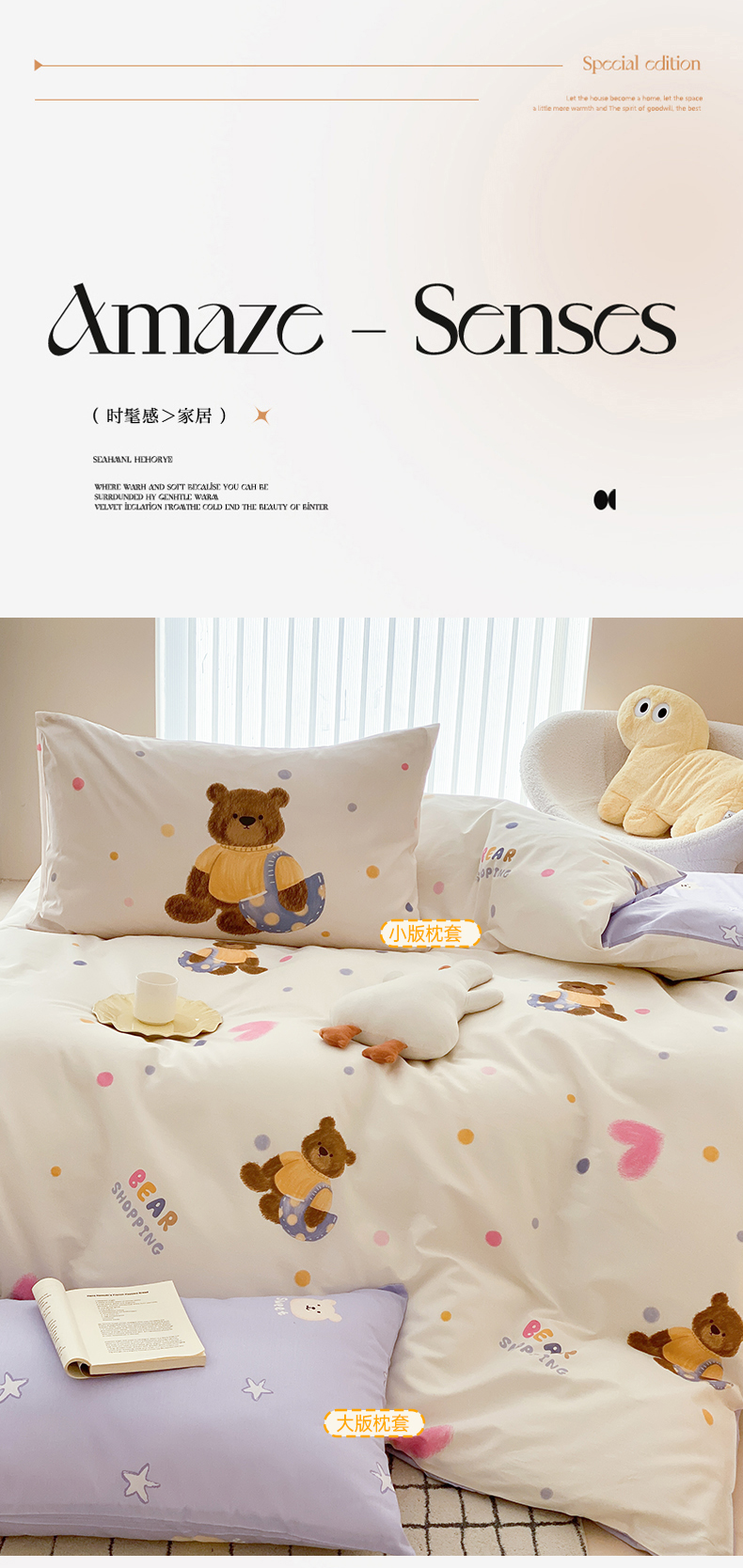 (总)嘉汀兰家居 2025新款全棉纯棉大版数码印花生态磨毛四件套,可爱多-米,小王子-灰