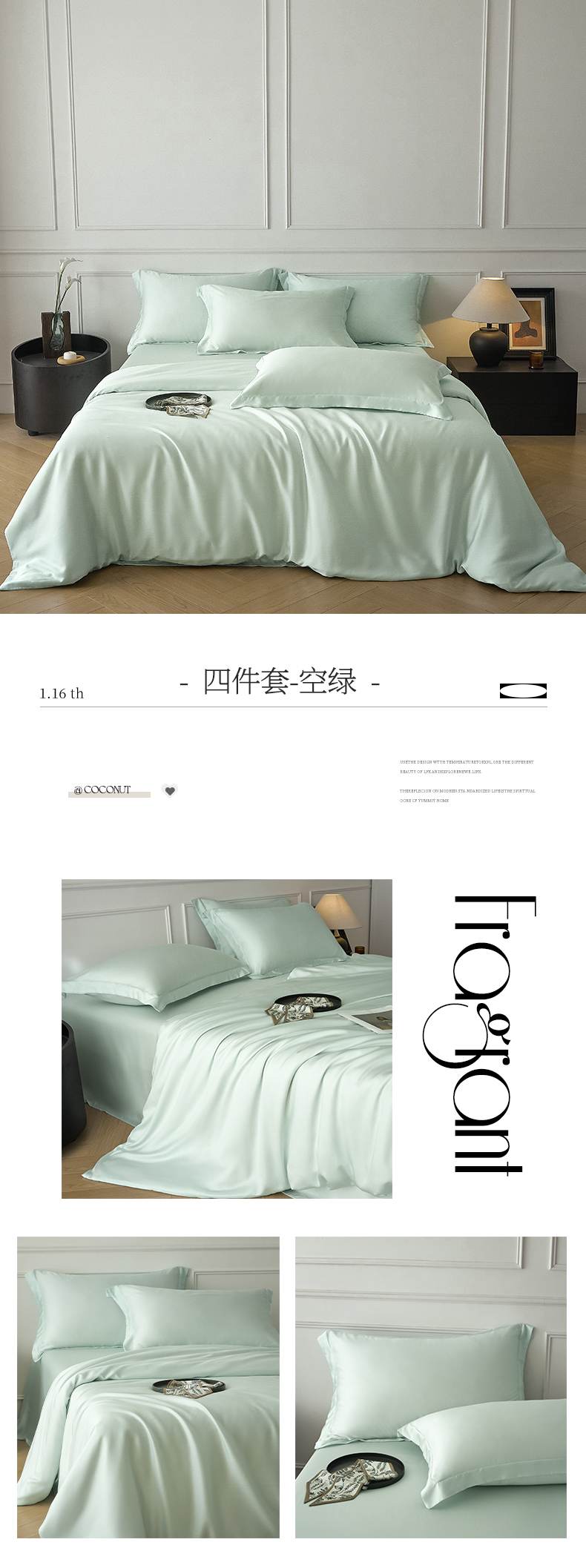 当前位置: 91家纺网 > 商品网购 > 床品套件 > 四件套 > 莱赛尔四件套 > 涵宸2025新款天丝-天丝棉-纯色四件套-场景1 空绿