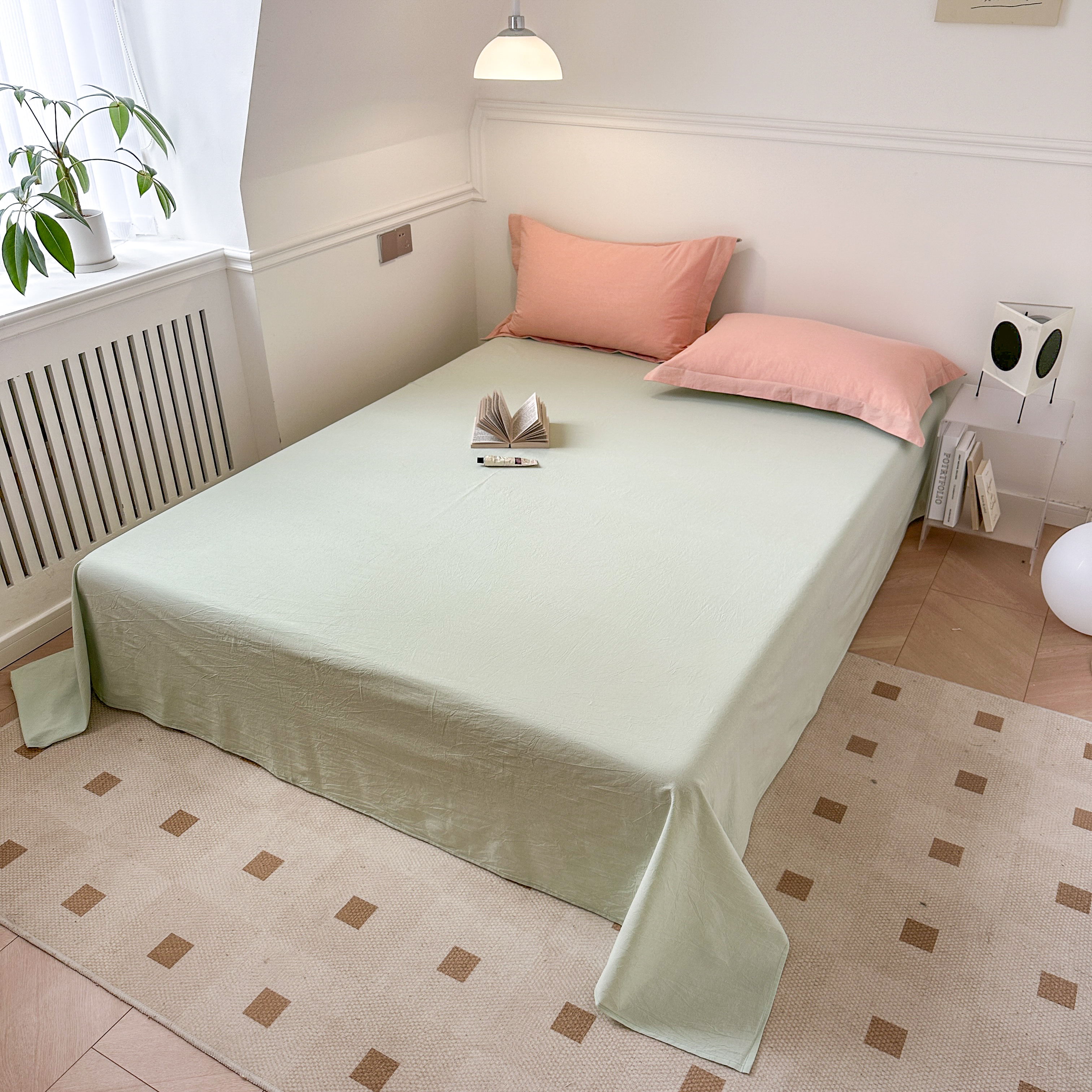 商品名称:嘉汀兰家居 2025新款A类母婴级有氧全棉色织水洗棉小清新印花床单单品单床单床单单件 薄荷绿