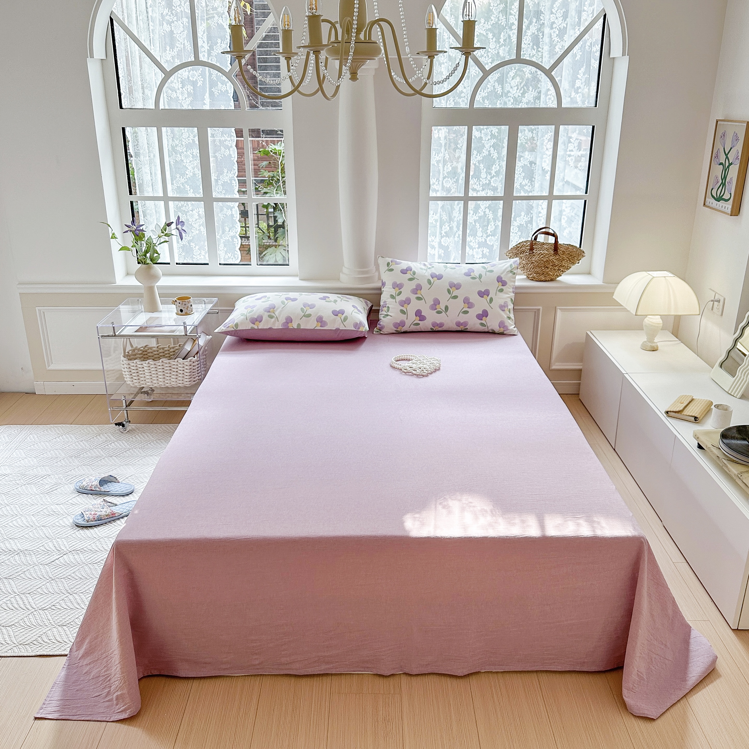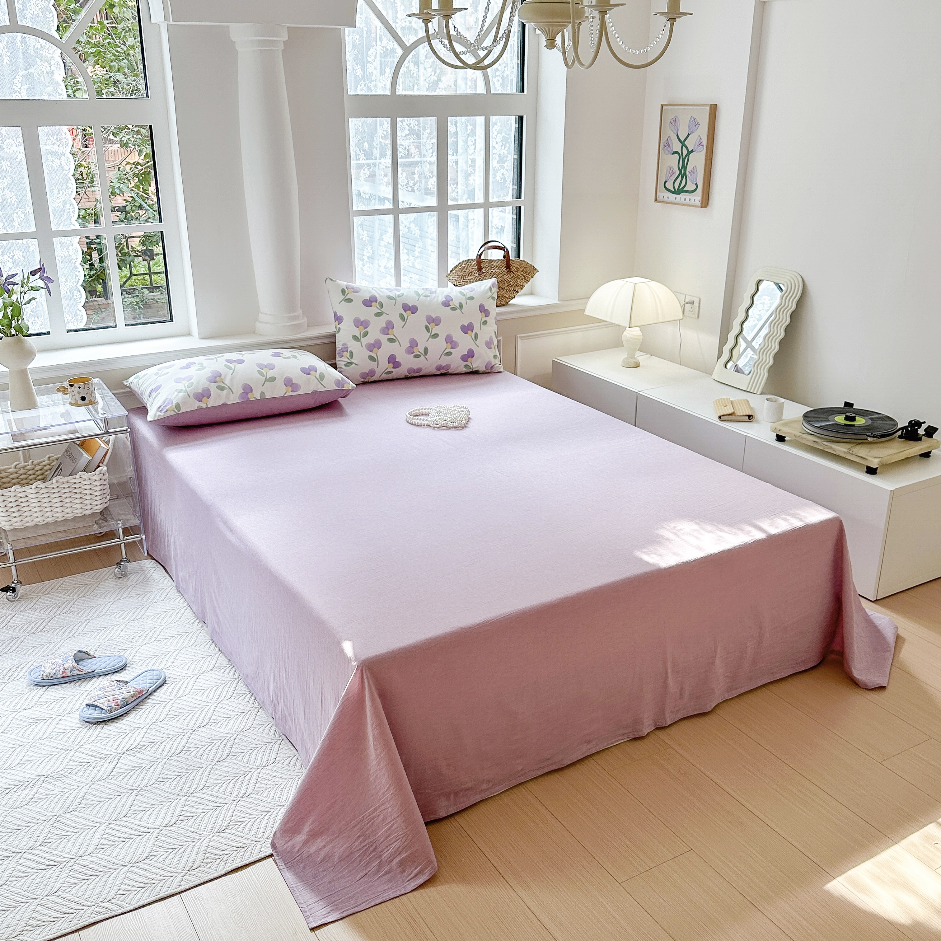 嘉汀兰家居 2025新款A类母婴级有氧全棉色织水洗棉小清新印花床单单品单床单床单单件 紫