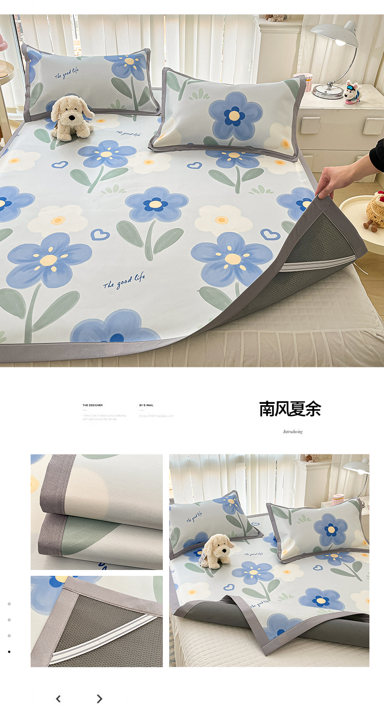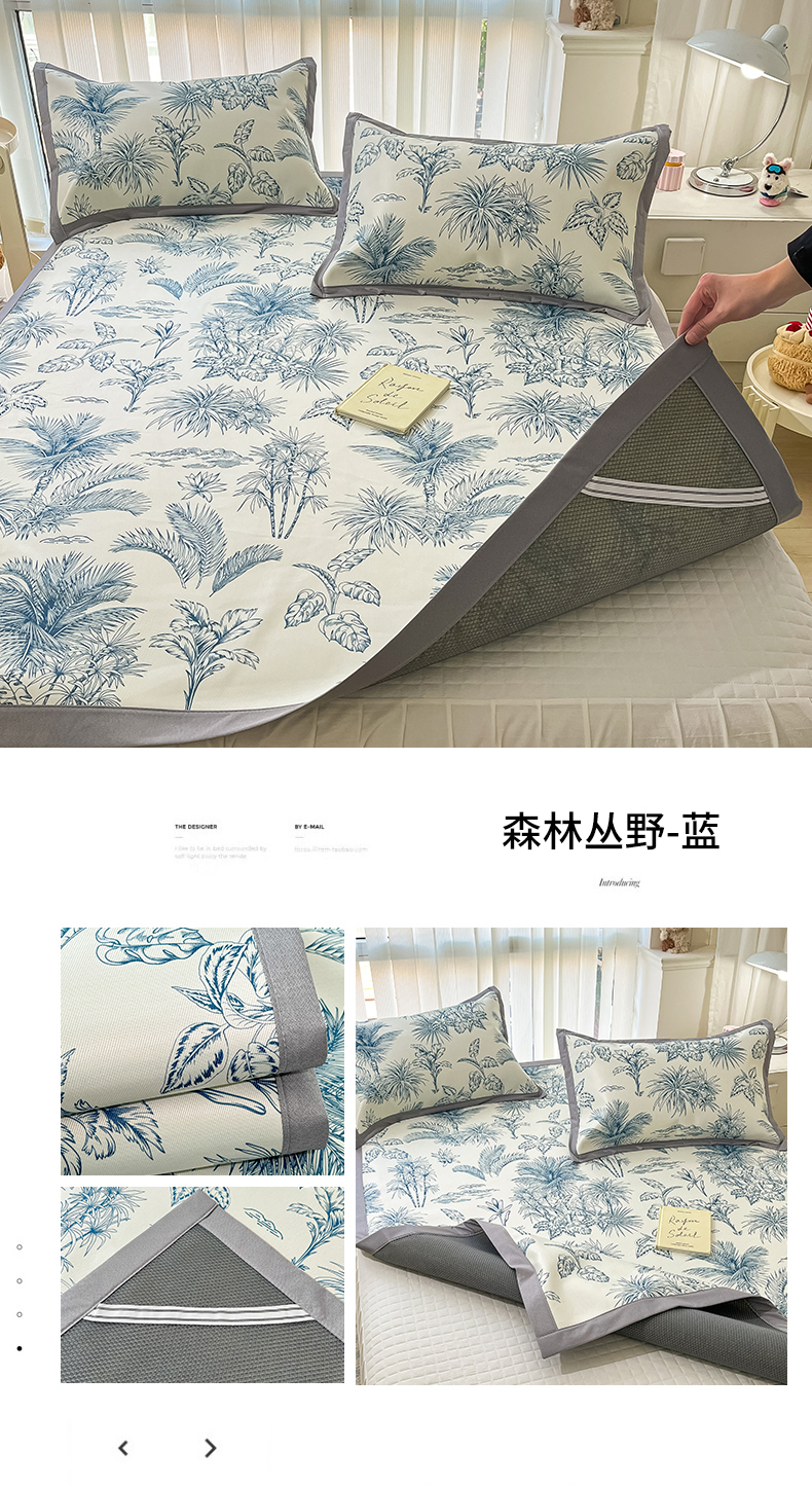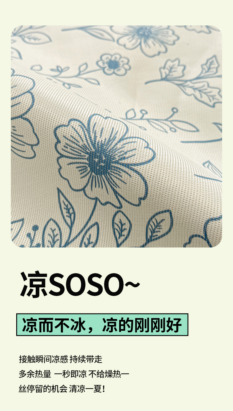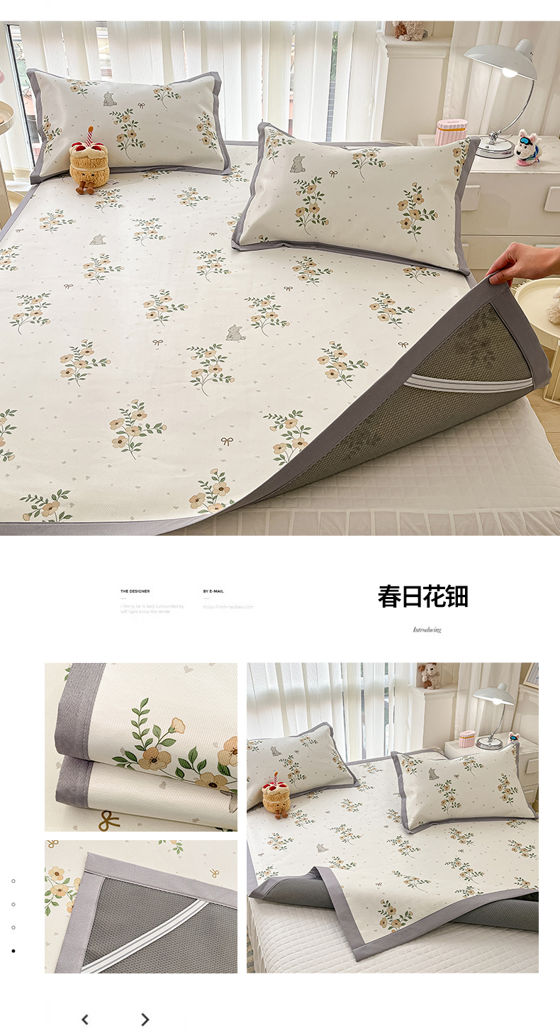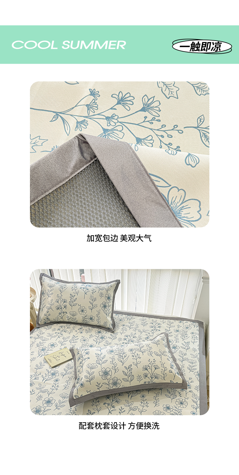 商品名称:川悦生活 2025新款600D立体宽边冰丝印花凉席 花簇田园