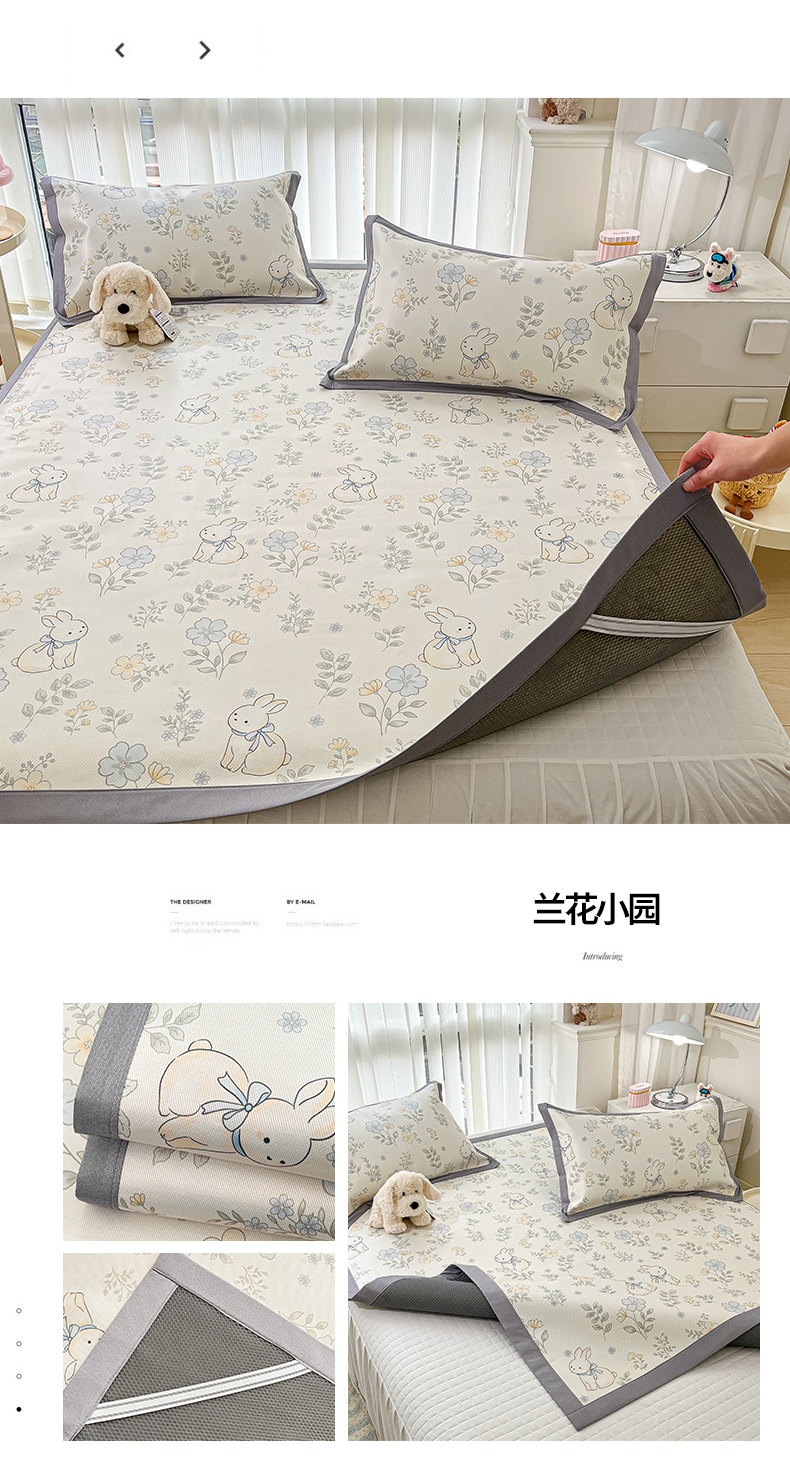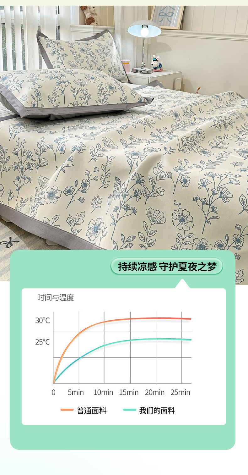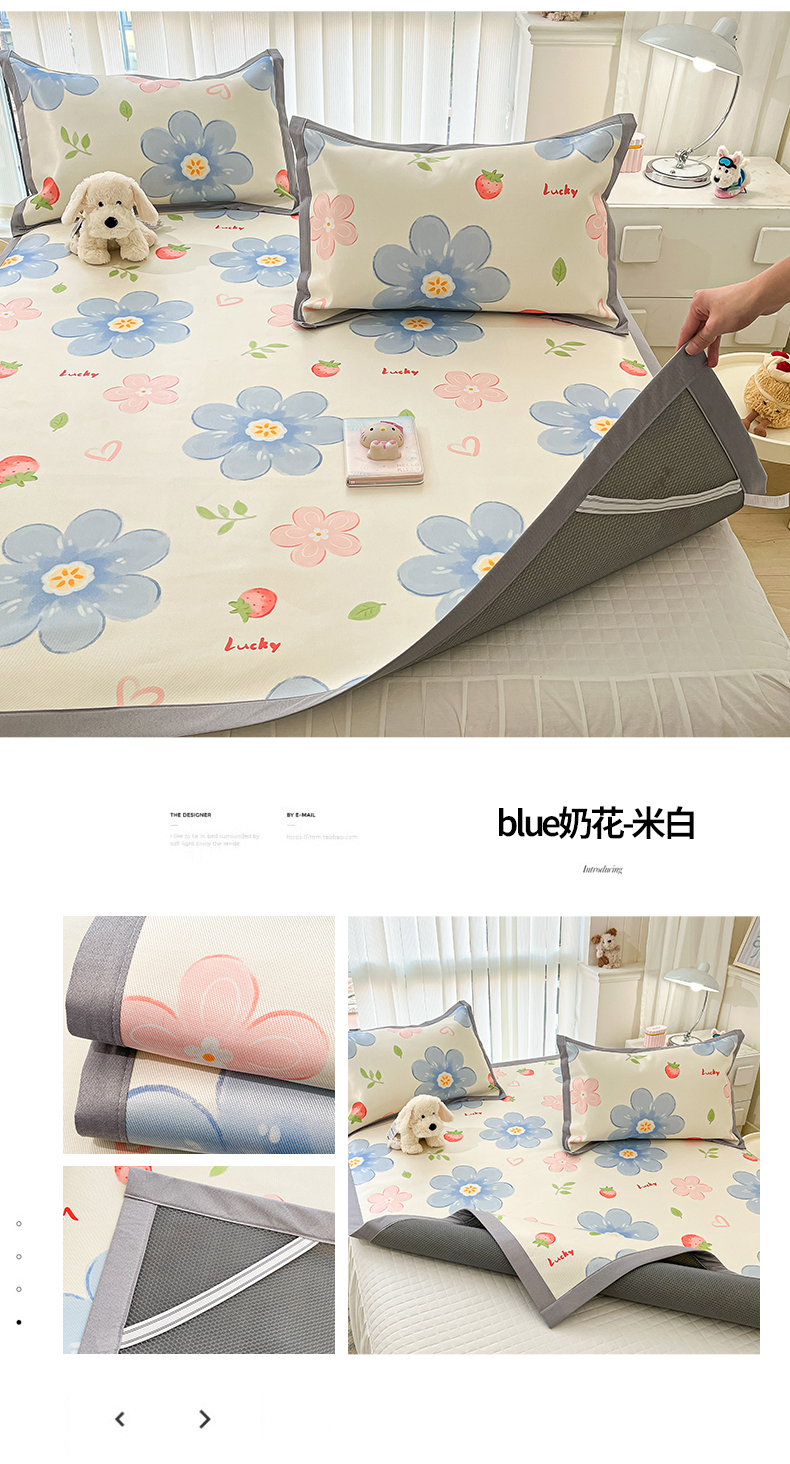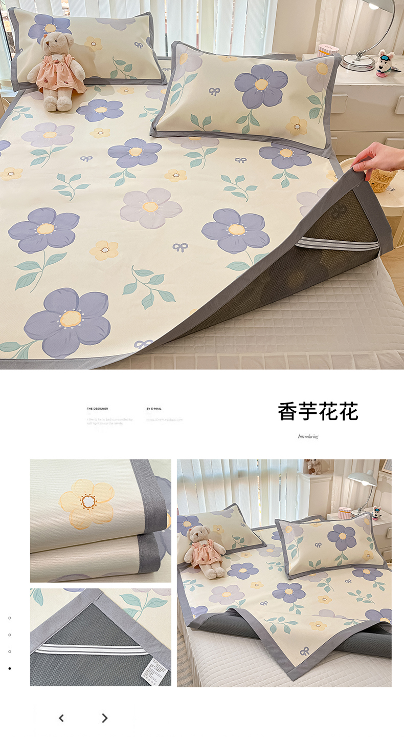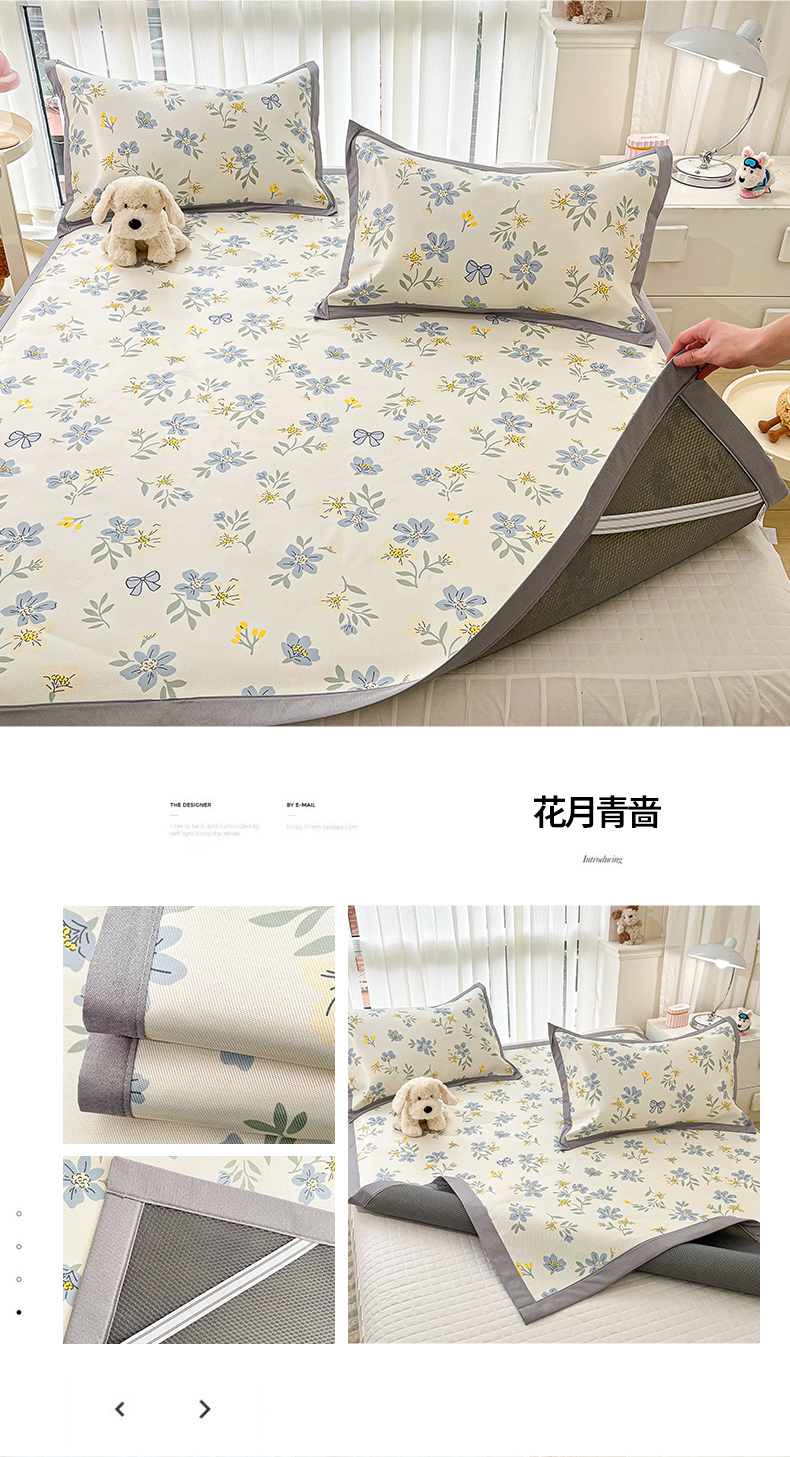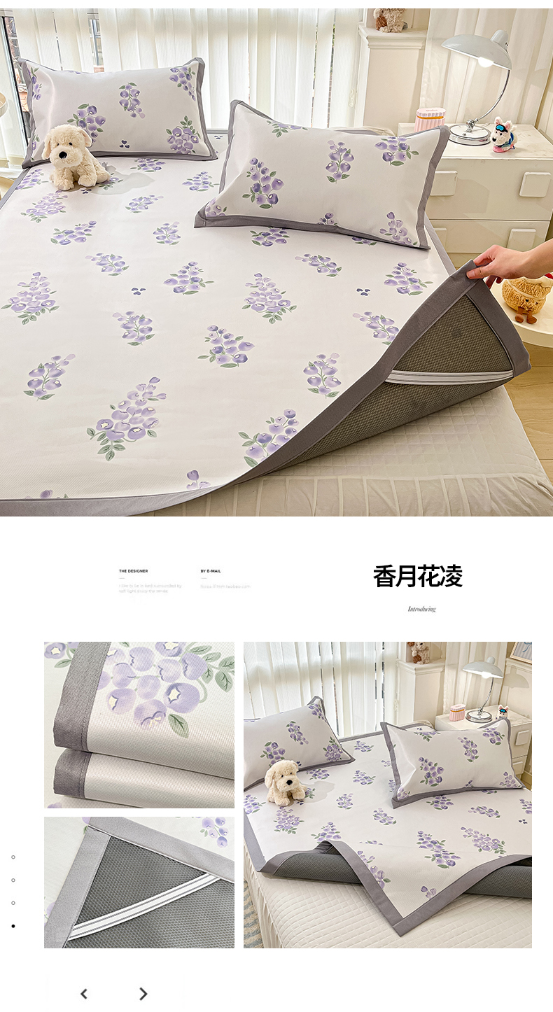 商品名称:川悦生活 2025新款600D立体宽边冰丝印花凉席 花簇田园