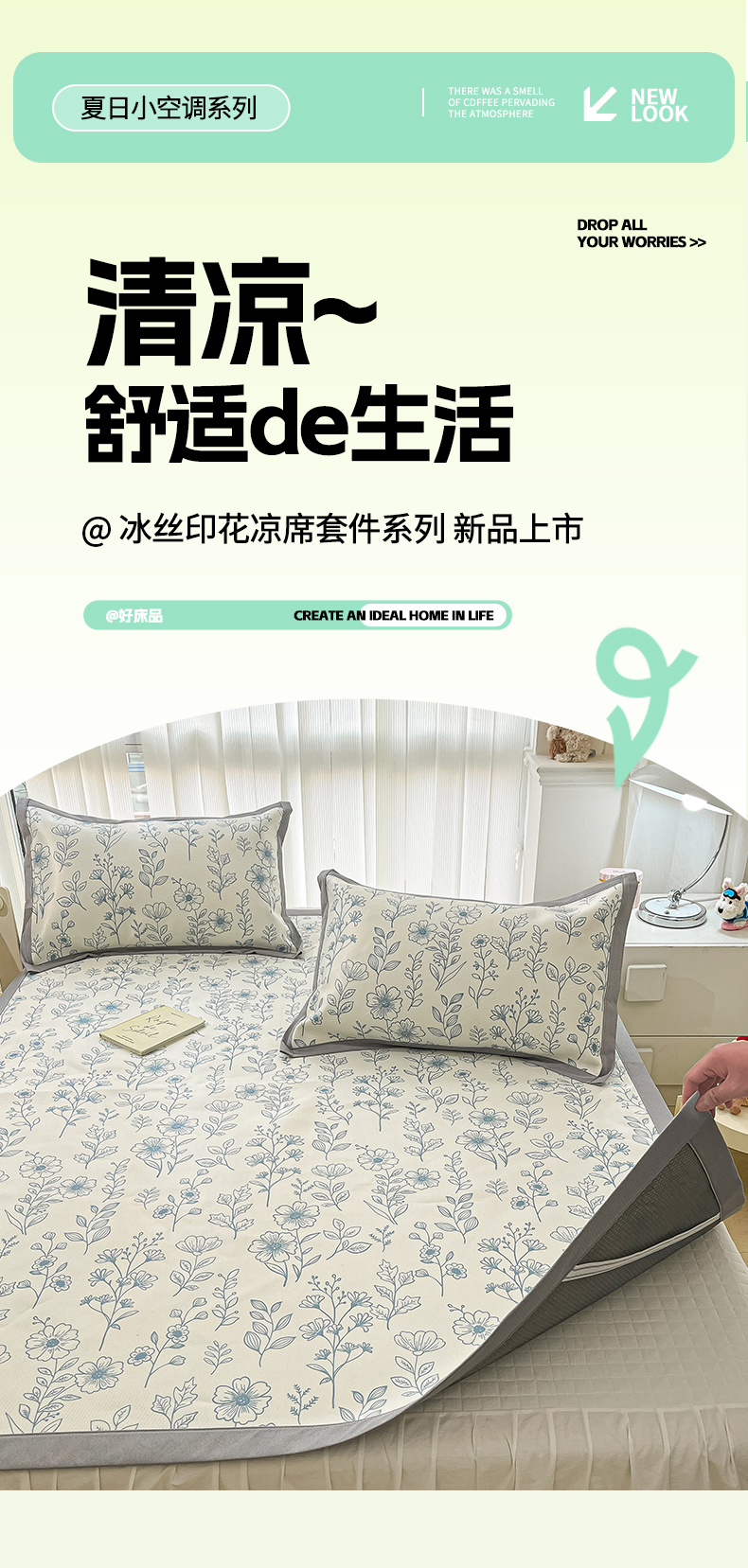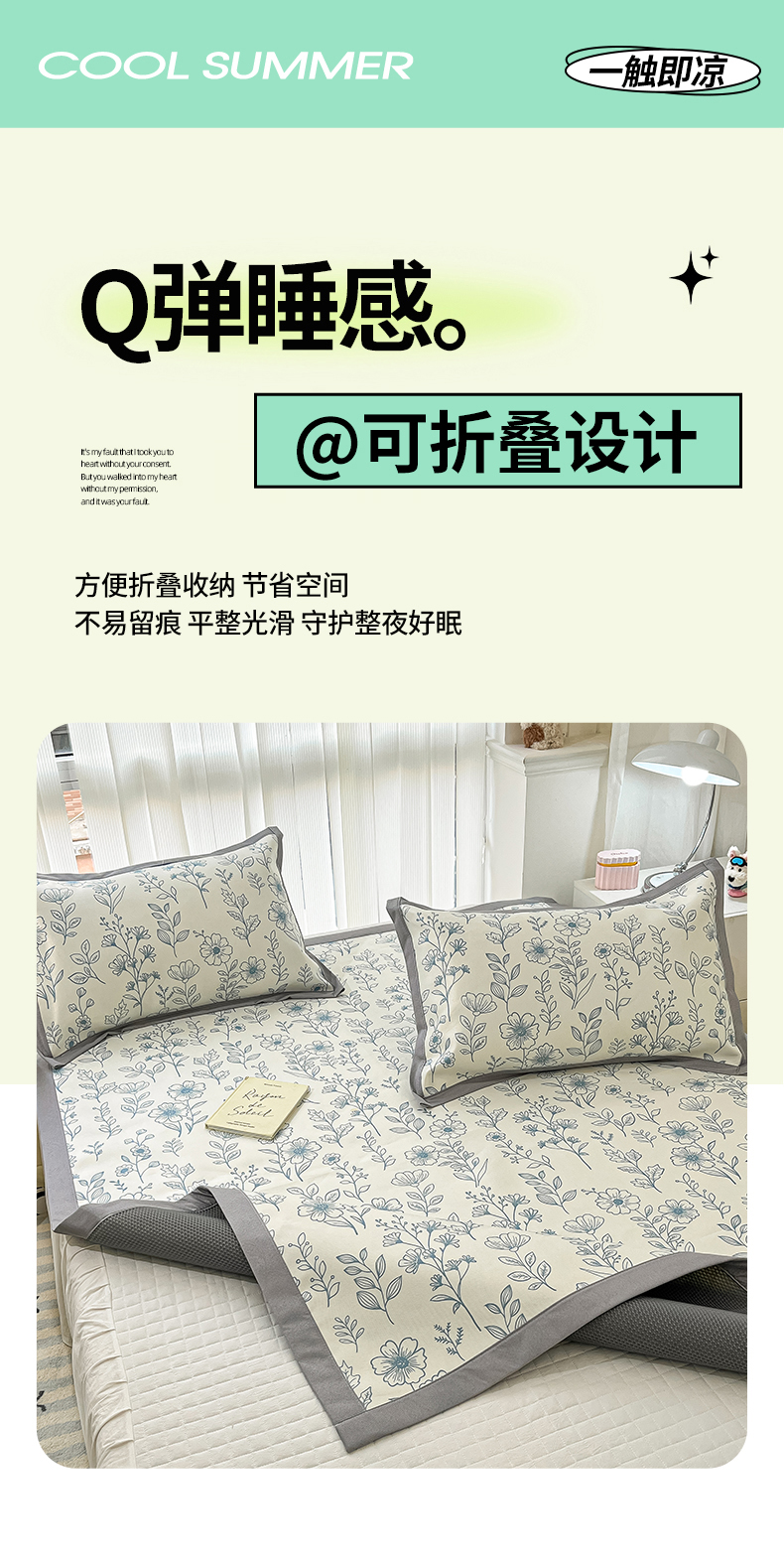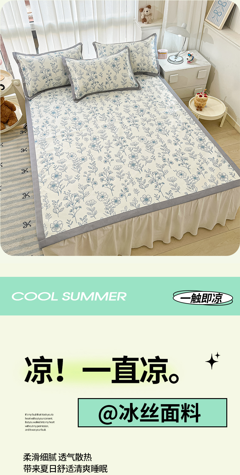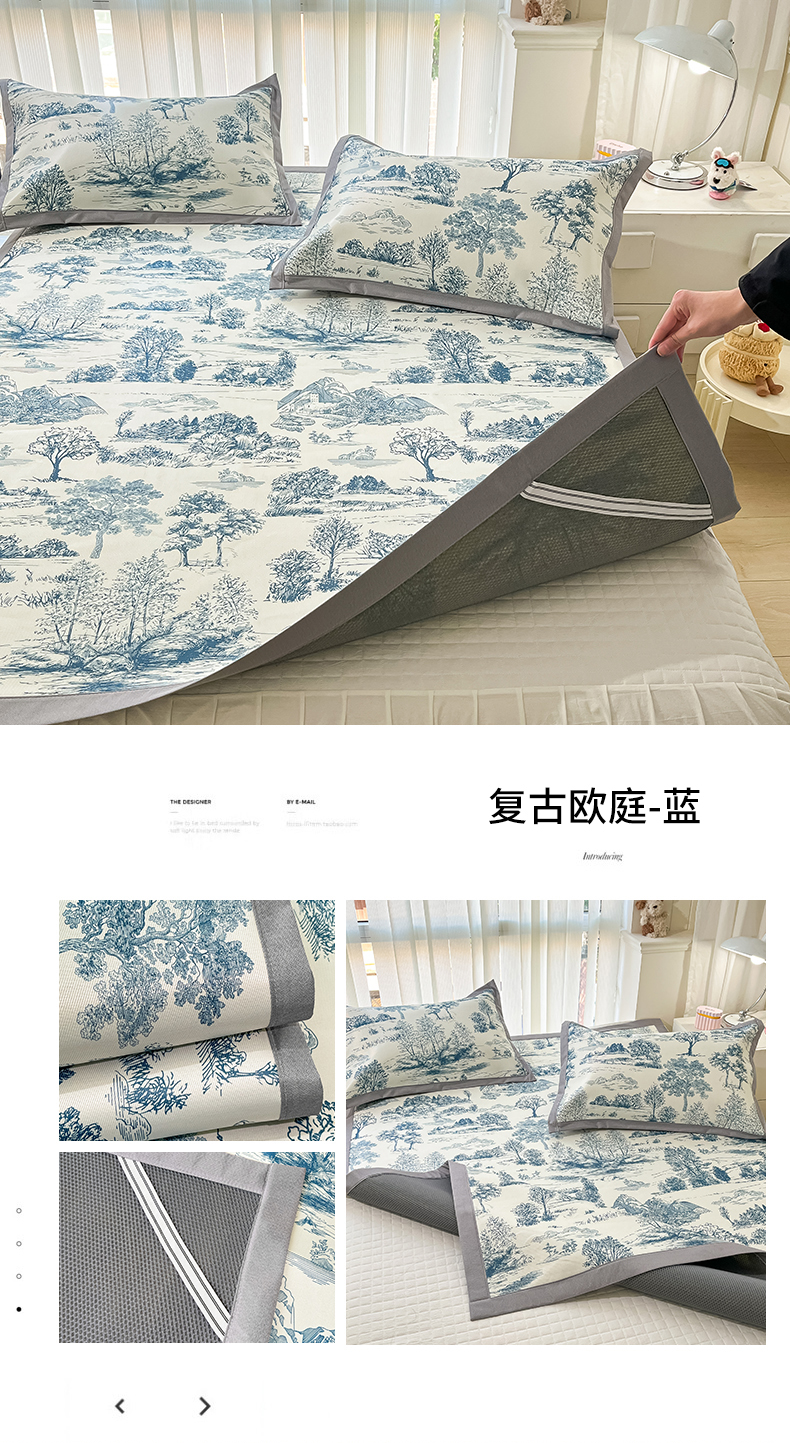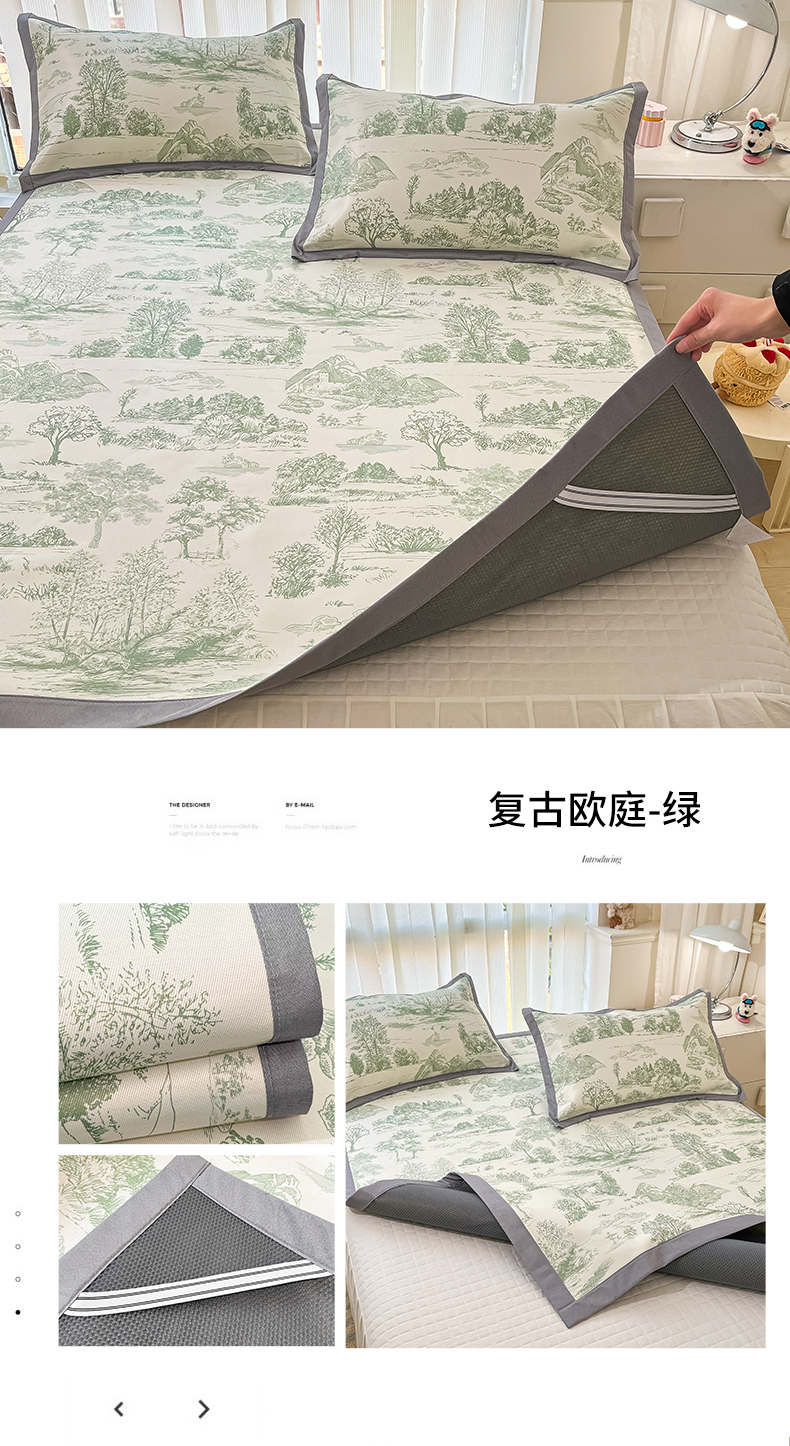 商品名称:川悦生活 2025新款600D立体宽边冰丝印花凉席 花簇田园