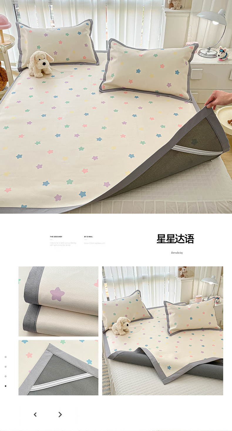 川悦生活 2026新款凉感冰丝席小阪凉感冰丝数码印花席学生床 席星星西高地,席星星西高地