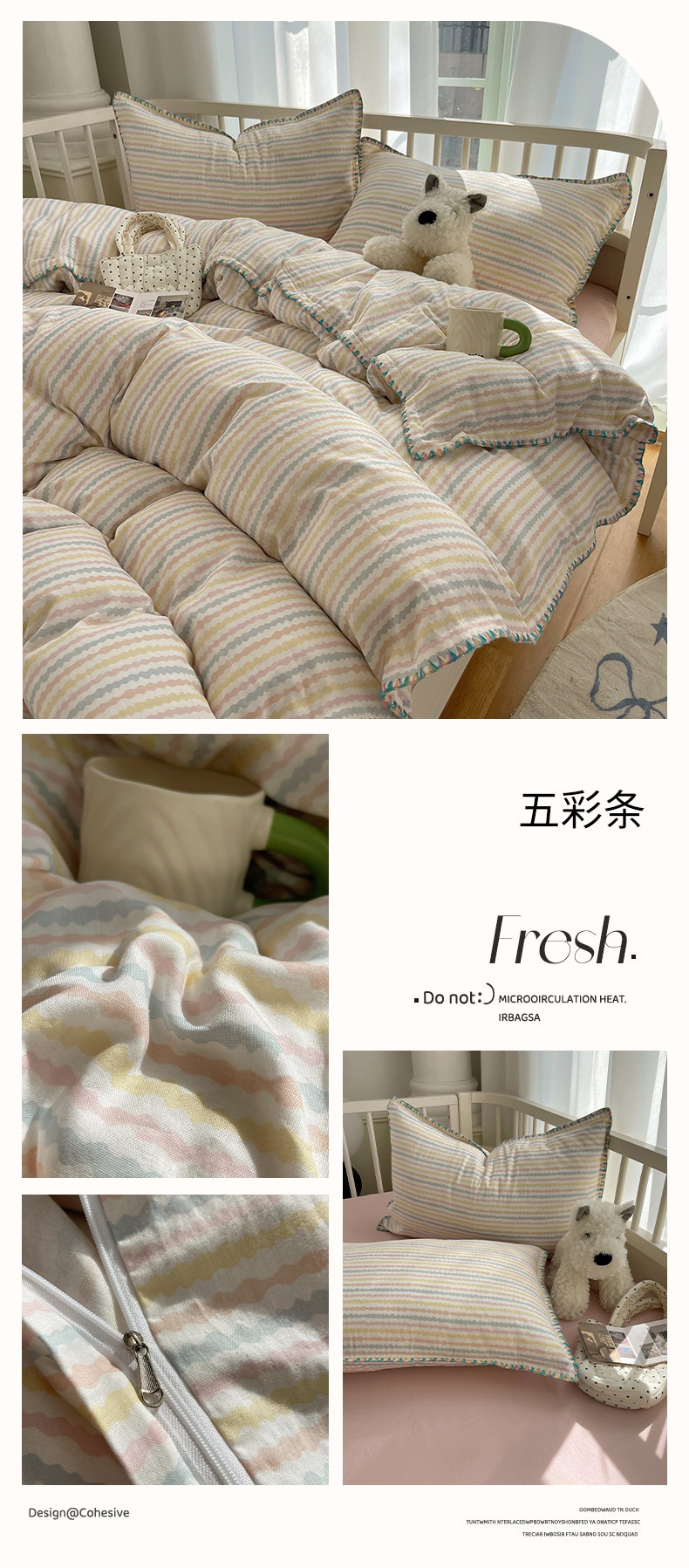 (总)瑞莱 2025新款色织水洗棉贝壳绣系列四件套-第二版,条纹灰,细条红,细条蓝,细条绿