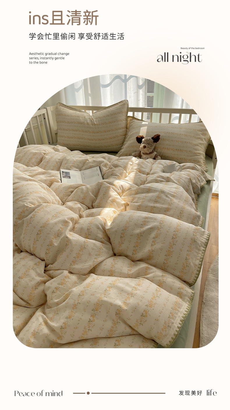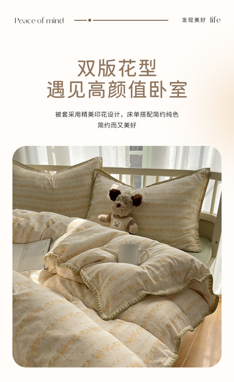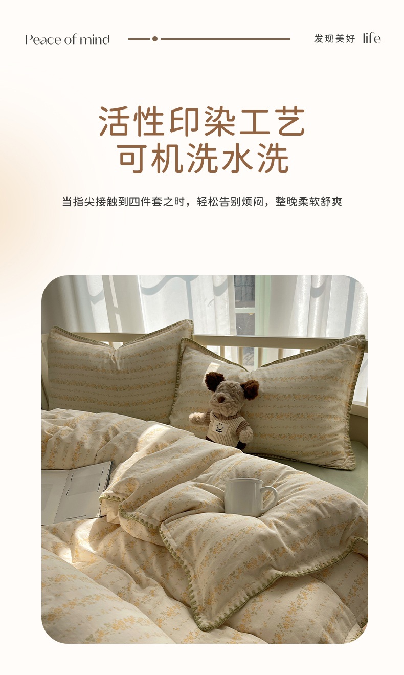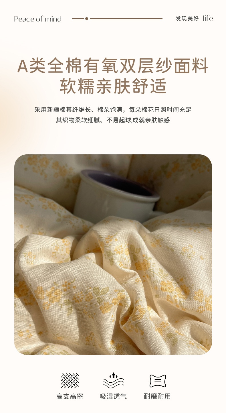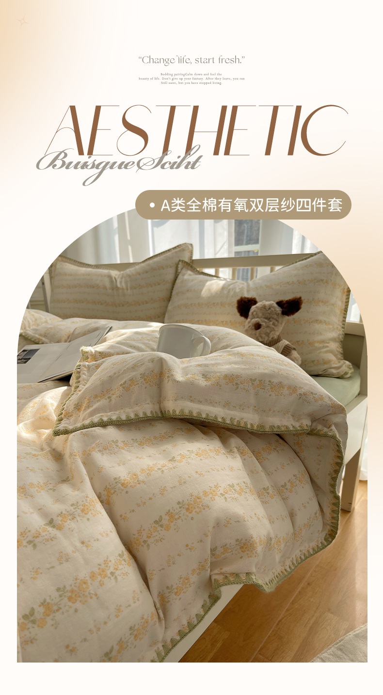 商品名称:瑞莱 2025新款13372全棉有氧双层纱四件套 汐雾