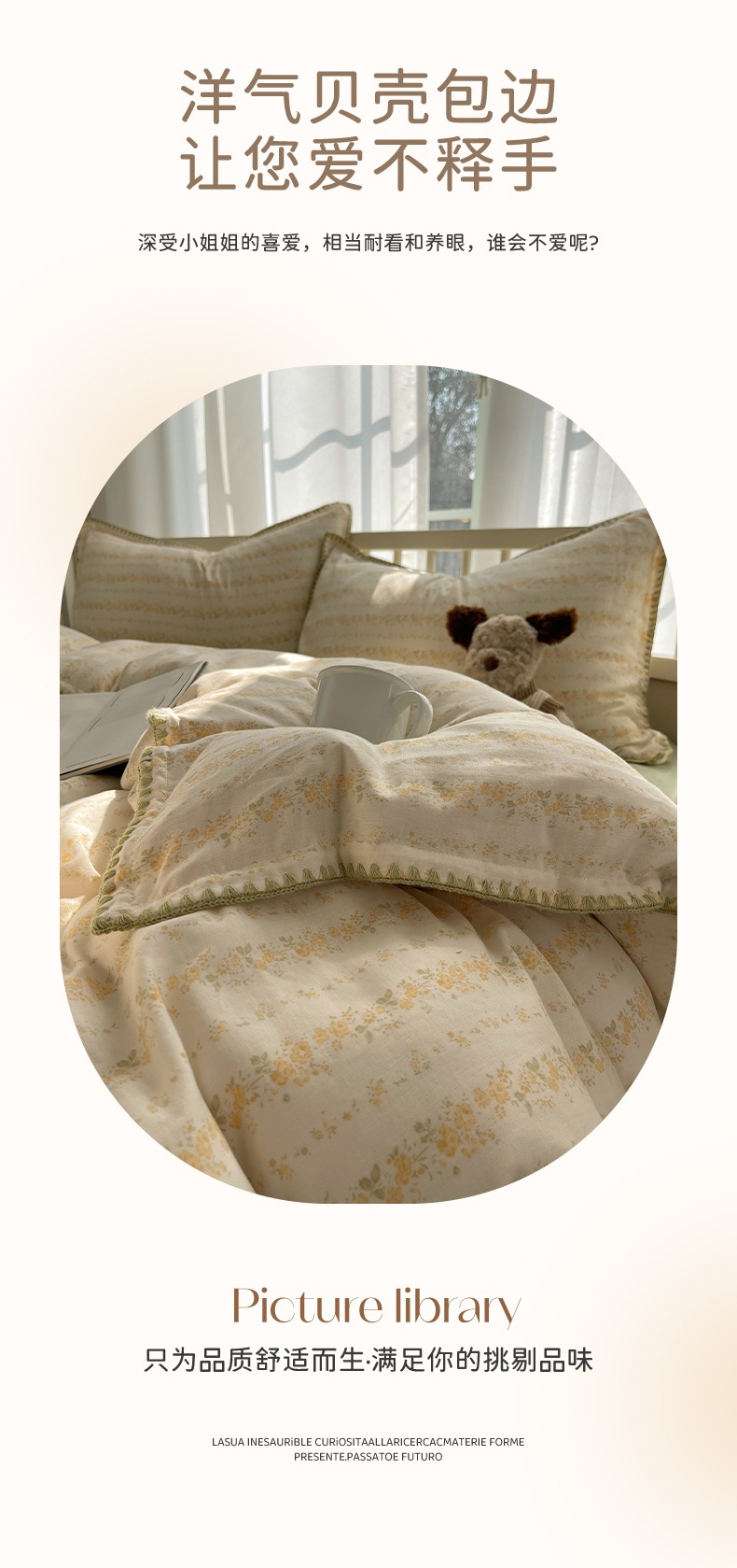 (总)瑞莱 2025新款全棉轻奢水洗棉贝壳绣四件套,豆沙,粉玉,米白,米黄,浅灰,浅蓝,深灰,深蓝,水绿,星蓝