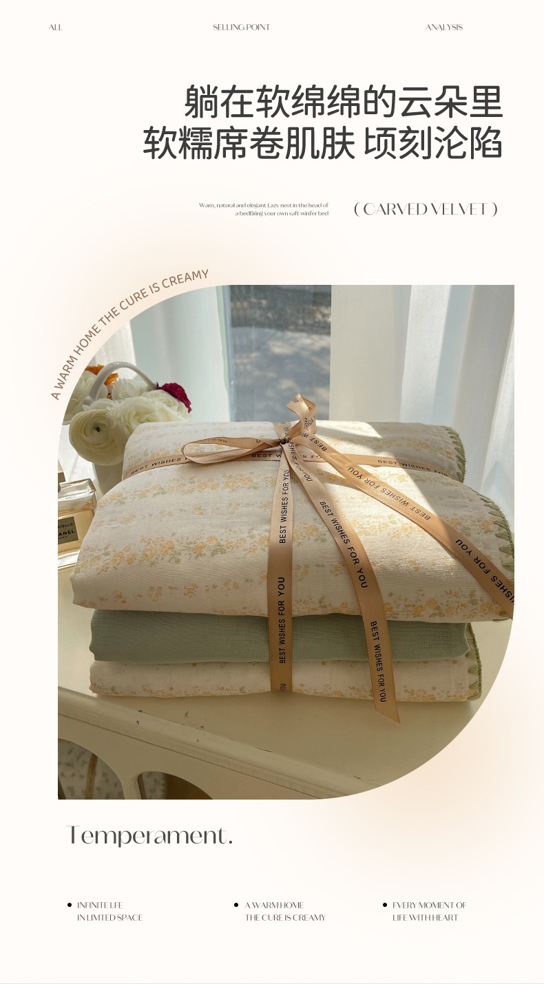 (总)瑞莱 2025秋冬高克重韩系蕾丝花边雕花绒四件套,邂逅,郁金香,艾莎,蜜夏,同心结,悠然