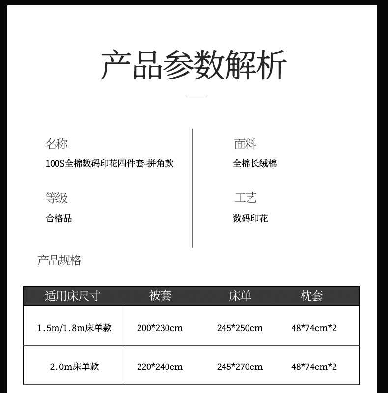 商品名称:(总)FORTWO家纺原创设计(FOR TWO家纺) 2025年新款100S长绒棉数码印花四件套-拼角款