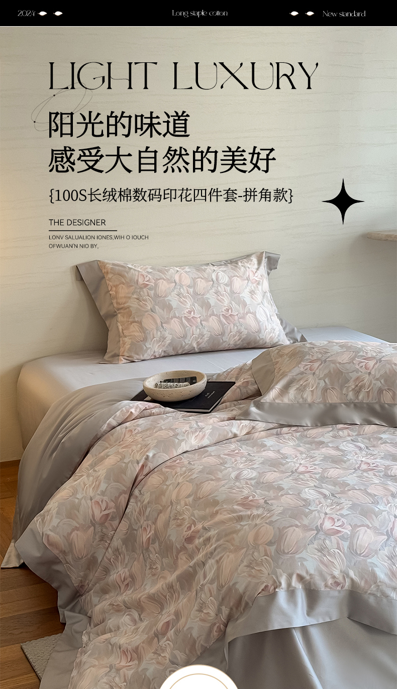 (总)FORTWO家纺原创设计(FOR TWO家纺) 2025年新款100S长绒棉数码印花四件套-拼角款