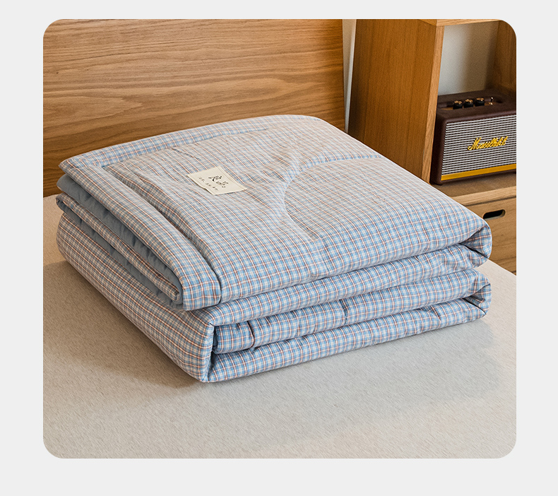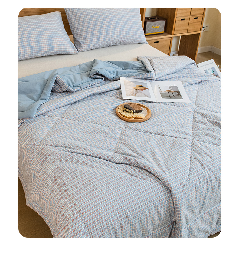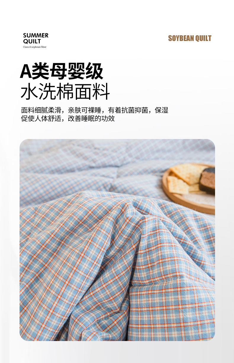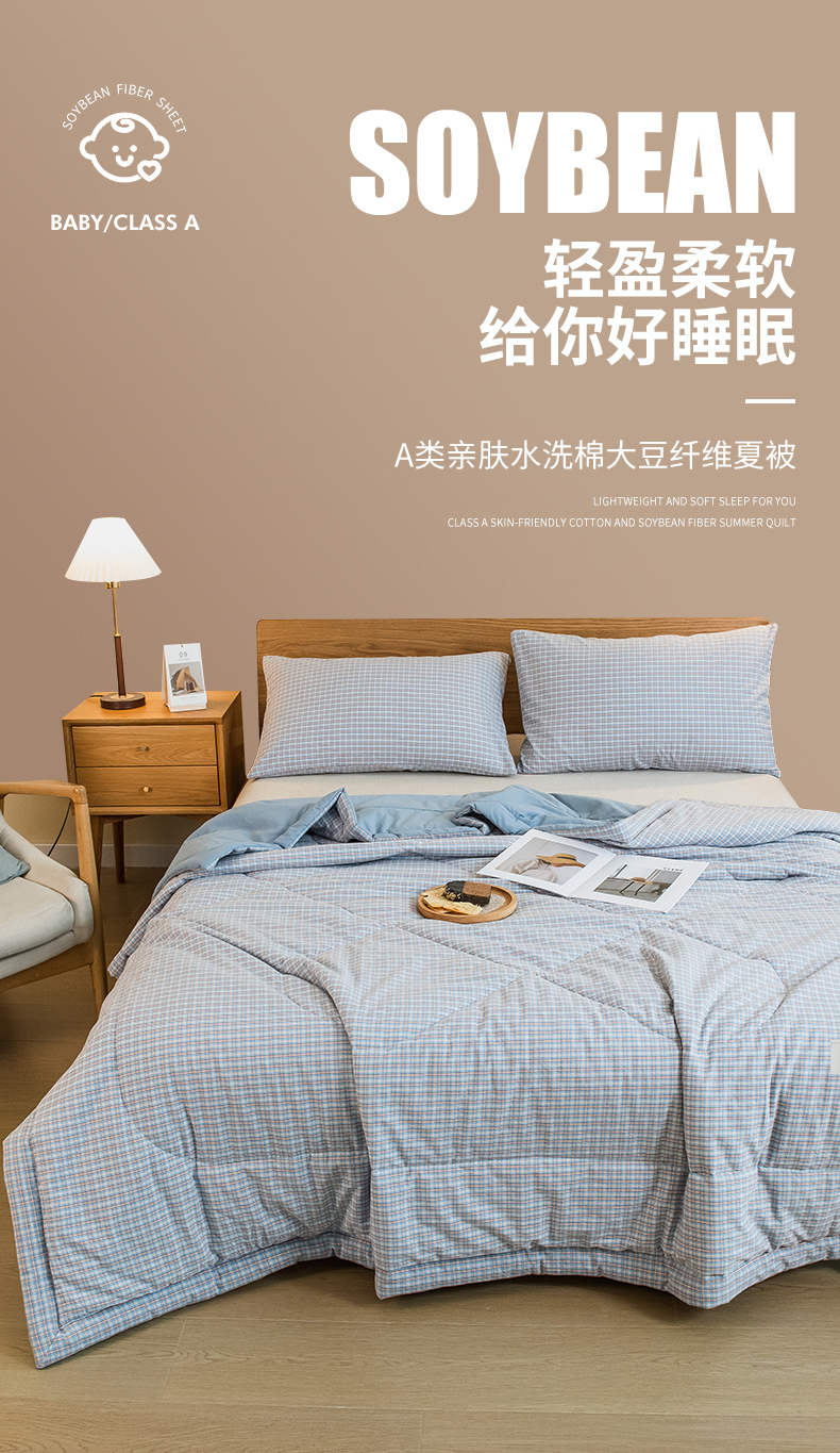 商品名称:慕木家纺 2025春夏新款A类亲肤水洗棉大豆纤维夏被夏凉被空调被 格韵-蓝