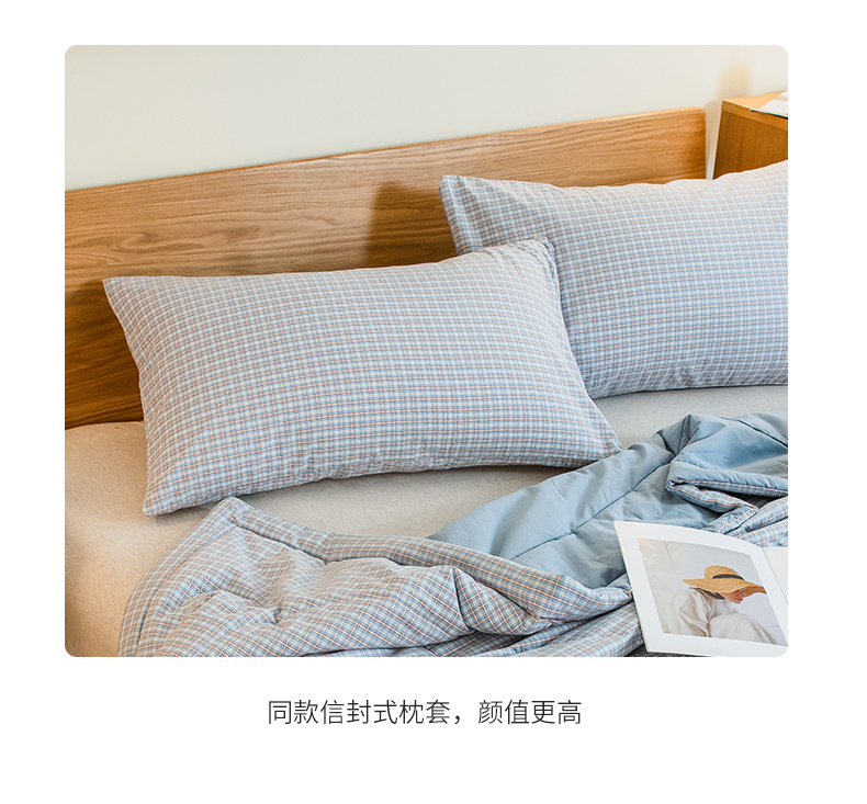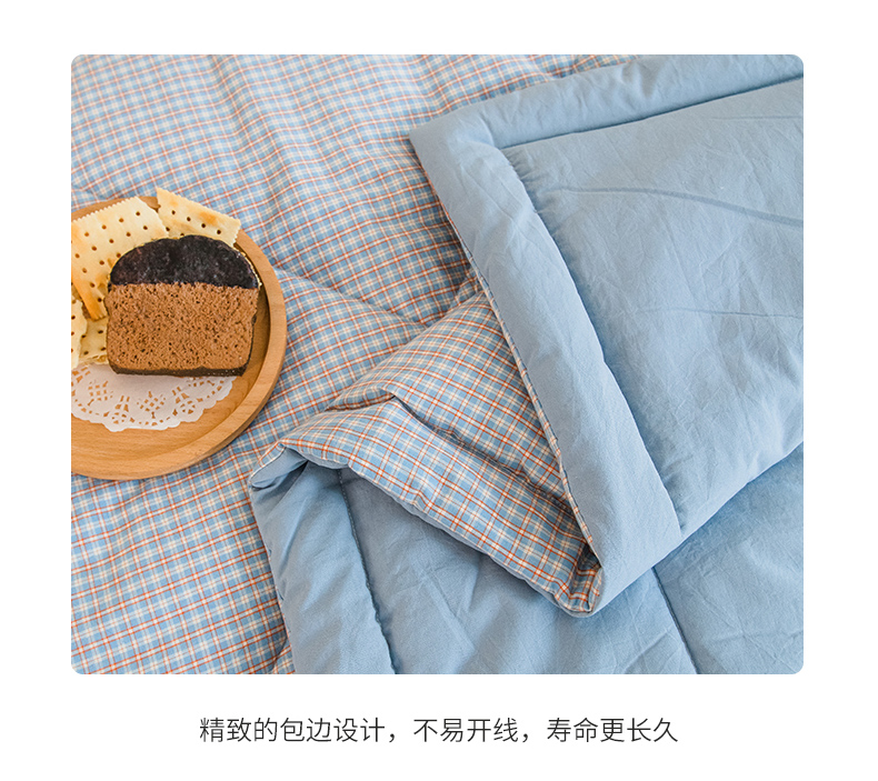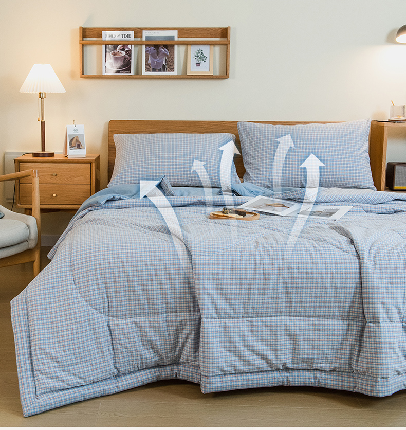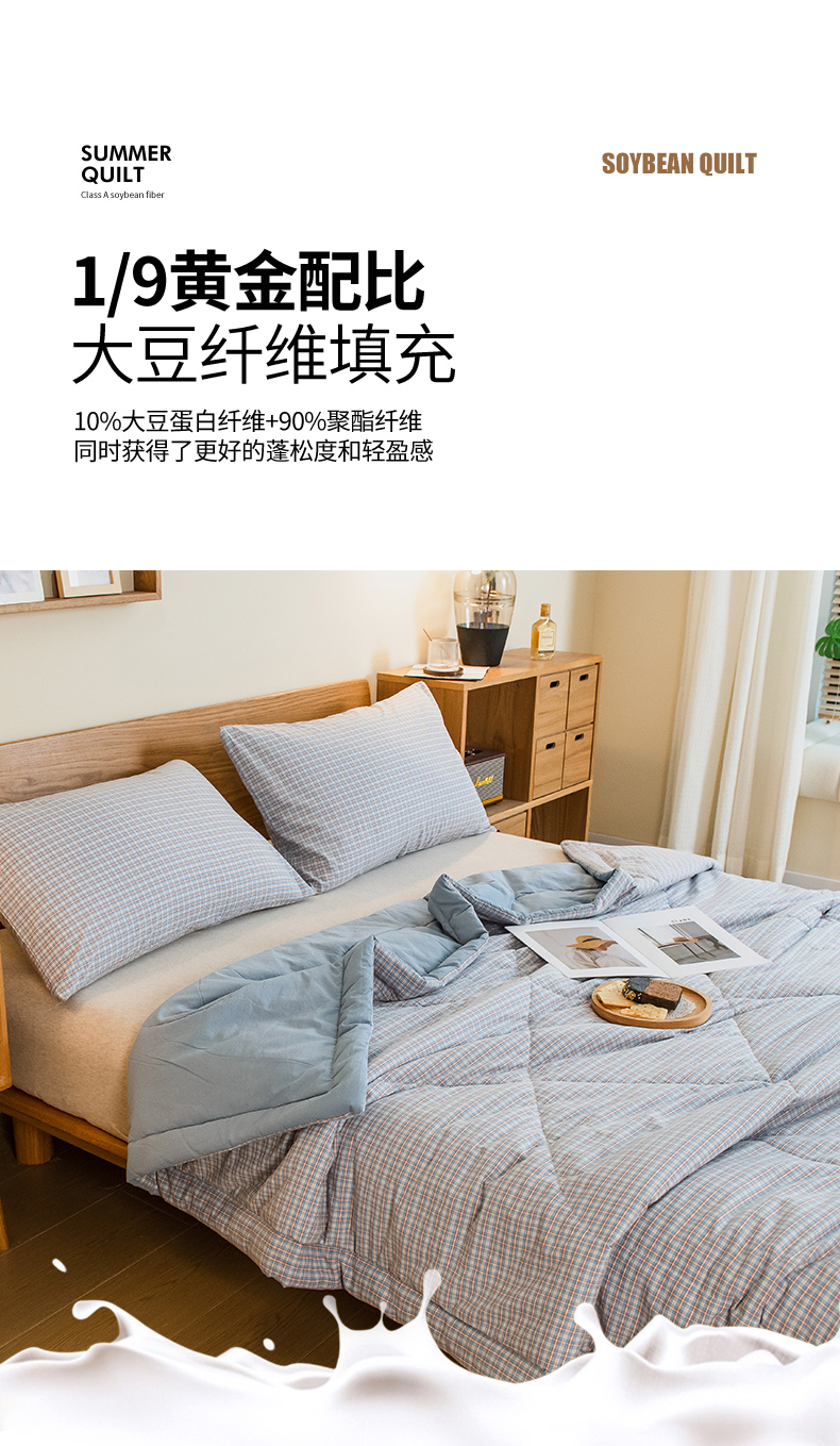 商品名称:慕木家纺 2025春夏新款A类亲肤水洗棉大豆纤维夏被夏凉被空调被 格韵-蓝