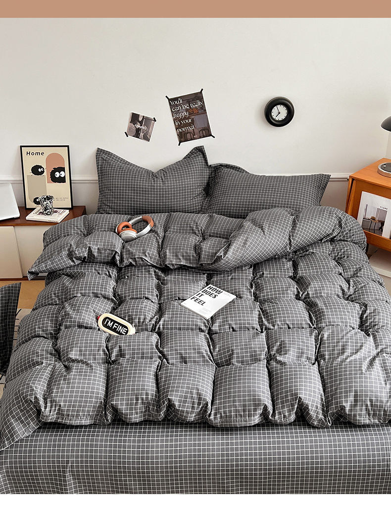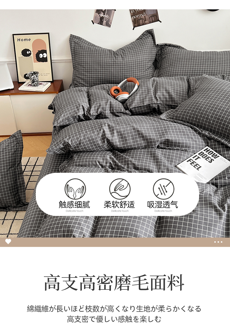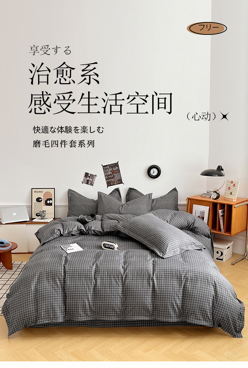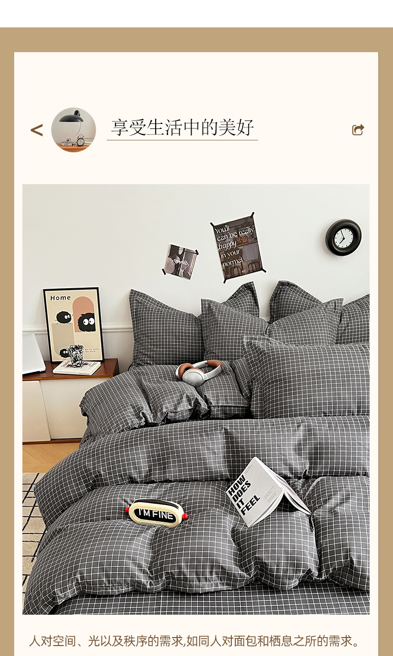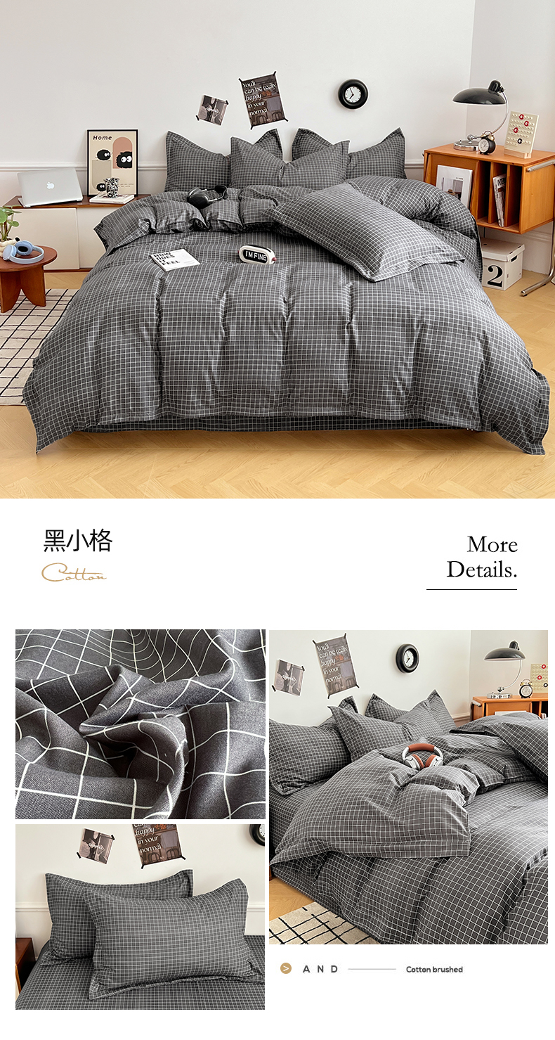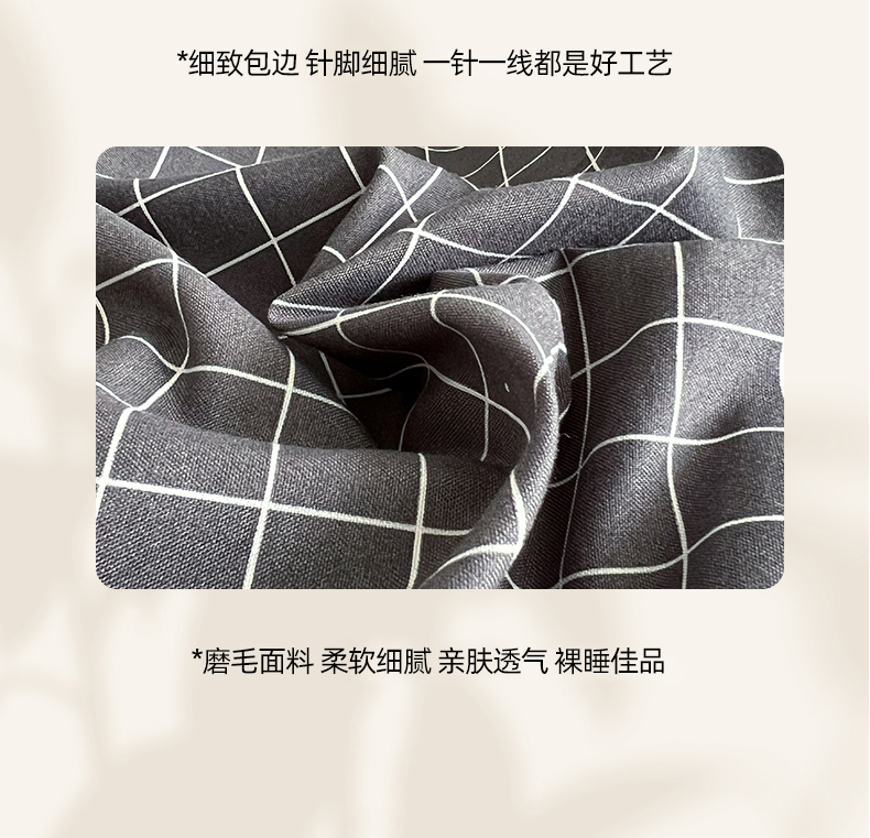 当前位置: 91家纺网 > 商品网购 > 床品套件 > 四件套 > 普通磨毛四件套 > 罗菲尼酒店用品 2025新款磨毛亲肤飞边款四件套 黑小格