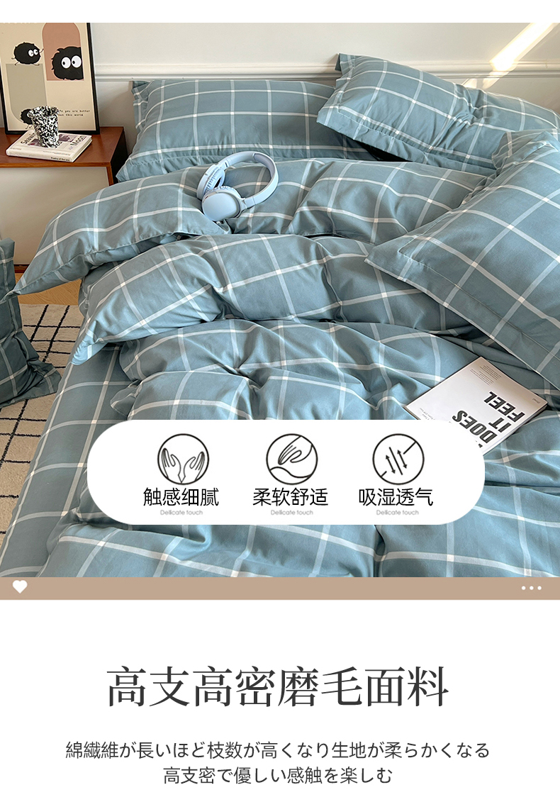 当前位置: 91家纺网 > 商品网购 > 床品套件 > 四件套 > 普通磨毛四件套 > 罗菲尼酒店用品 2025新款磨毛亲肤飞边款四件套 优雅蓝格