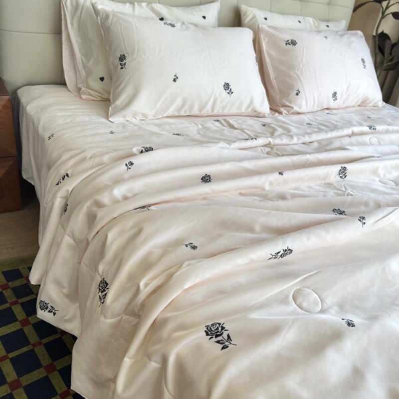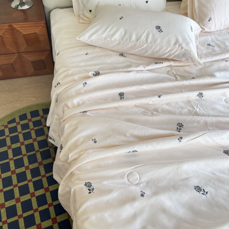 商品名称:棉生活家纺 2025新款ins小清新水洗冰丝夏被四件套 玫瑰园 香槟色