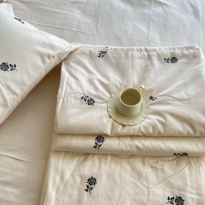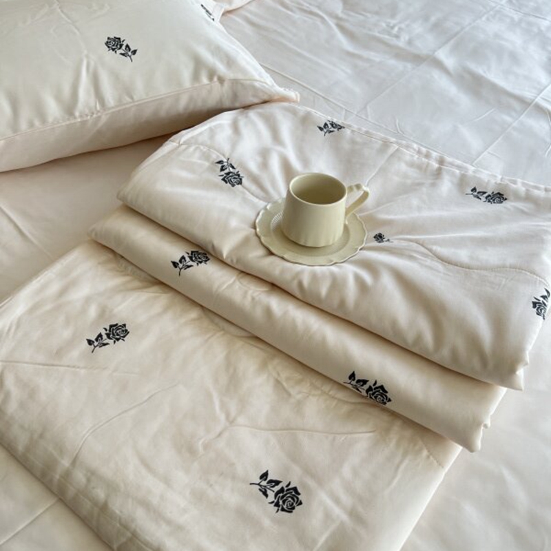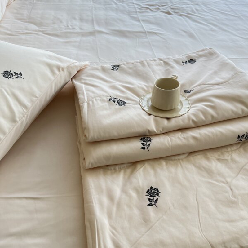 棉生活家纺 2025新款ins小清新水洗冰丝夏被四件套 玫瑰园 香槟色