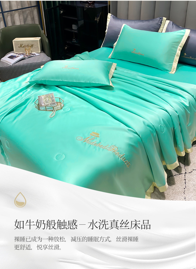 当前位置: 91家纺网 > 商品网购 > 床品套件 > 四件套 > 夏被四件套 > 经年 2025新款水洗真丝刺绣夏被四件套 凉夏-水绿