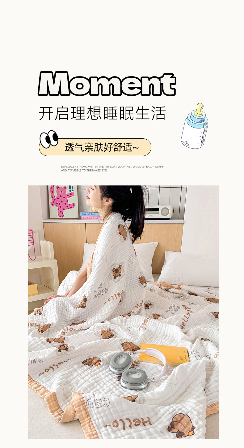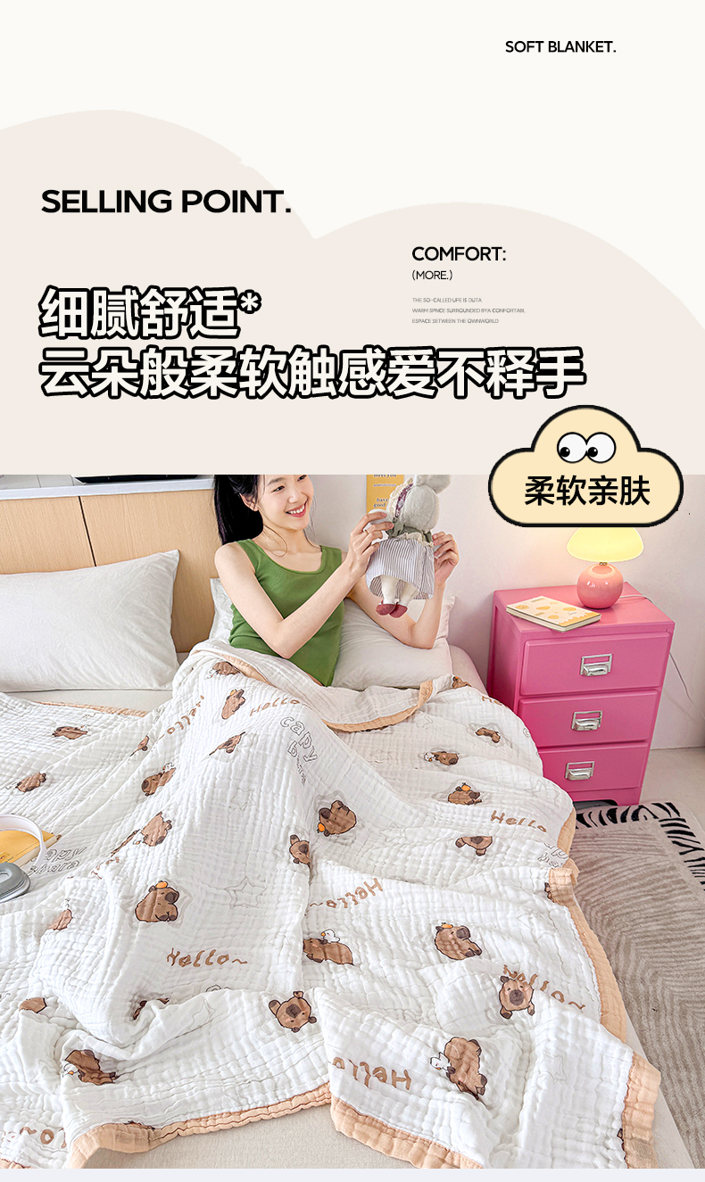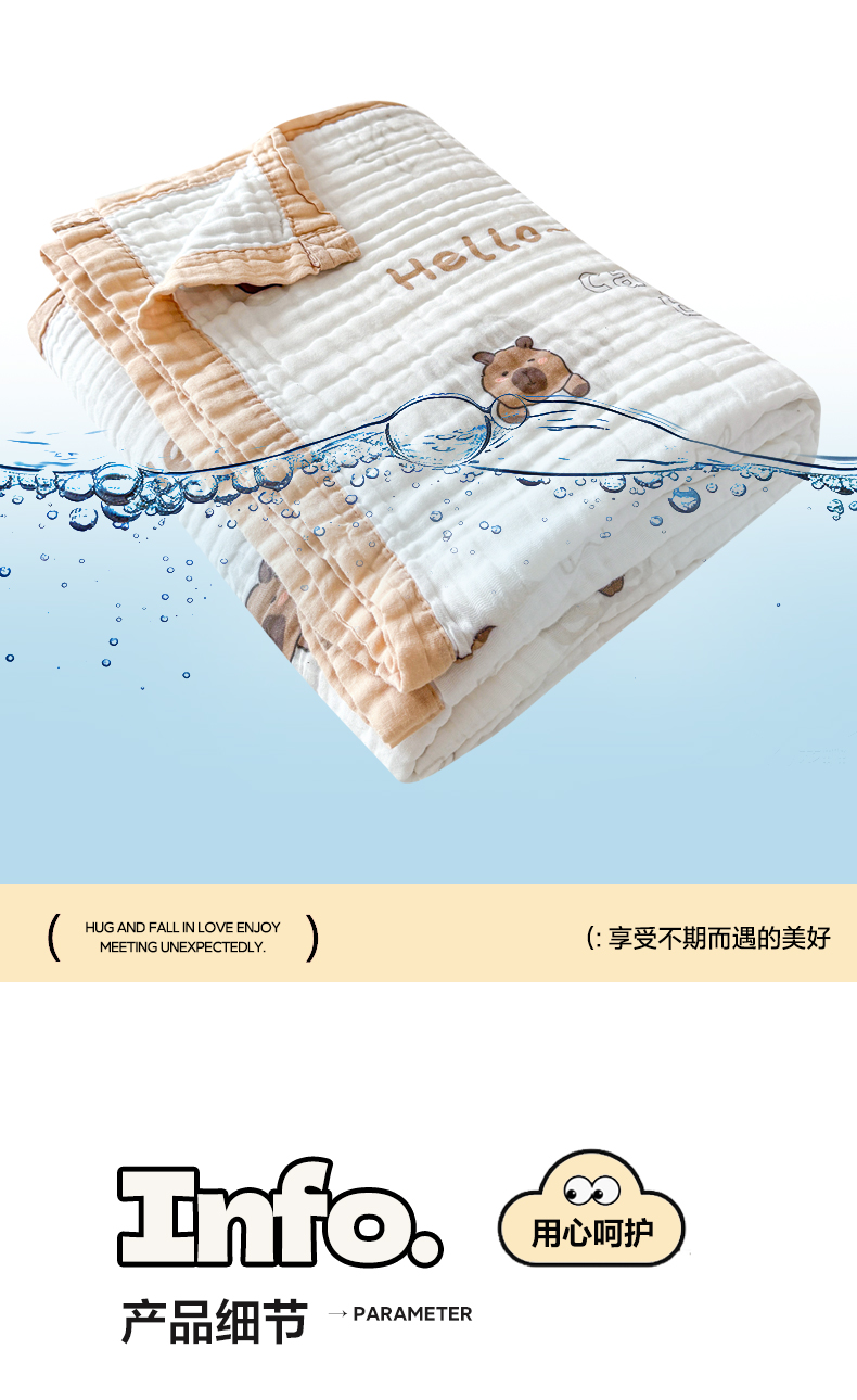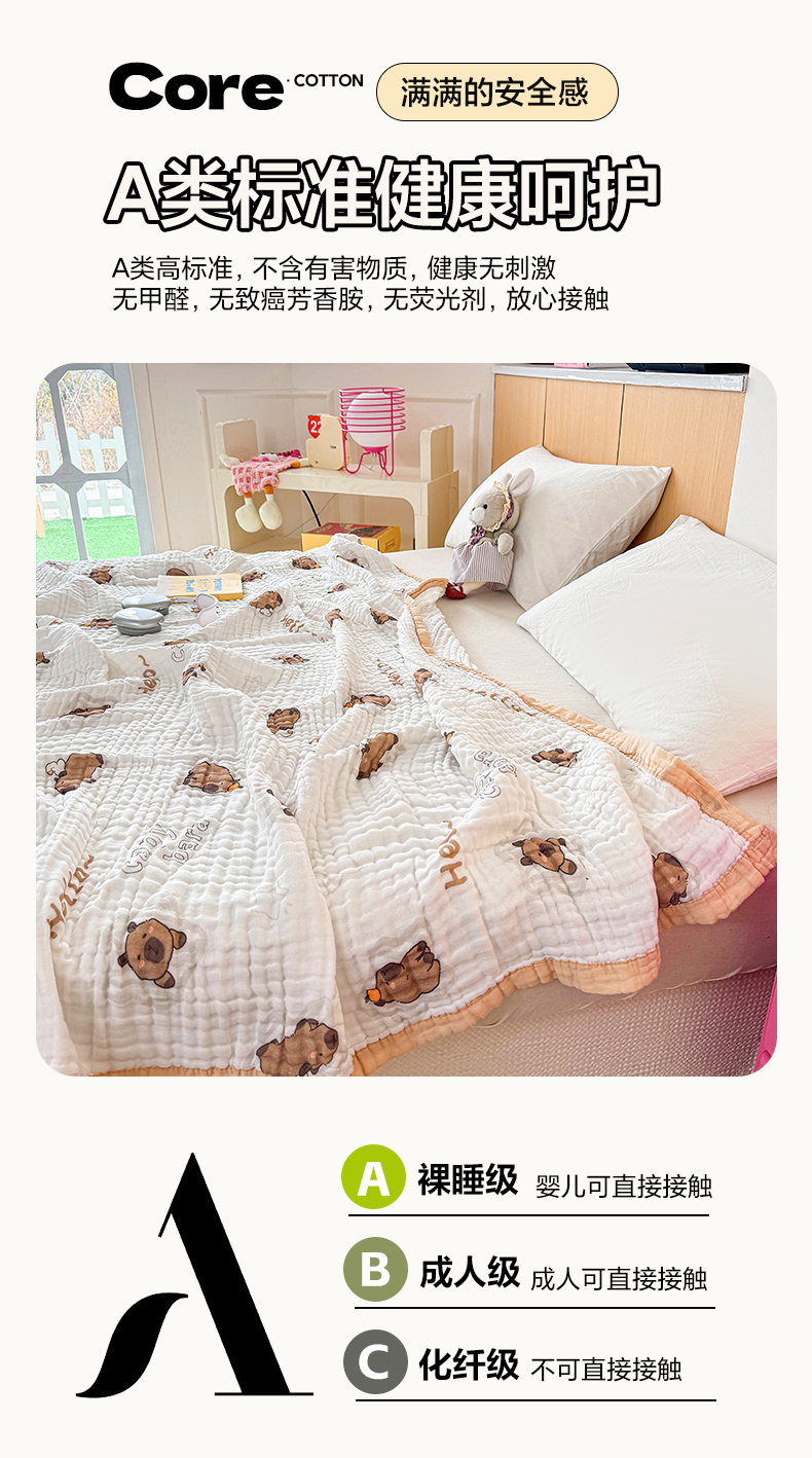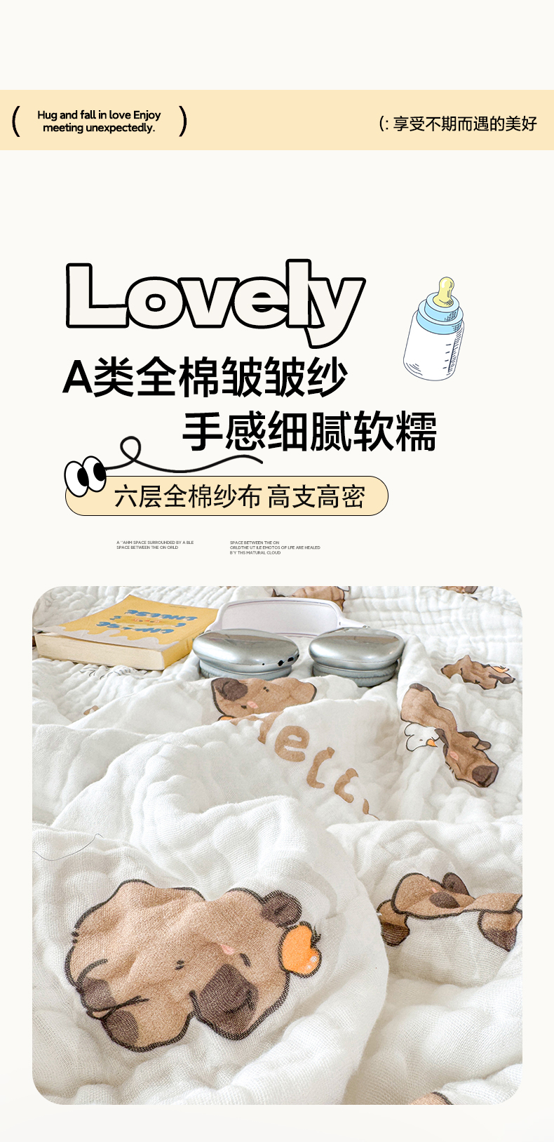 商品名称:棠薇家纺 2025新款全棉六层皱皱纱婴幼毯泡泡纱印花盖毯包被浴巾 小熊熊