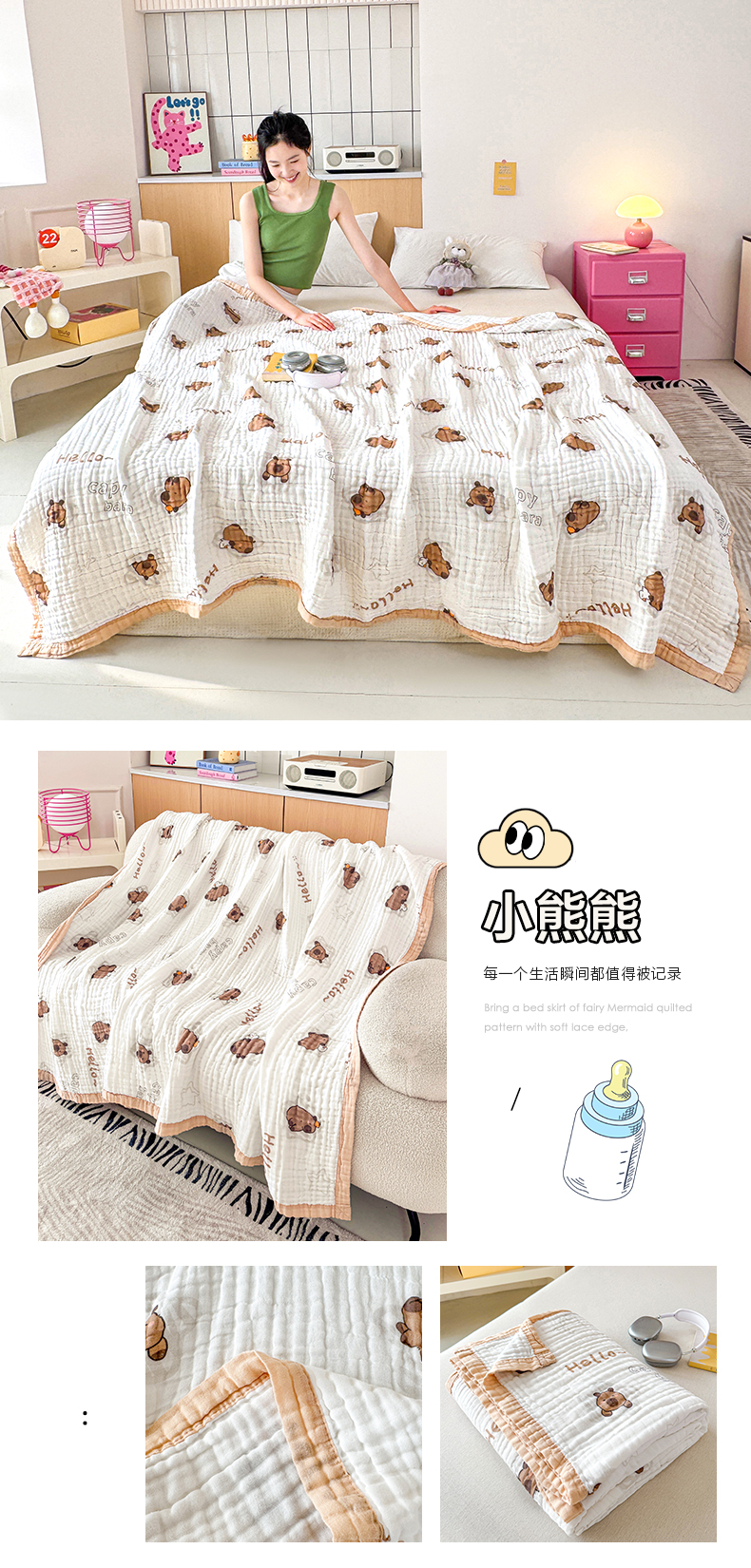 棠薇家纺 2025新款全棉六层皱皱纱婴幼毯泡泡纱印花盖毯包被浴巾 小熊熊