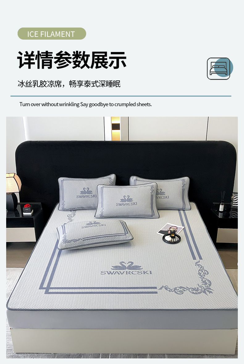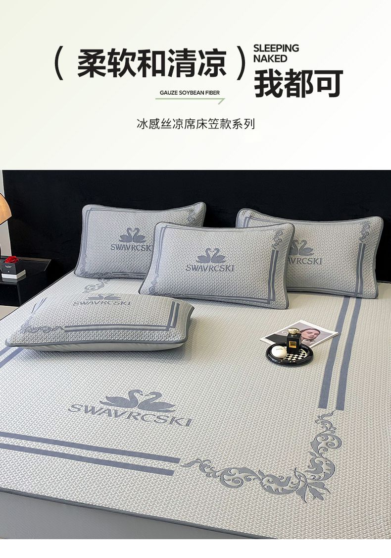 商品名称:首尔家纺 2025新款大版凉感丝凉席 天鹅-高级灰
