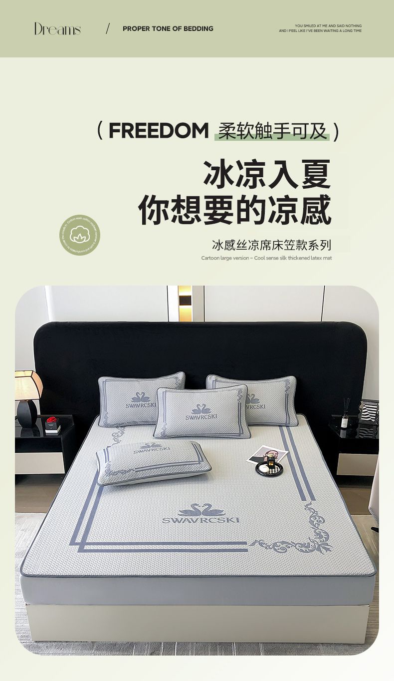首尔家纺 2025新款大版凉感丝凉席 天鹅-高级灰