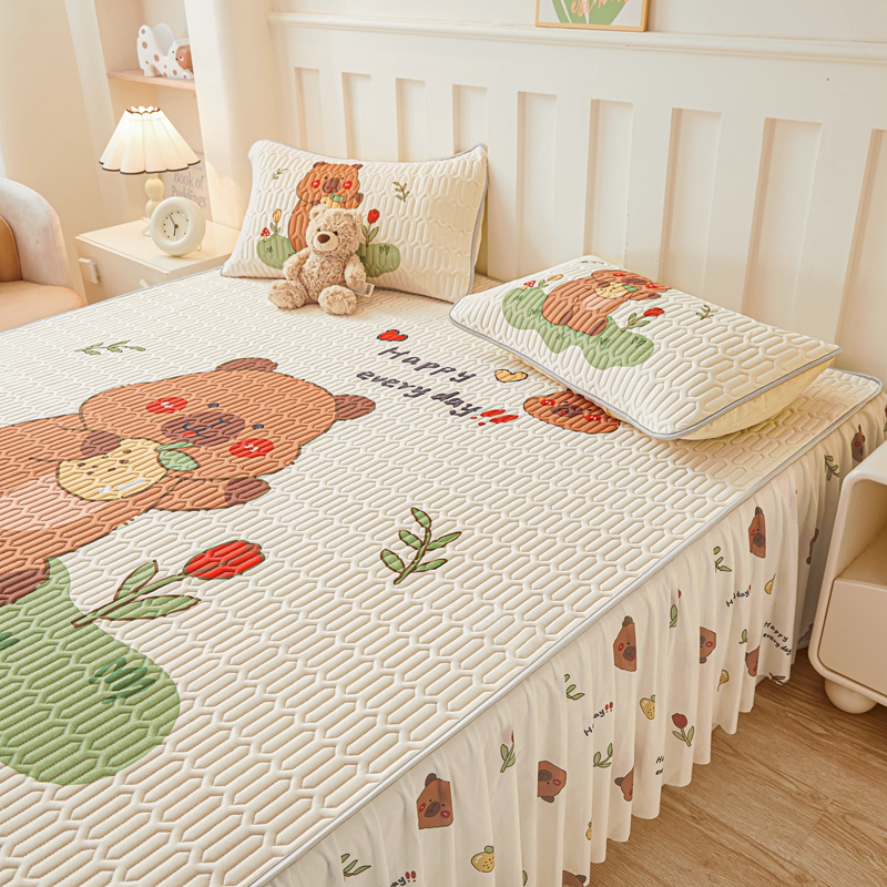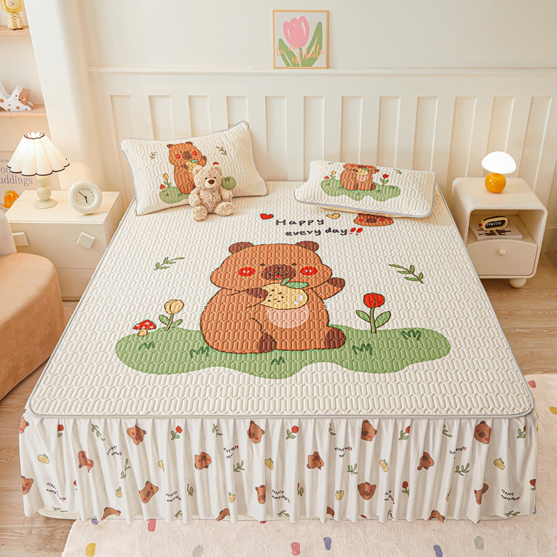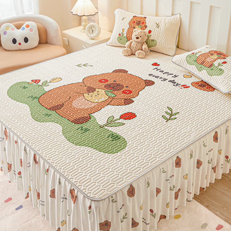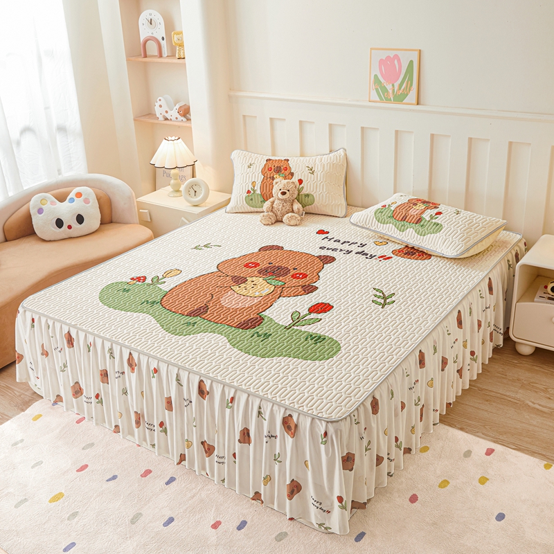 希廷顿 2025新款大版印花乳胶凉席床裙款三件套 卡皮巴拉