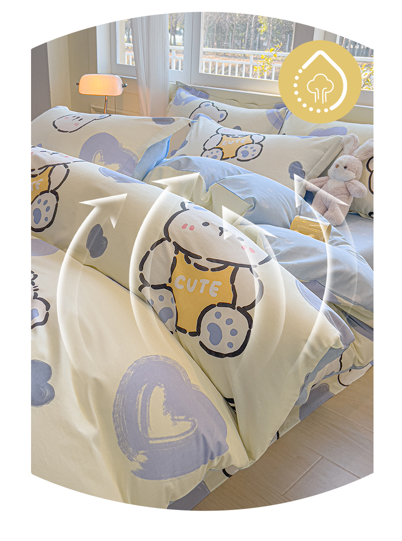 (总)拾物记 2023新款喷气全棉卡通小清新系列单被套,欢乐萌熊,奶油兔-红
