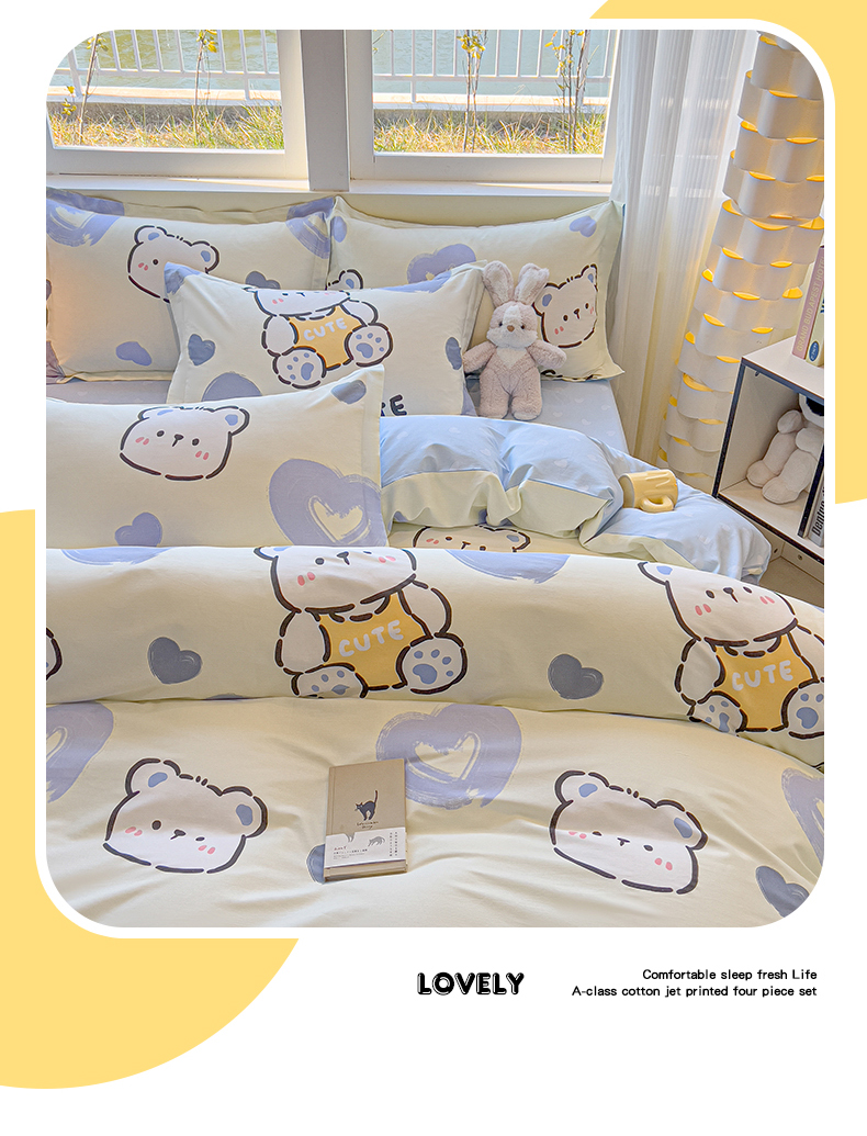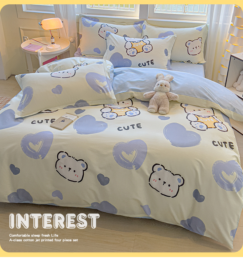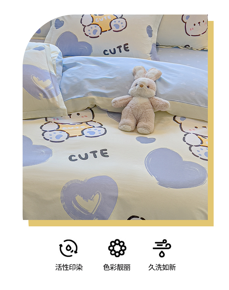 (总)拾物记 2023新款喷气全棉卡通小清新系列单床单,欢乐萌熊,奶油兔-红