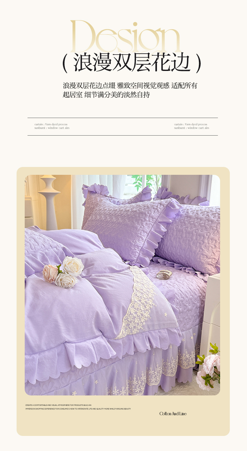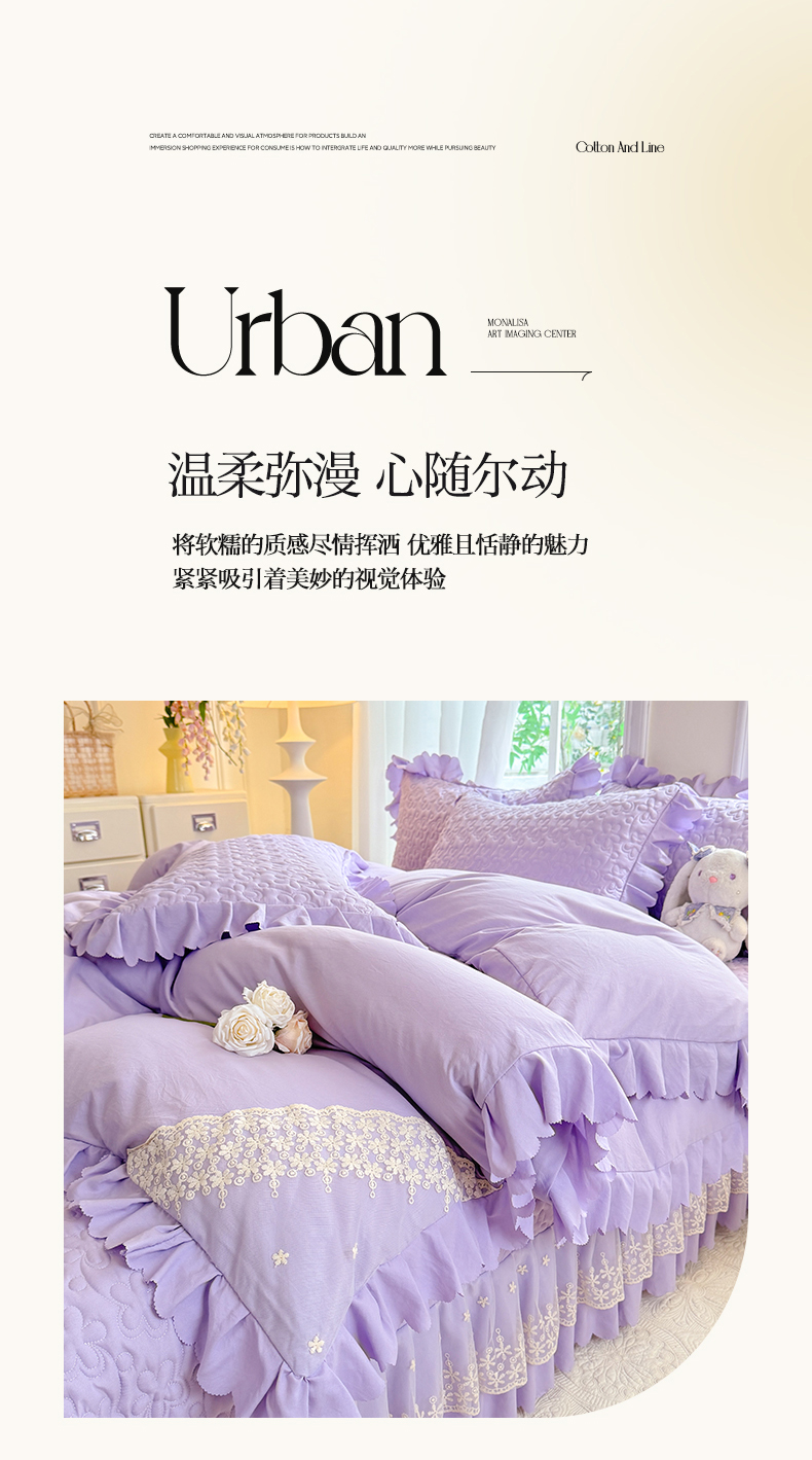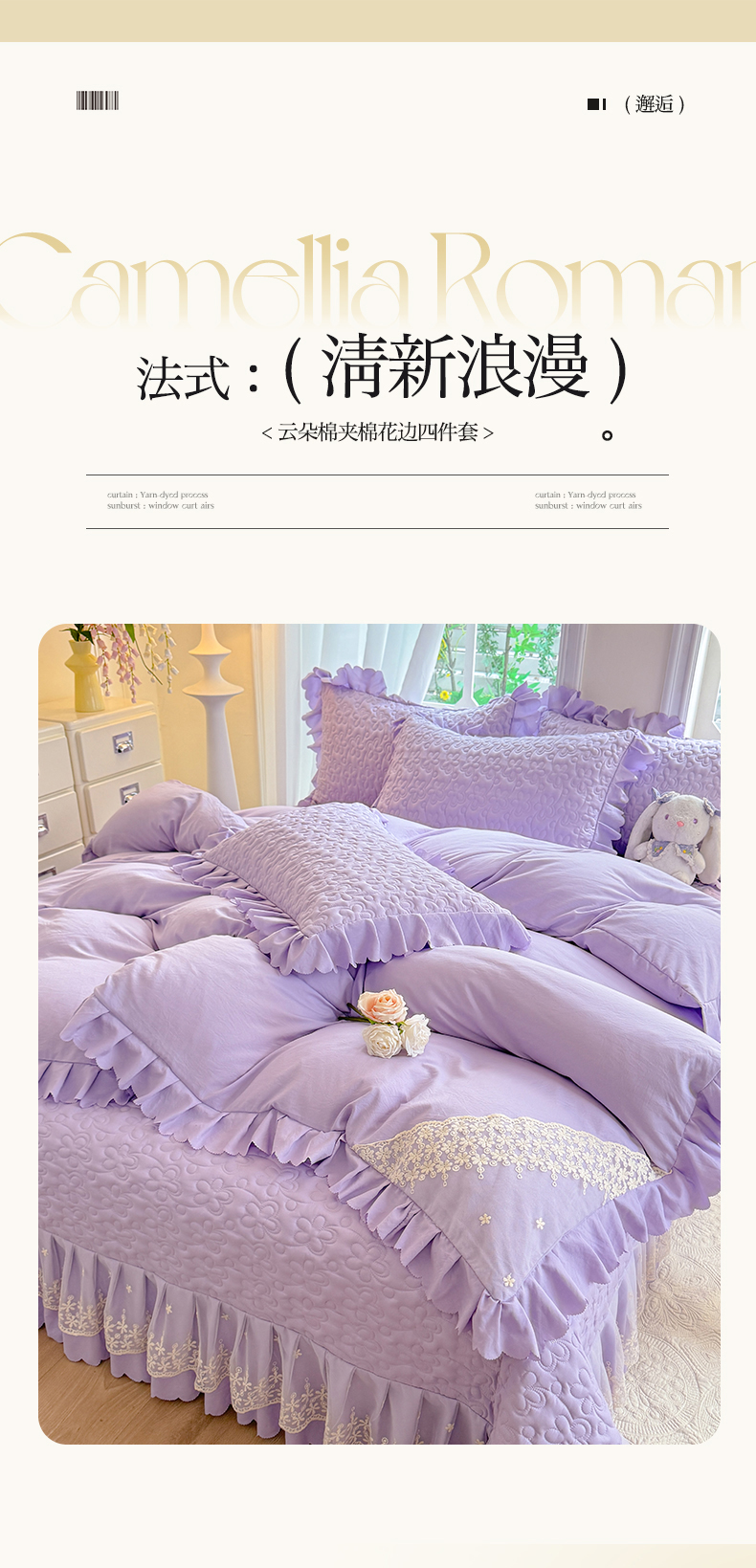 当前位置: 91家纺网 > 商品网购 > 床品套件 > 四件套 > 其它四件套 > 九诺家纺 2025新款花夕云朵棉蕾丝花边床盖四件套 花夕-浅紫