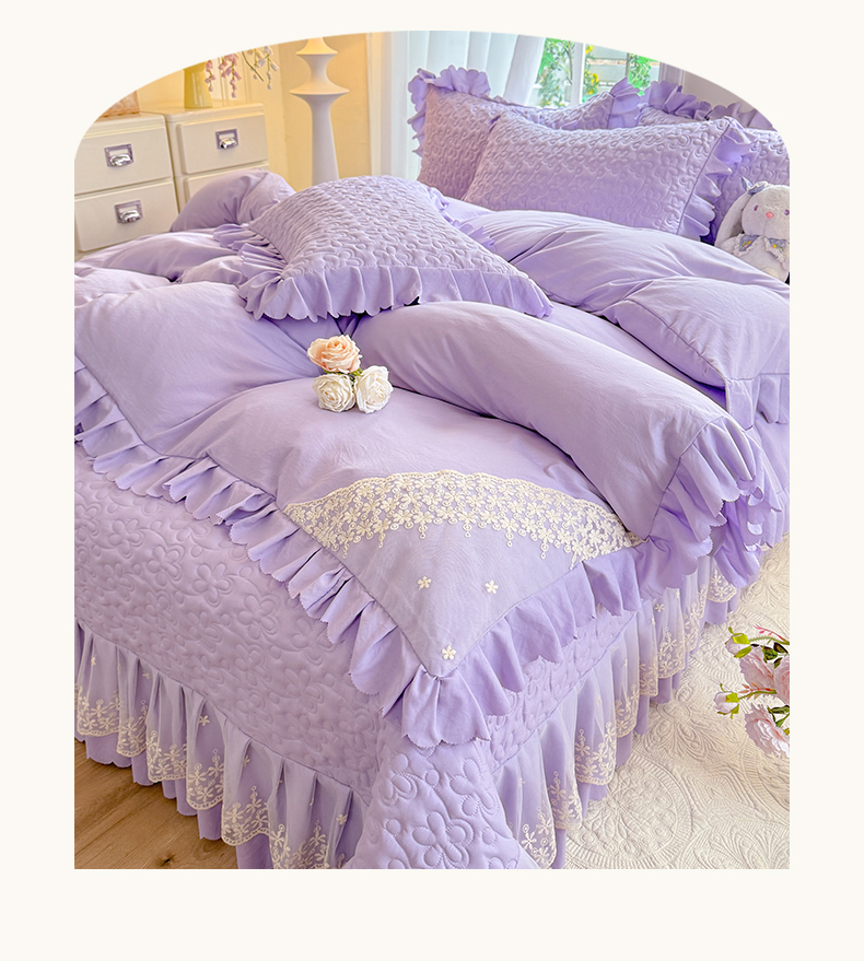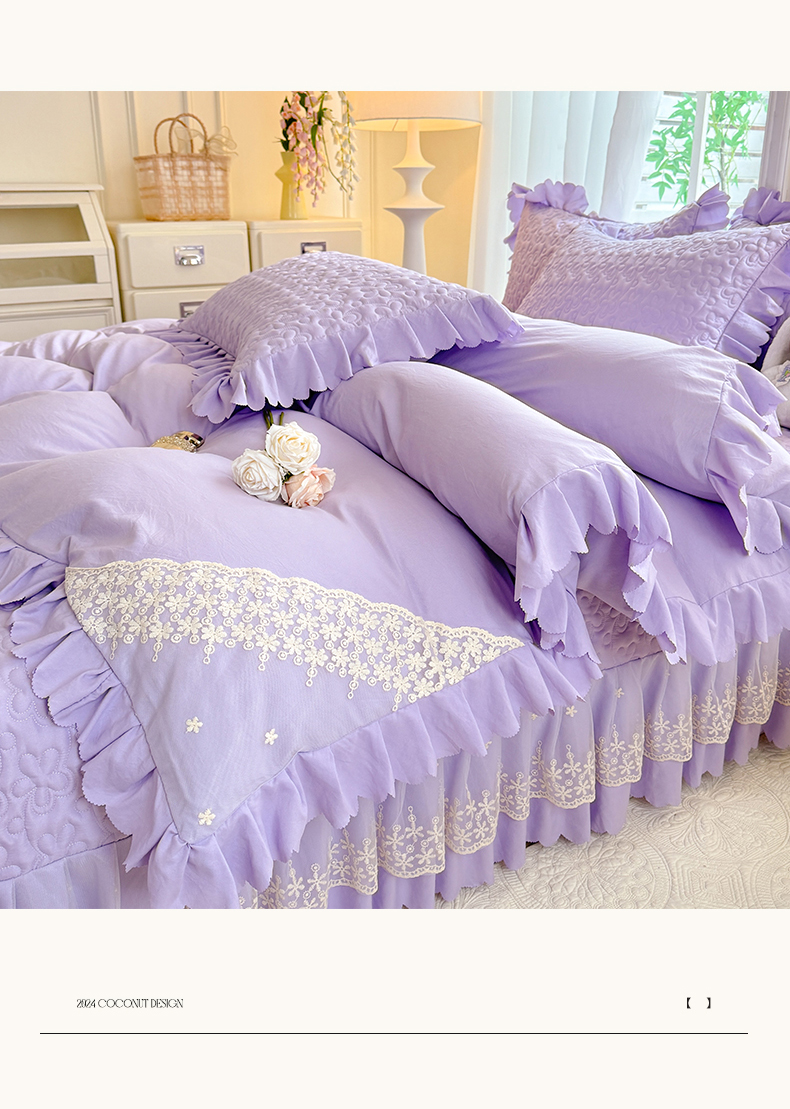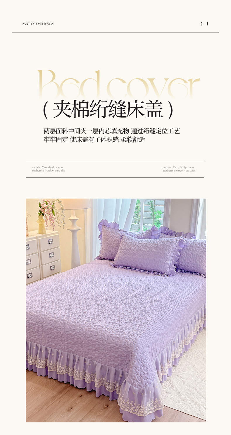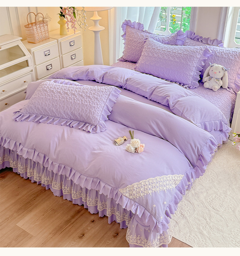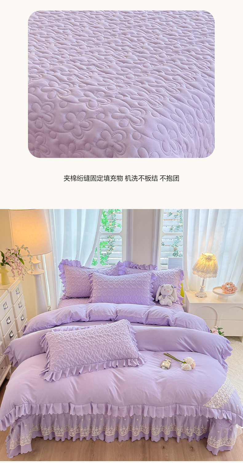 当前位置: 91家纺网 > 商品网购 > 床品套件 > 四件套 > 其它四件套 > 九诺家纺 2025新款花夕云朵棉蕾丝花边床盖四件套 花夕-浅紫