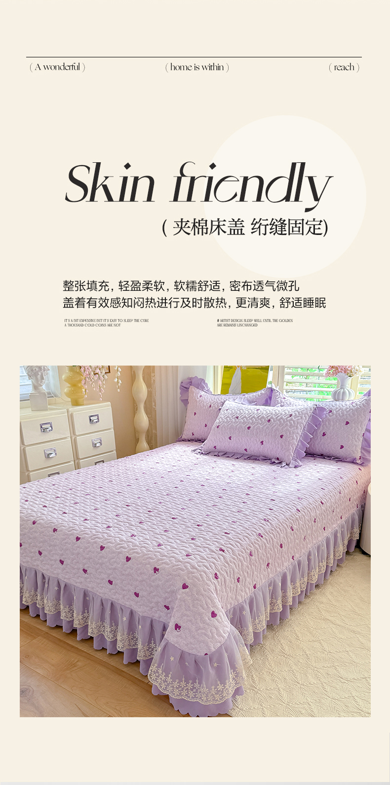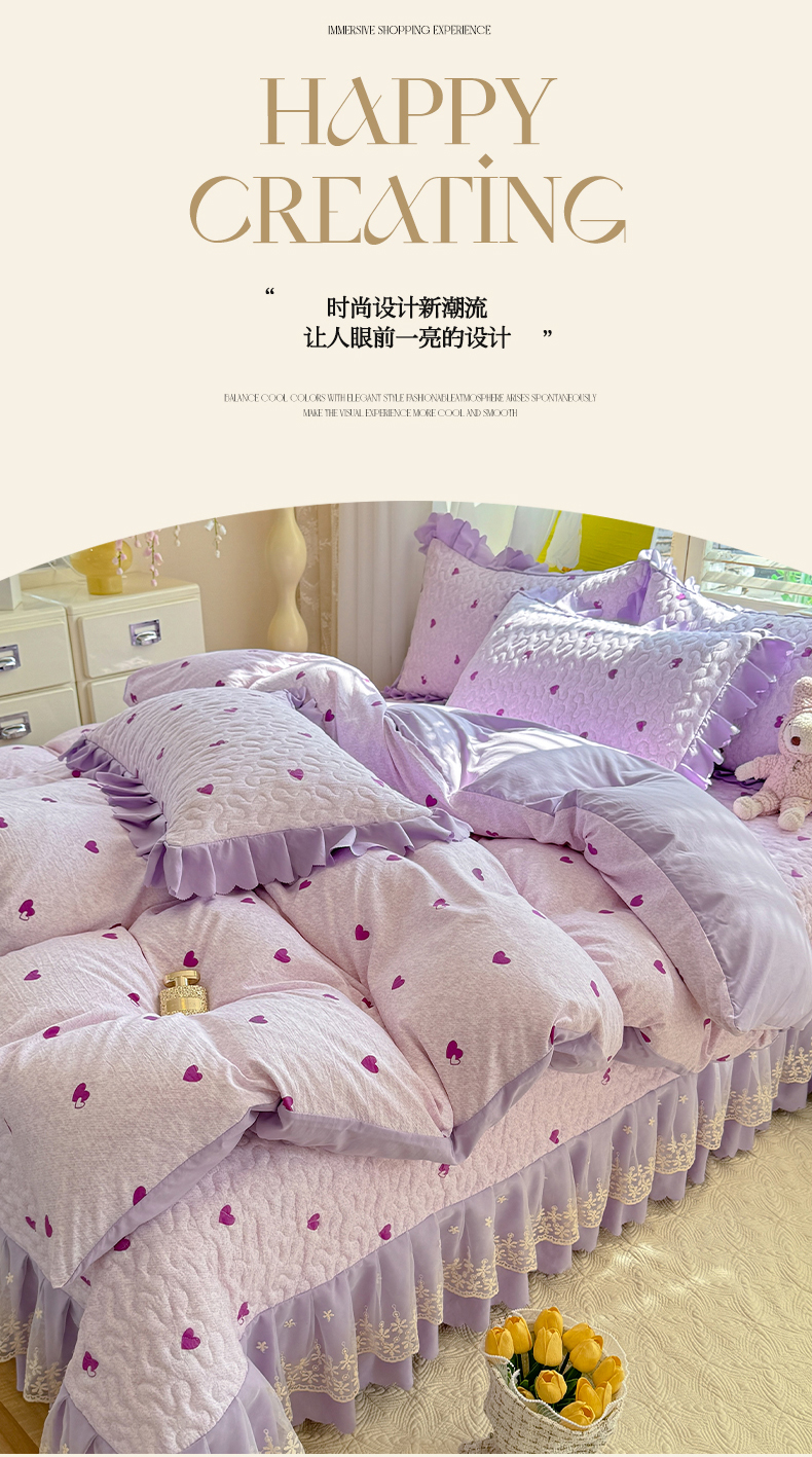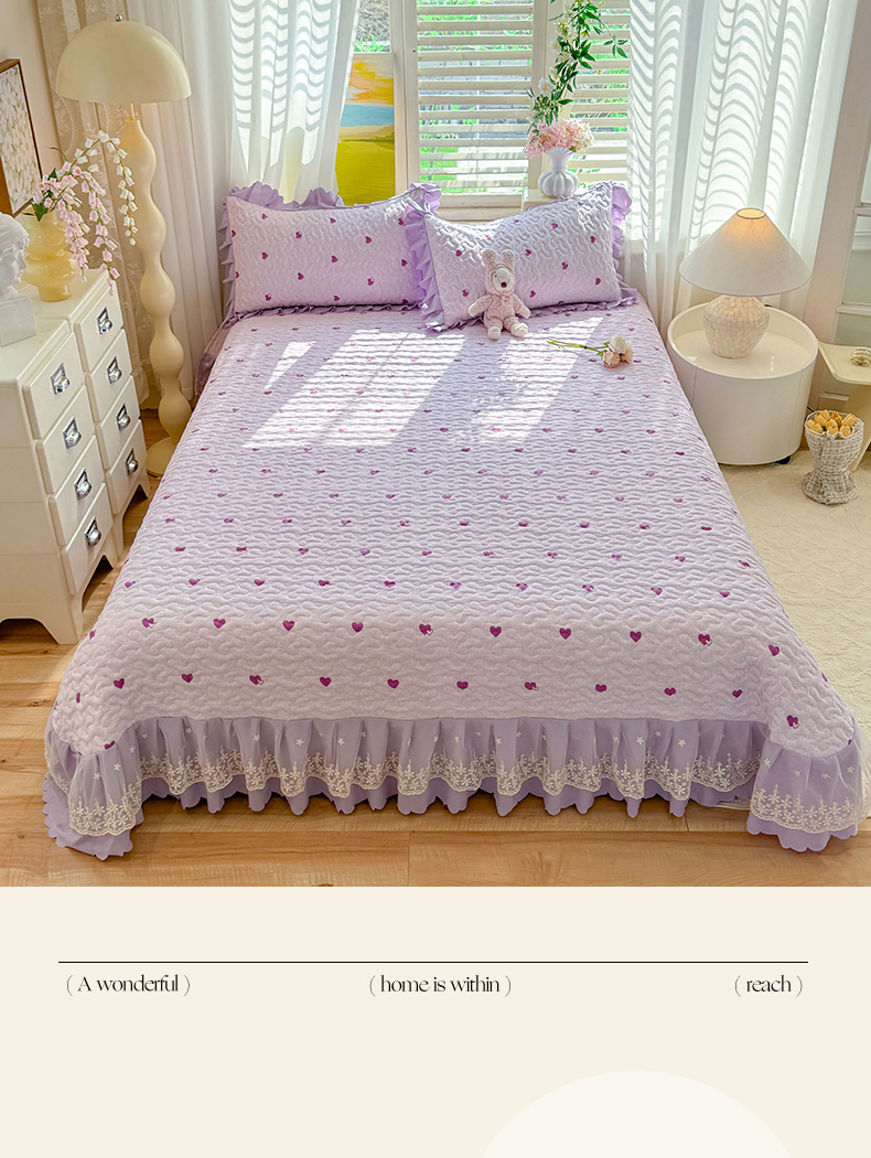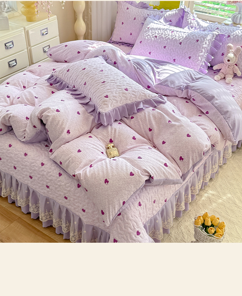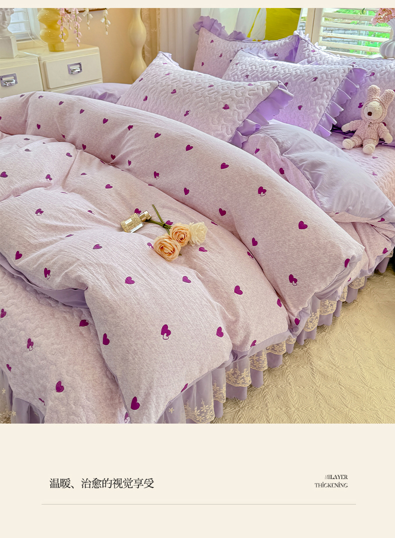 当前位置: 91家纺网 > 商品网购 > 床品套件 > 四件套 > 其它四件套 > 九诺家纺 2025新款韩式云朵棉印花床盖四件套 紫爱心
