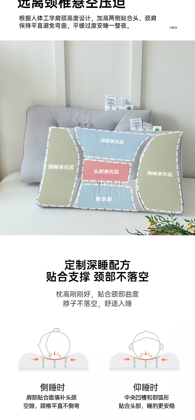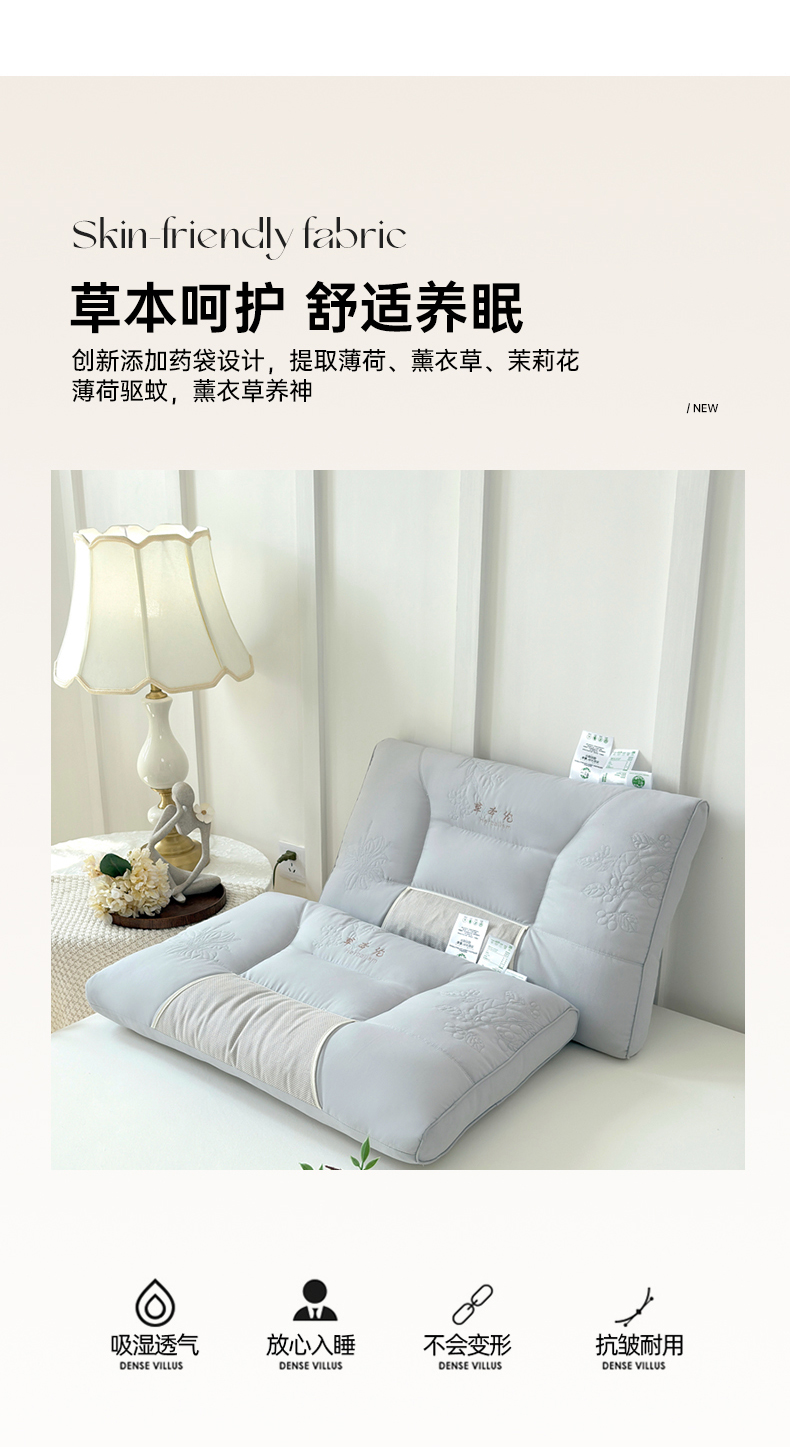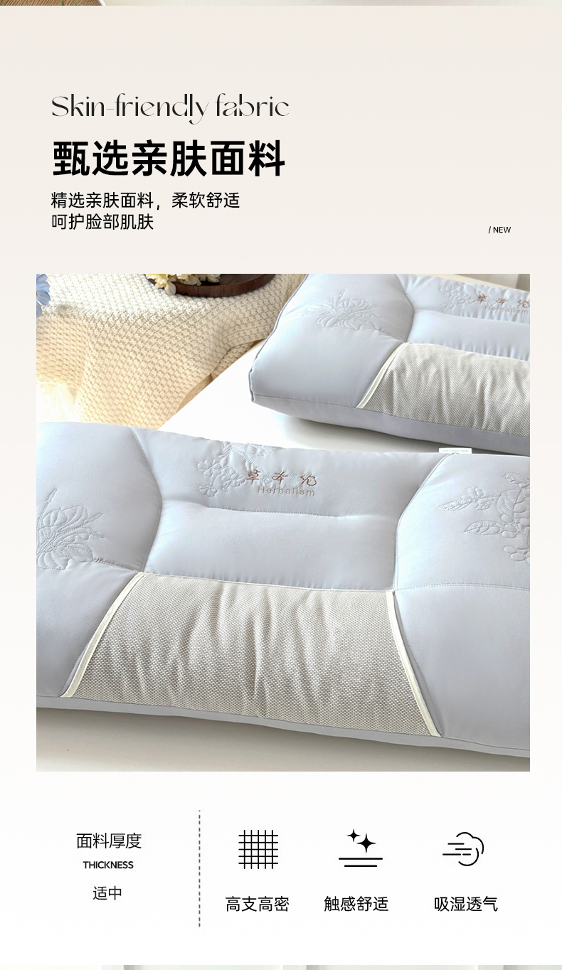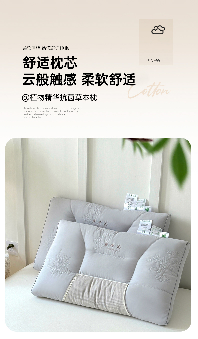 商品名称:爱尚家枕芯 2025新款植物精华抗菌草本枕枕头枕芯 灰色(48*74cm/只)