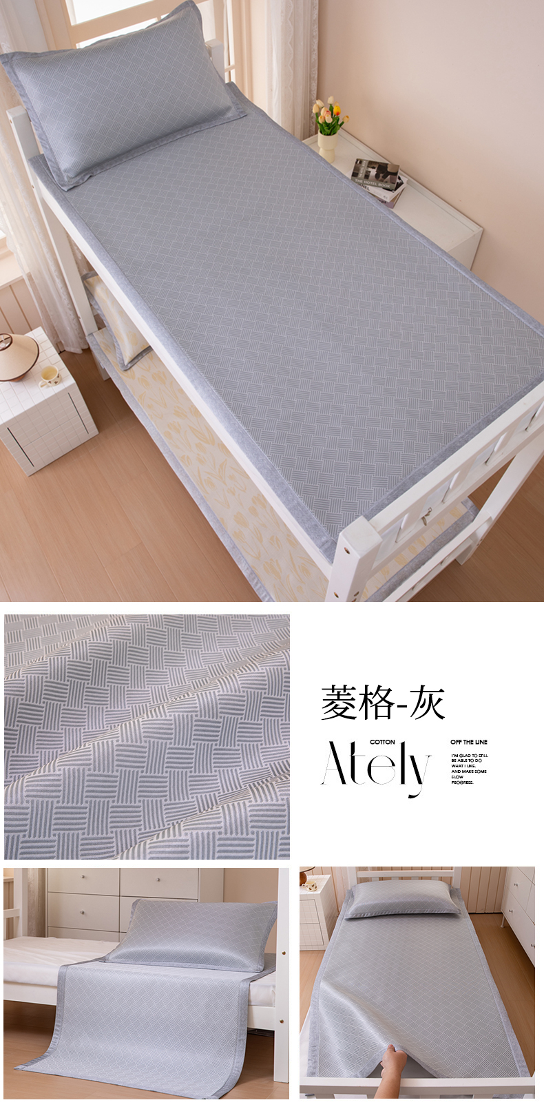 • 91家纺网 家纺一手货源 找家纺 凌云 2025新款学生宿舍提花凉感冰丝席 菱格-灰