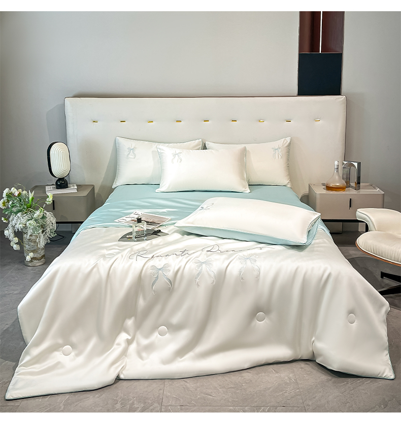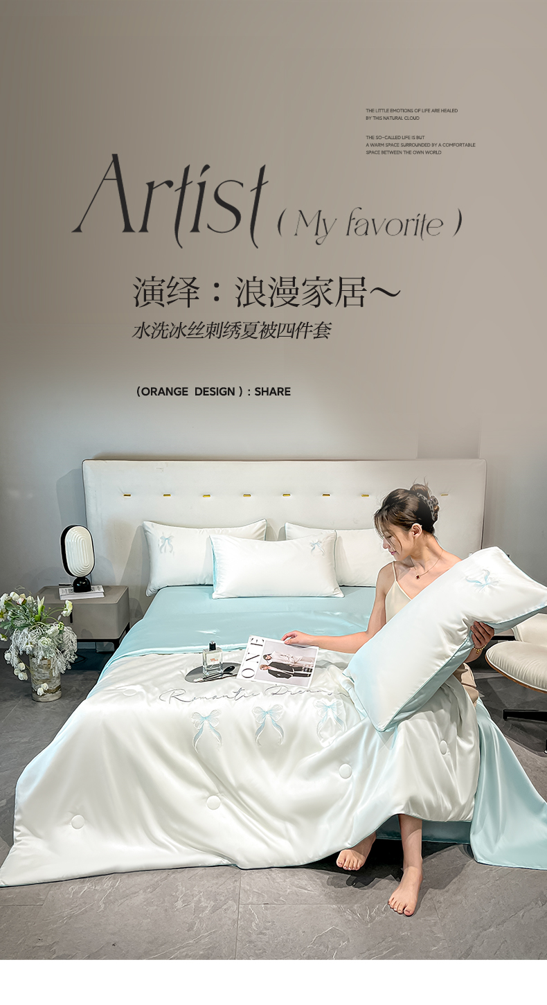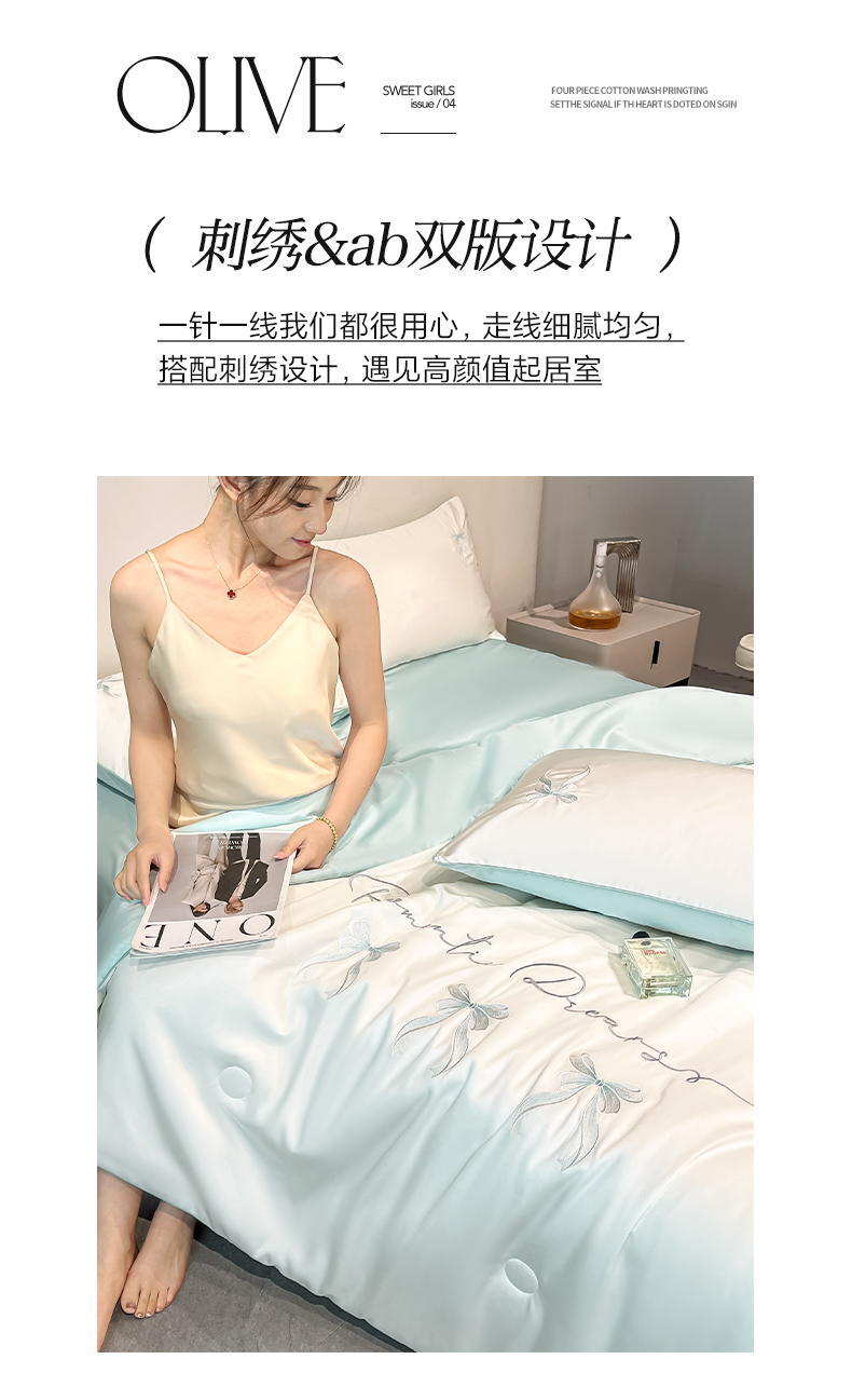 • 91家纺网 家纺一手货源 找家纺 如一 2025新款水洗冰丝麻绳夏被四件套-初夏 初夏-奶白蓝