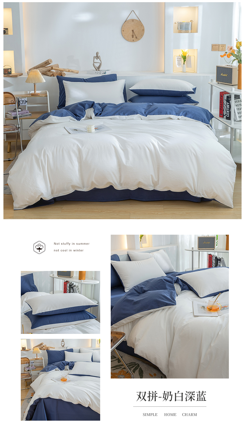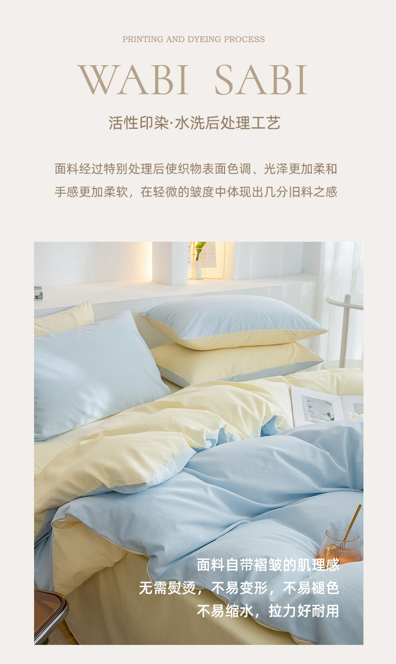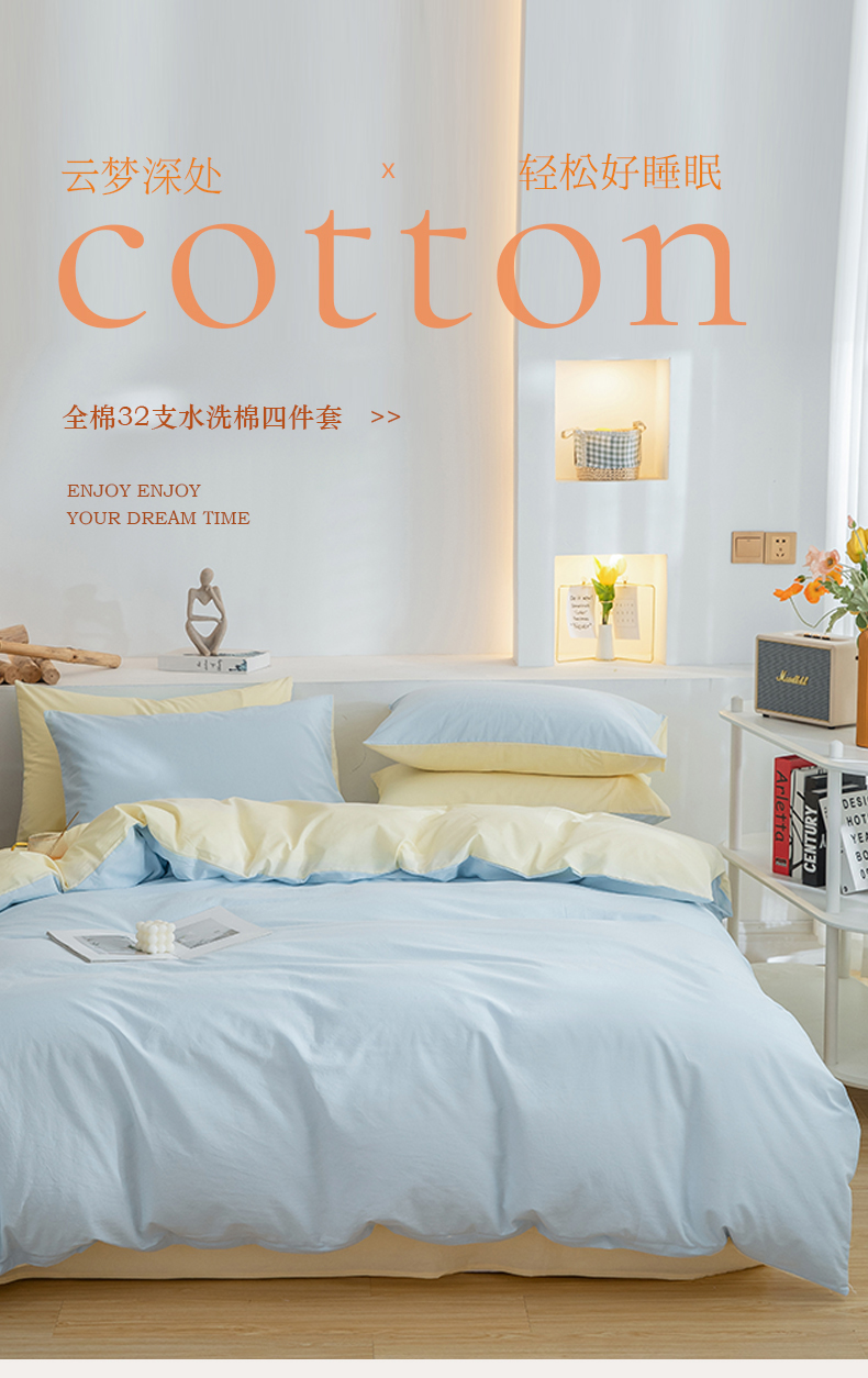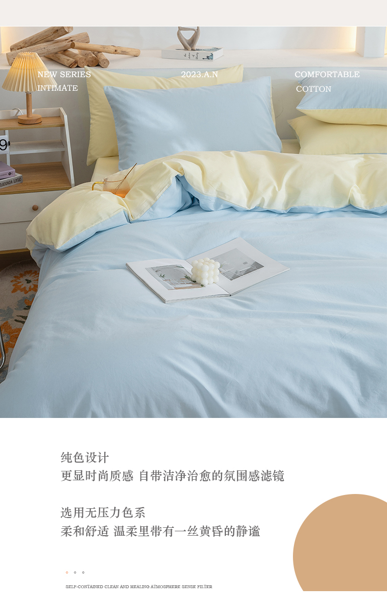 当前位置: 91家纺网 > 商品网购 > 床品套件 > 四件套 > 全棉普通四件套 > 2025新款全棉双拼水洗棉四件套 双拼-浅蓝卡其