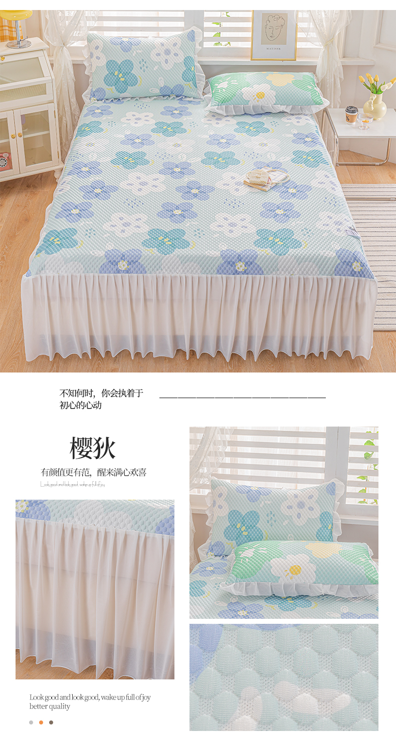2025新款A类冰豆豆床裙款印花凉席 樱狄