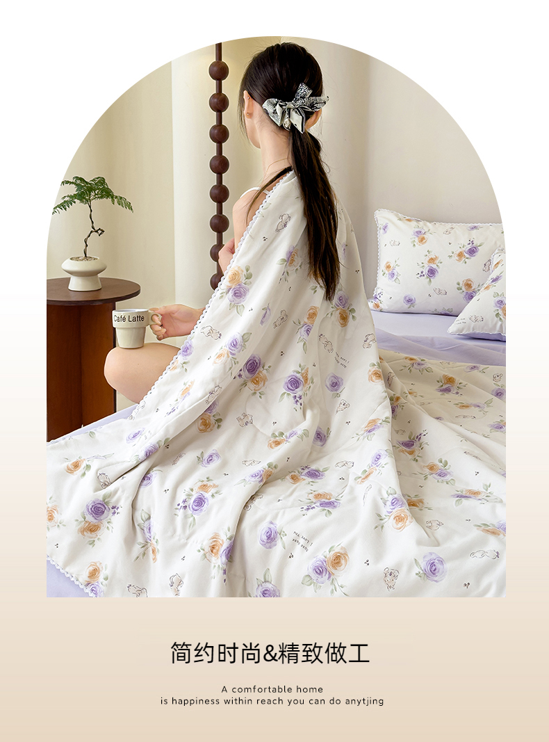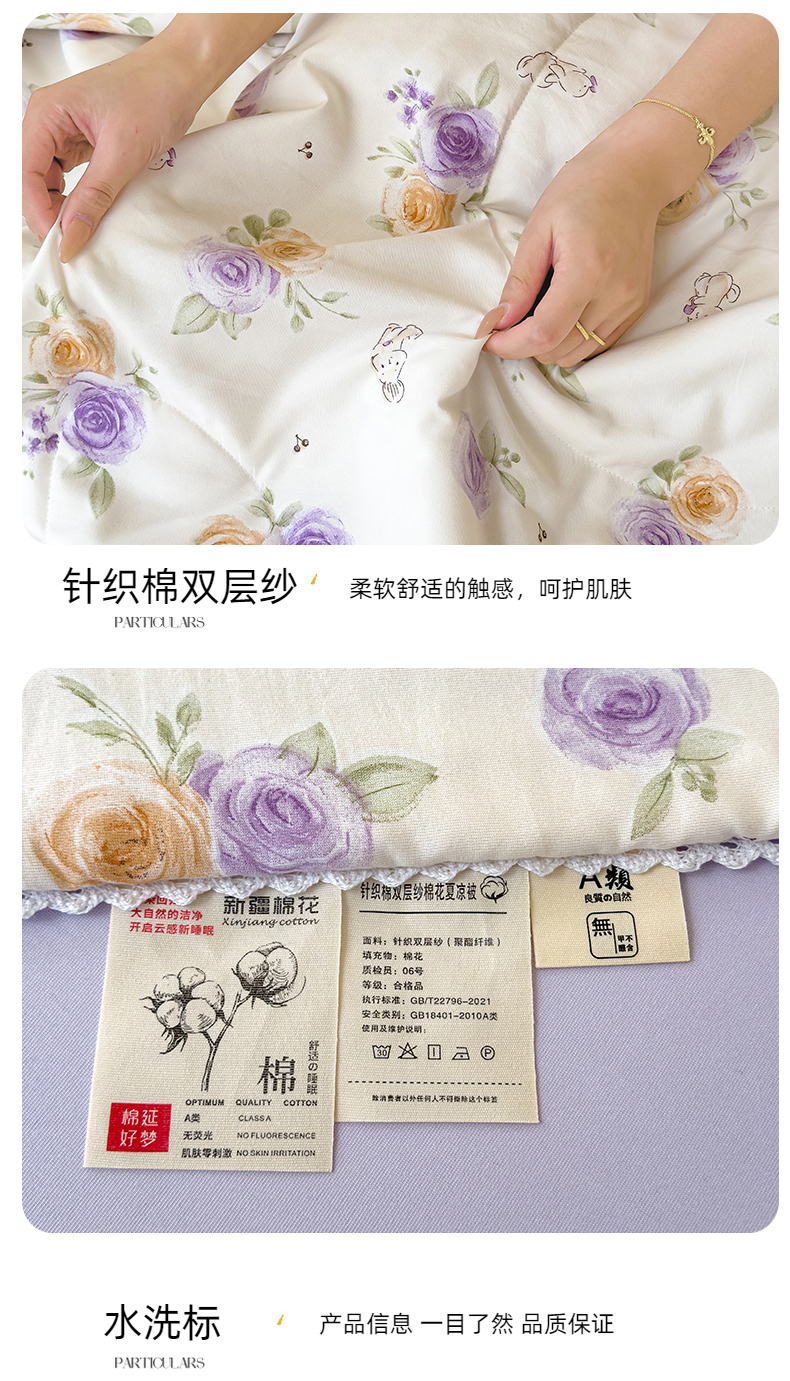 当前位置: 91家纺网 > 商品网购 > 被子 > 夏被 > 2025新款针织棉双层纱小花边棉花夏凉被 玫瑰兔