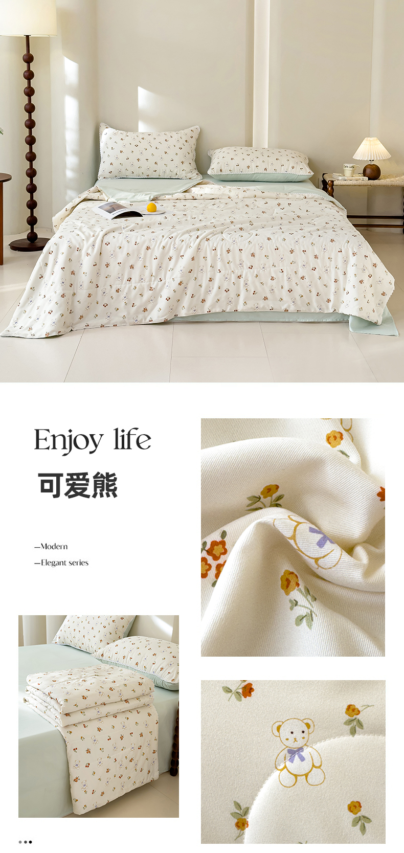 • 91家纺网 家纺一手货源 找家纺  2025新款针织棉双层纱小花边棉花夏凉被 玫瑰兔