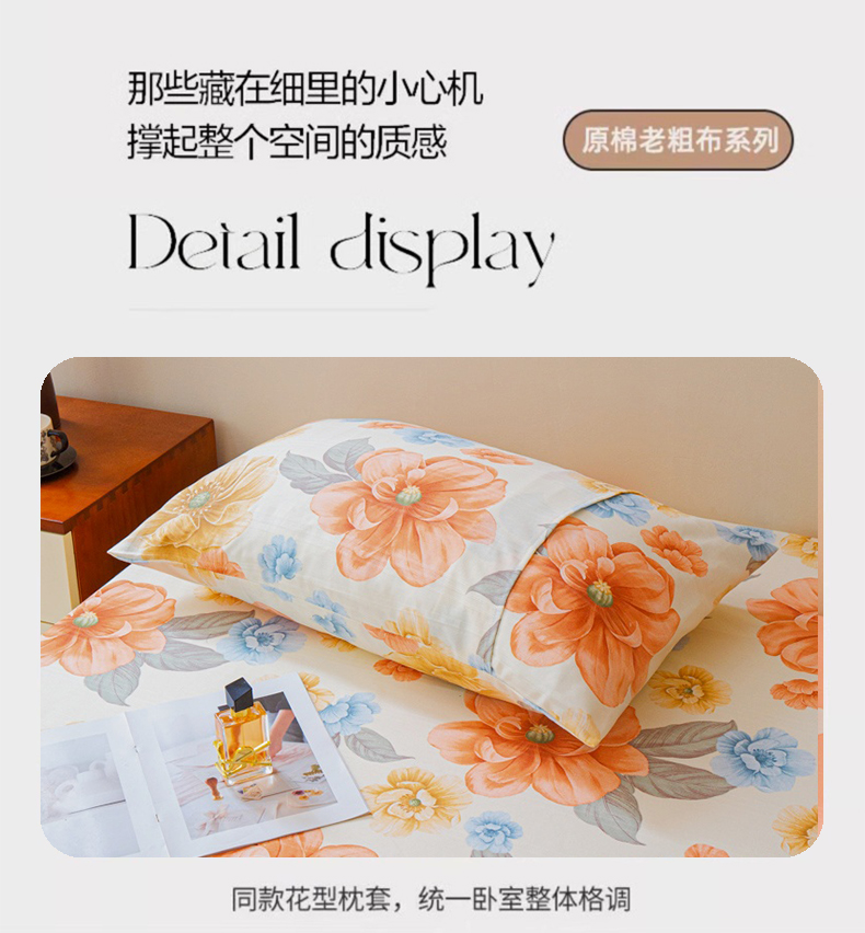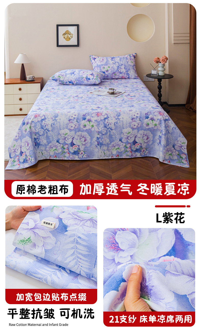 • 91家纺网 家纺一手货源 找家纺 【长期供货】2025新款原棉老粗布床单混纺含棉-床笠 L花丘