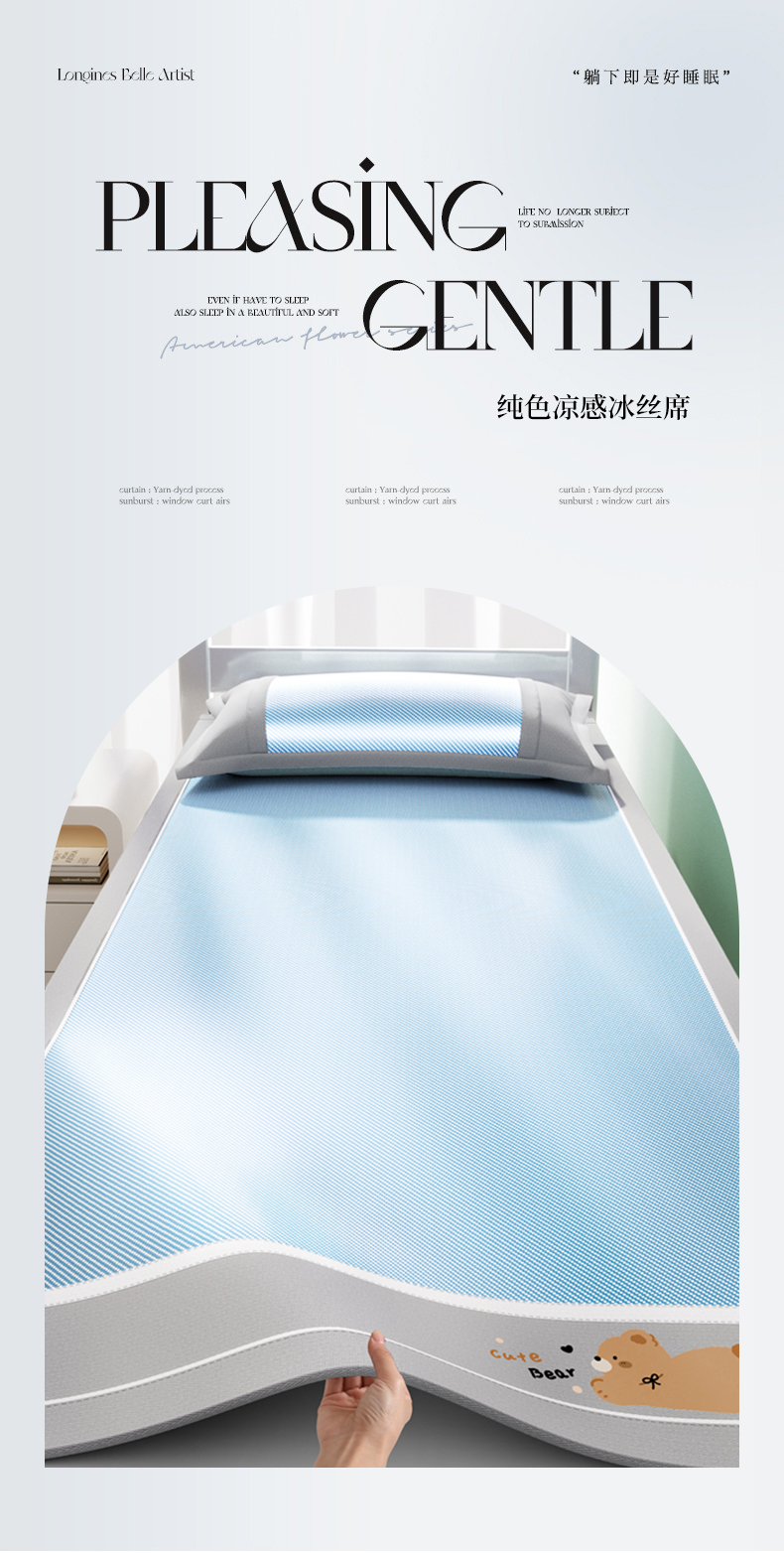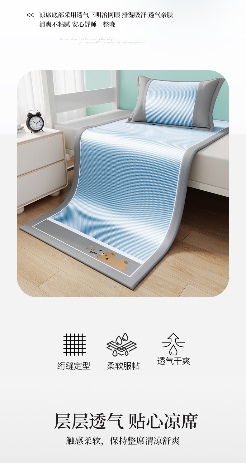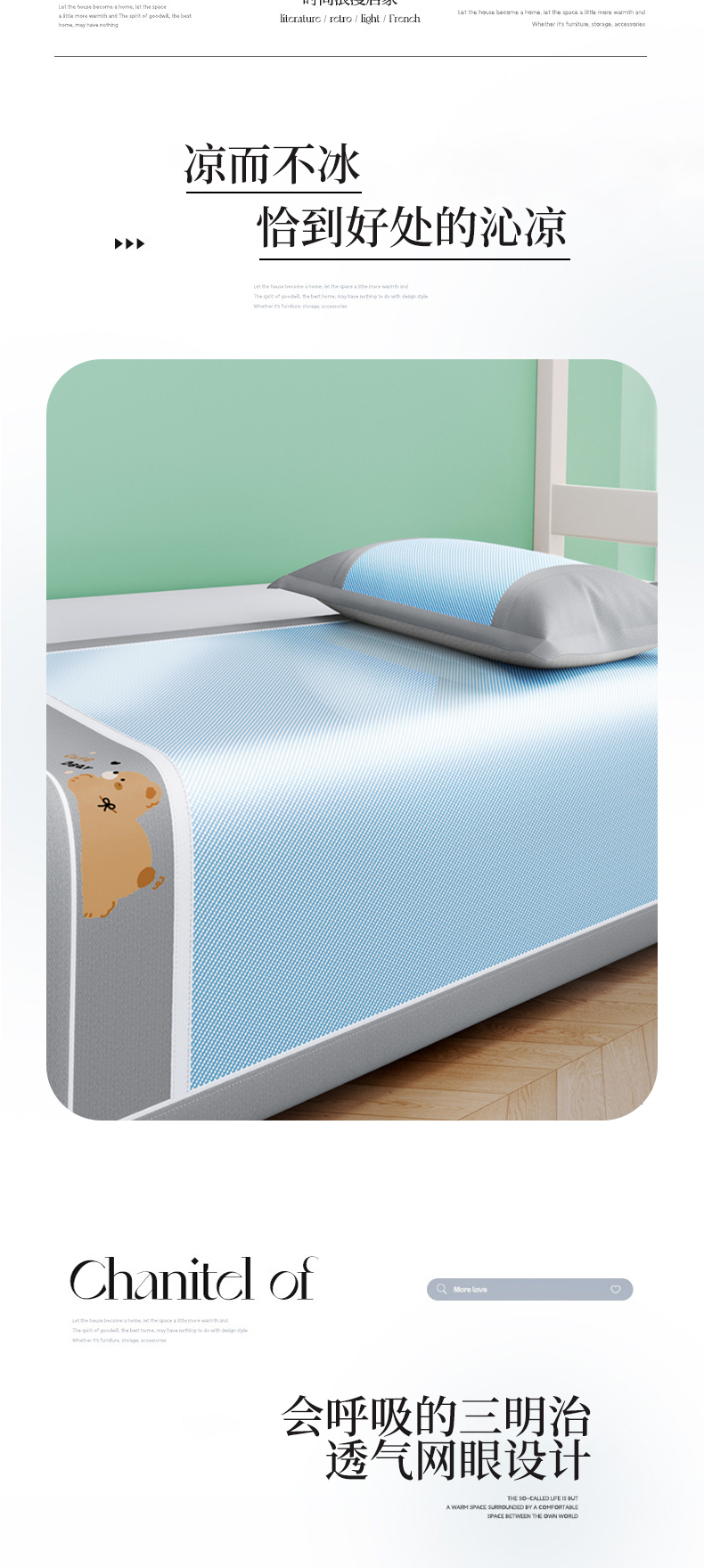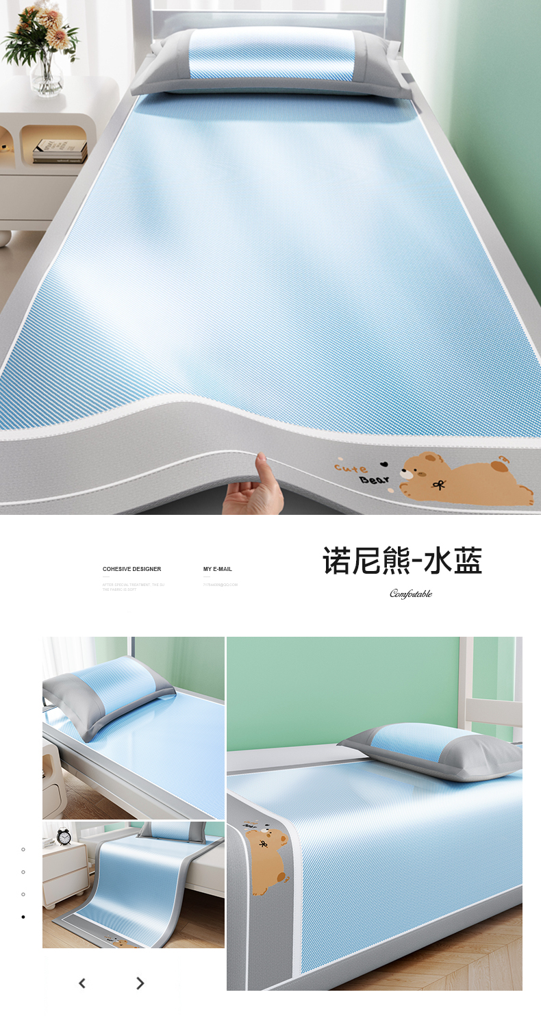 川悦生活 2025新款纯色凉感冰丝席-小床 诺尼熊-水蓝
