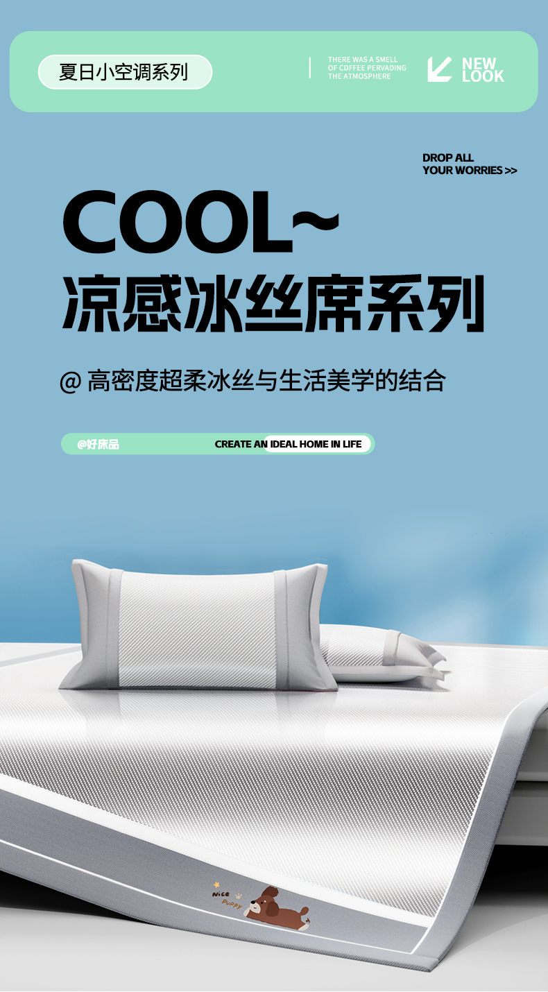 川悦生活 2025新款纯色凉感冰丝席-大床 帕帕狗仔-银灰