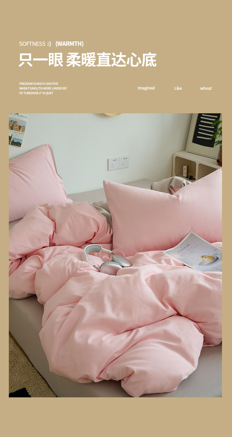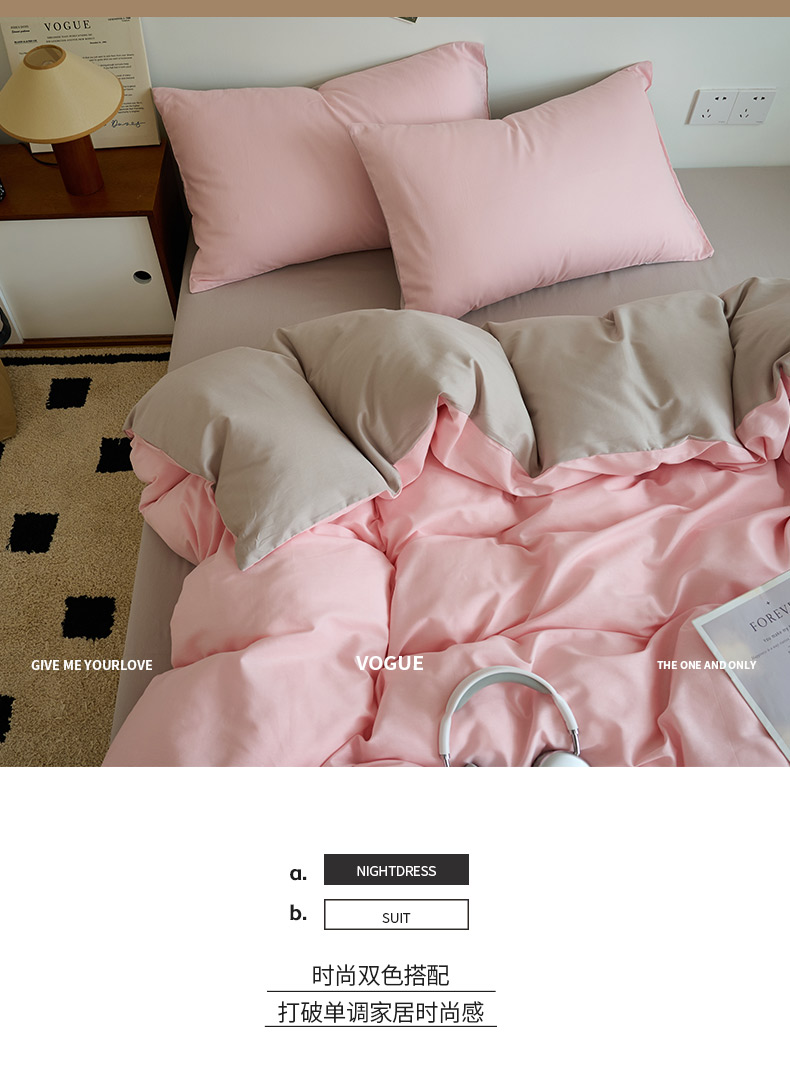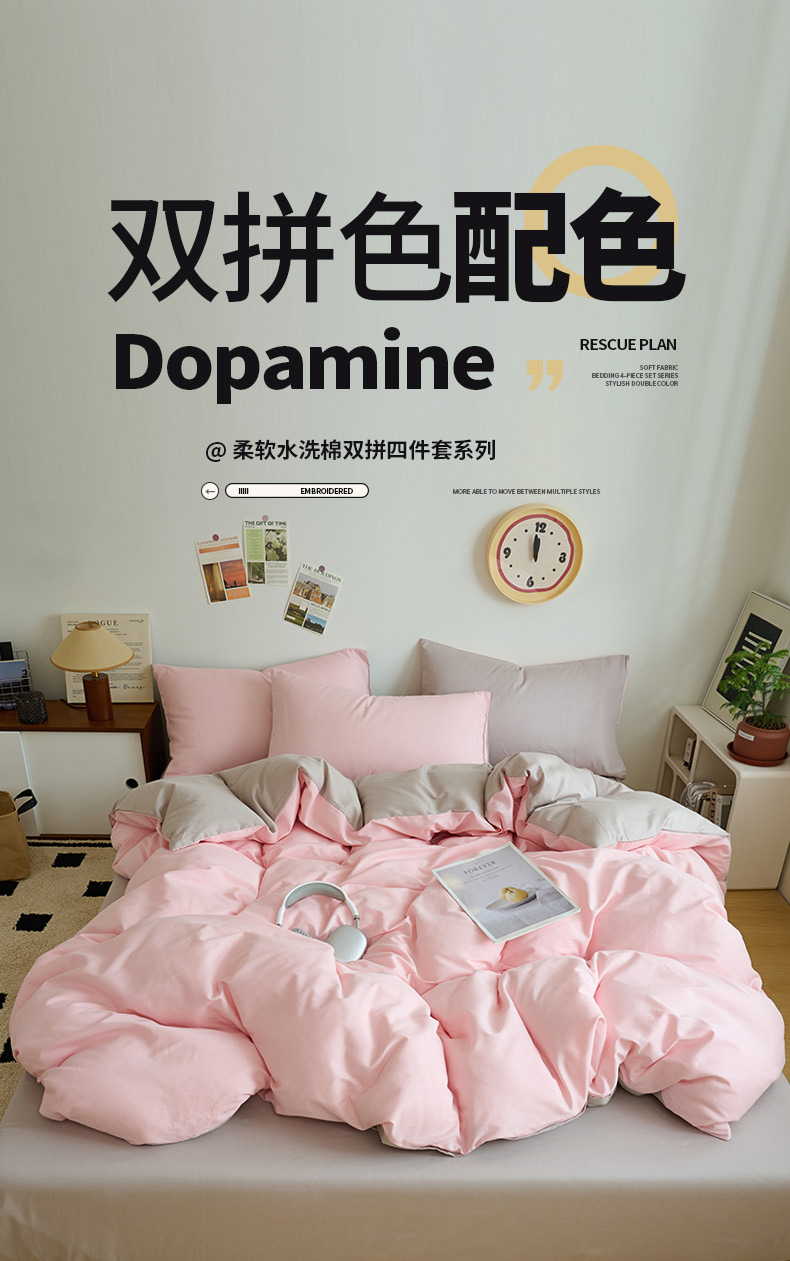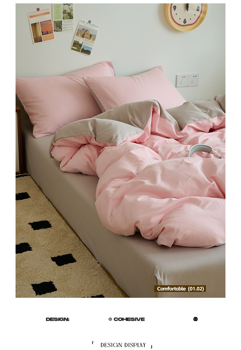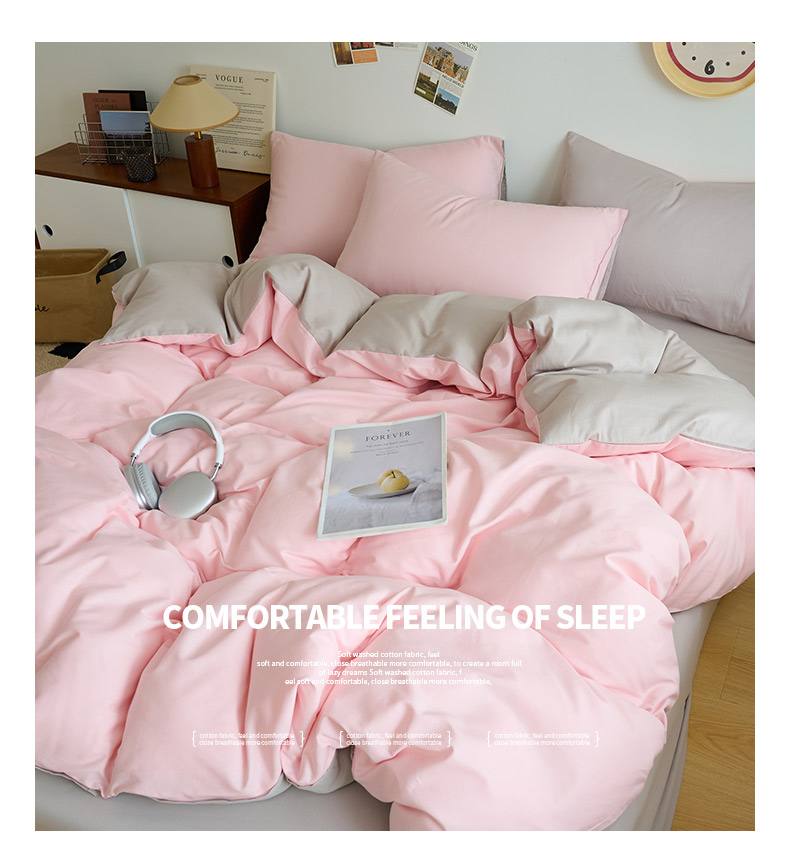 鑫琪莱家纺 2025双拼色水洗棉四件套桃粉浅灰