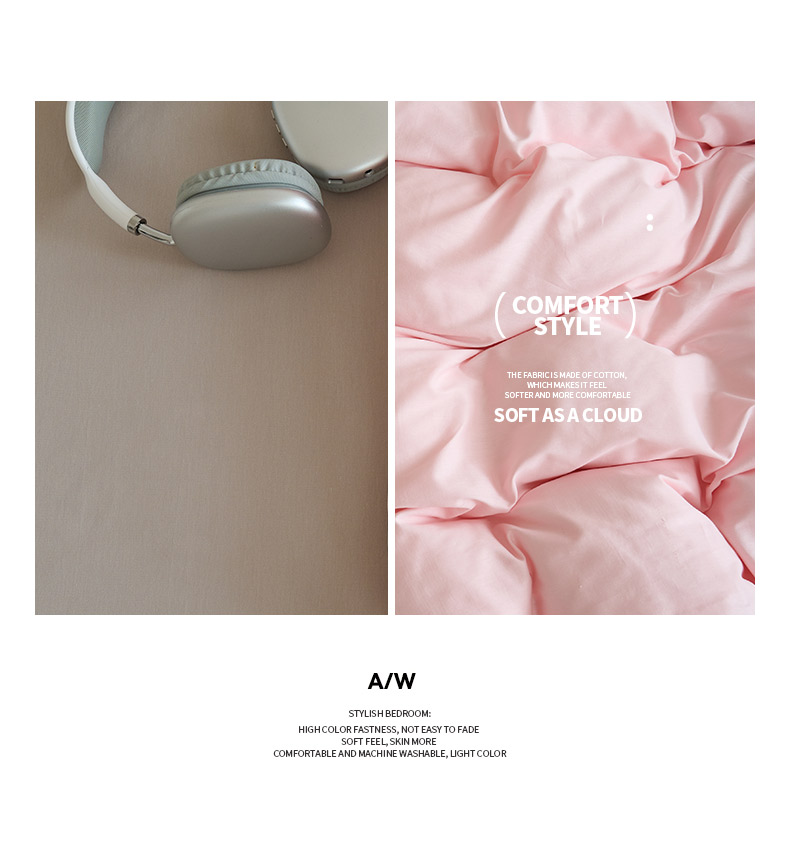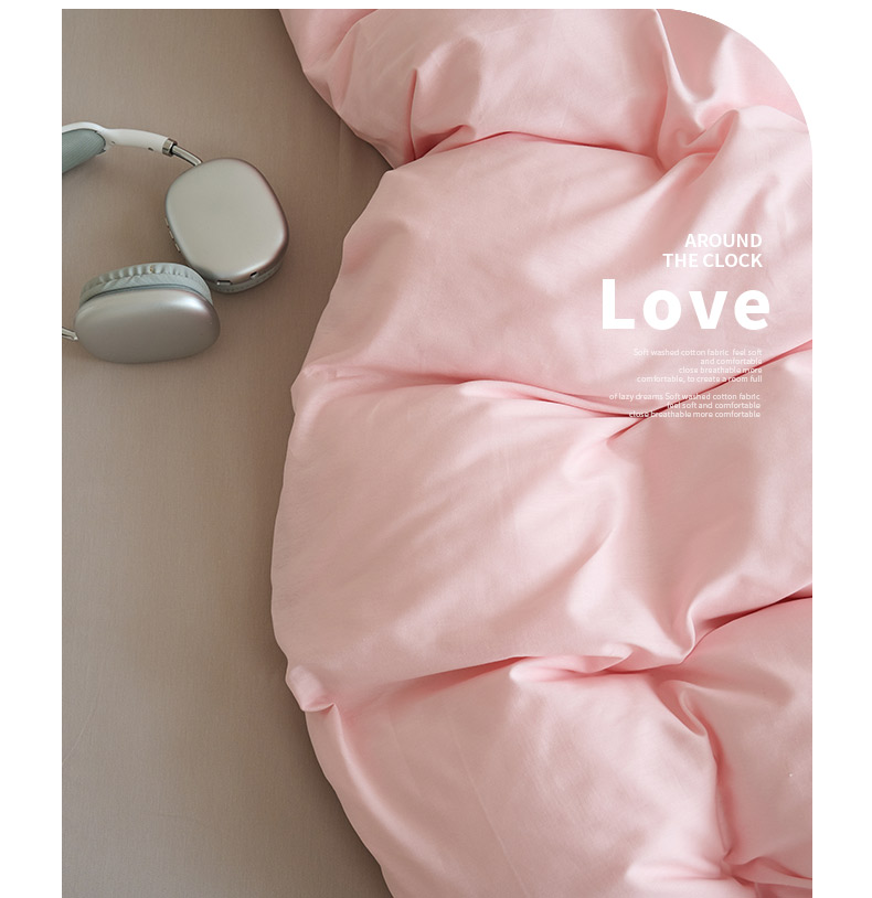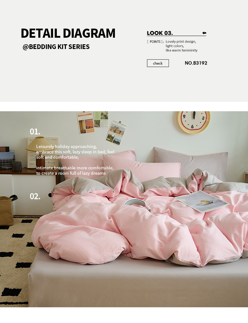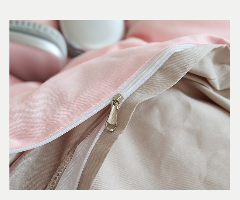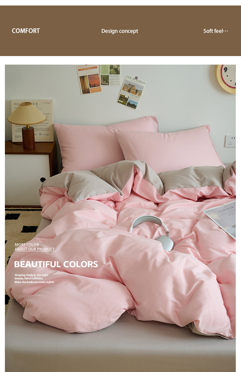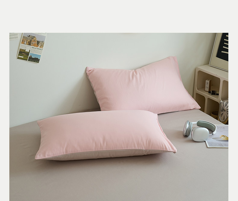鑫琪莱家纺 2025双拼色水洗棉四件套桃粉浅灰